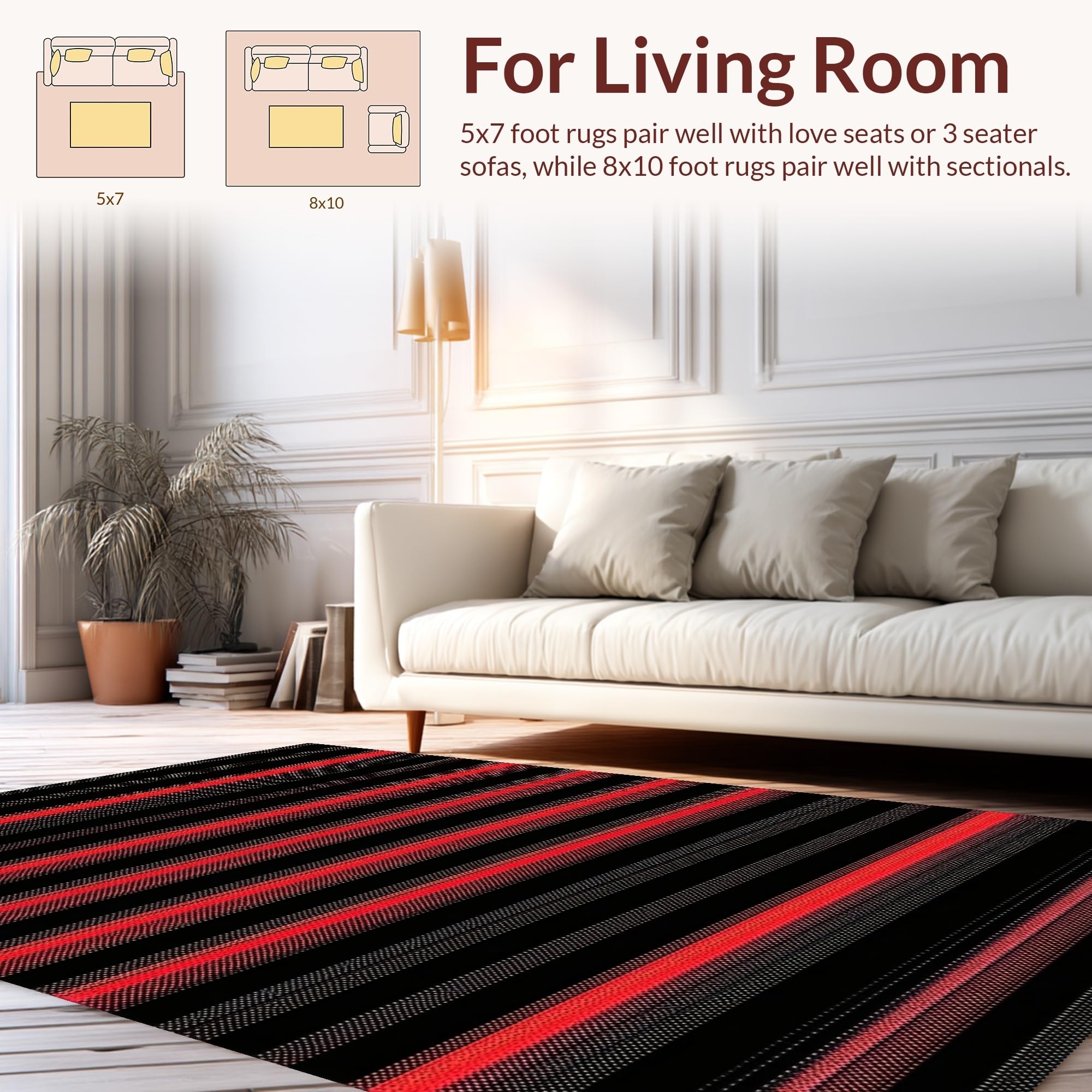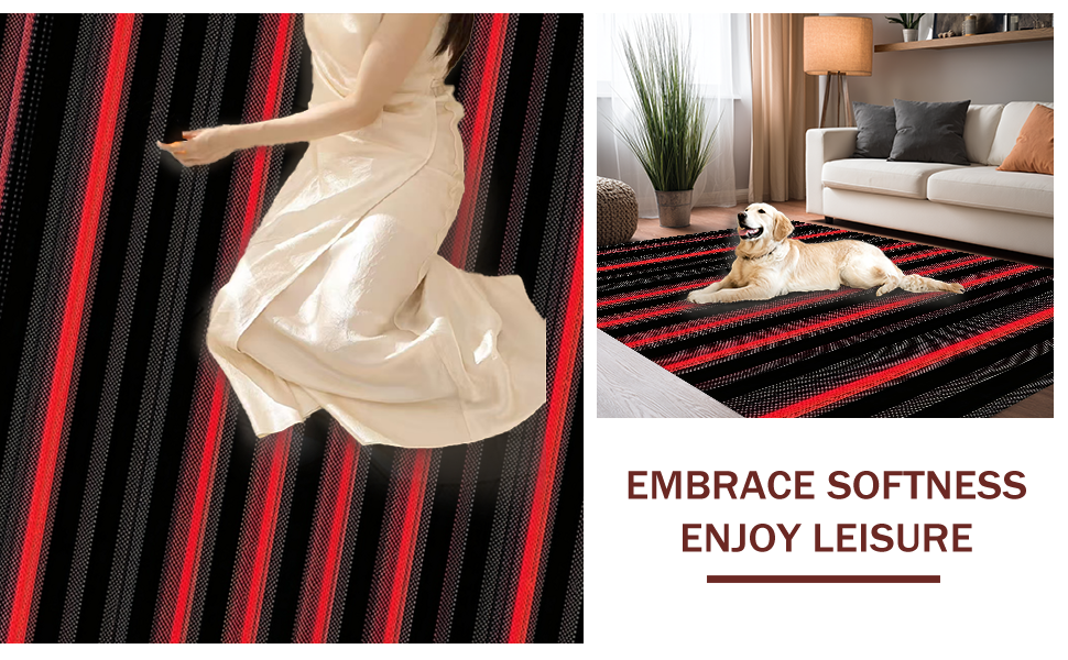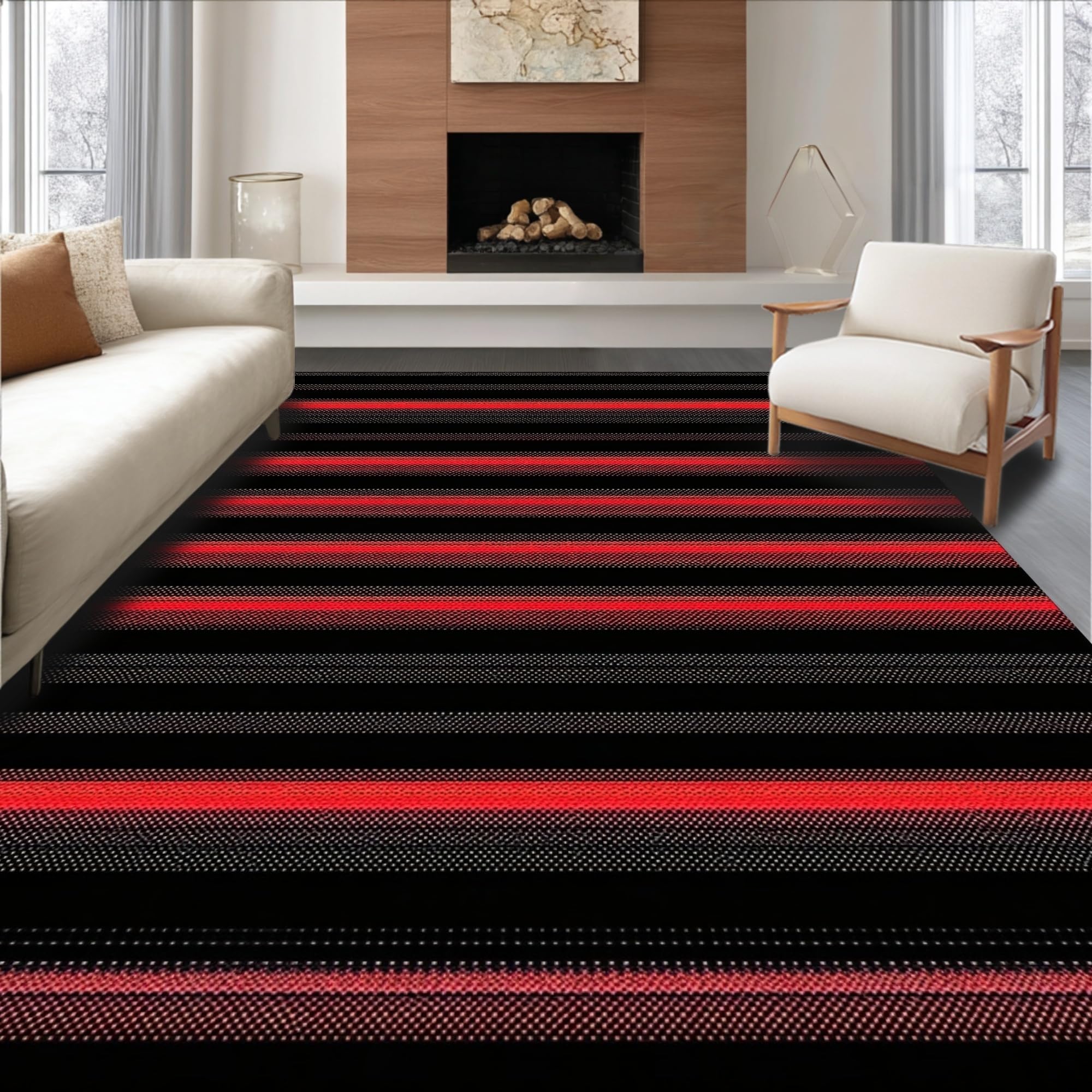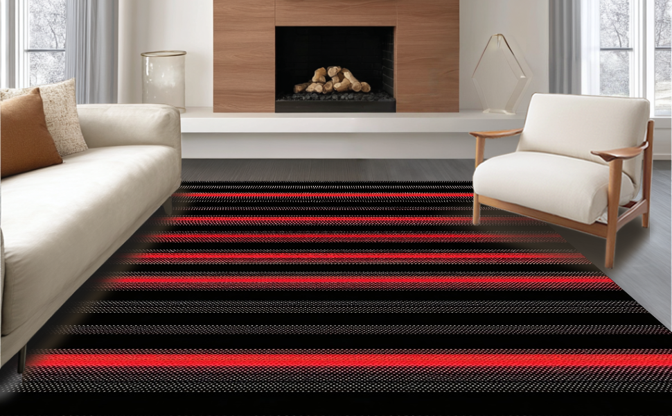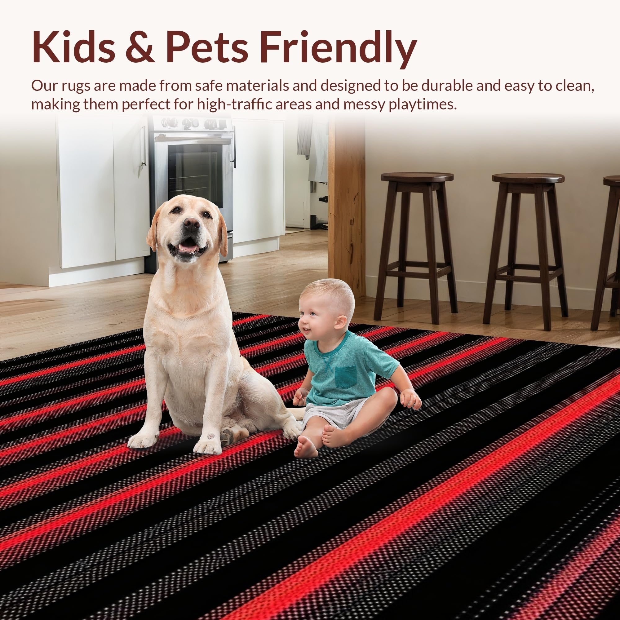 Ultra Soft Area Rug, Non Slip, Stain Resistant, Washable Area Rugs for Living Room, Bedroom, Funky Modern Abstract Glitch Motif(Black) Overview: