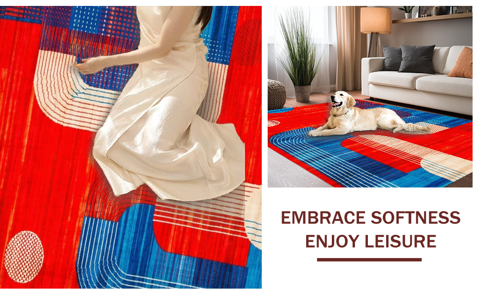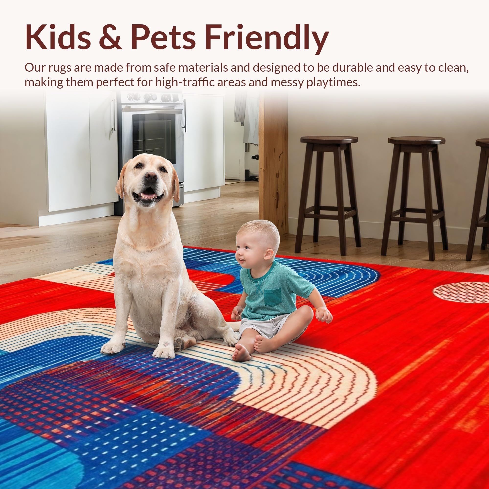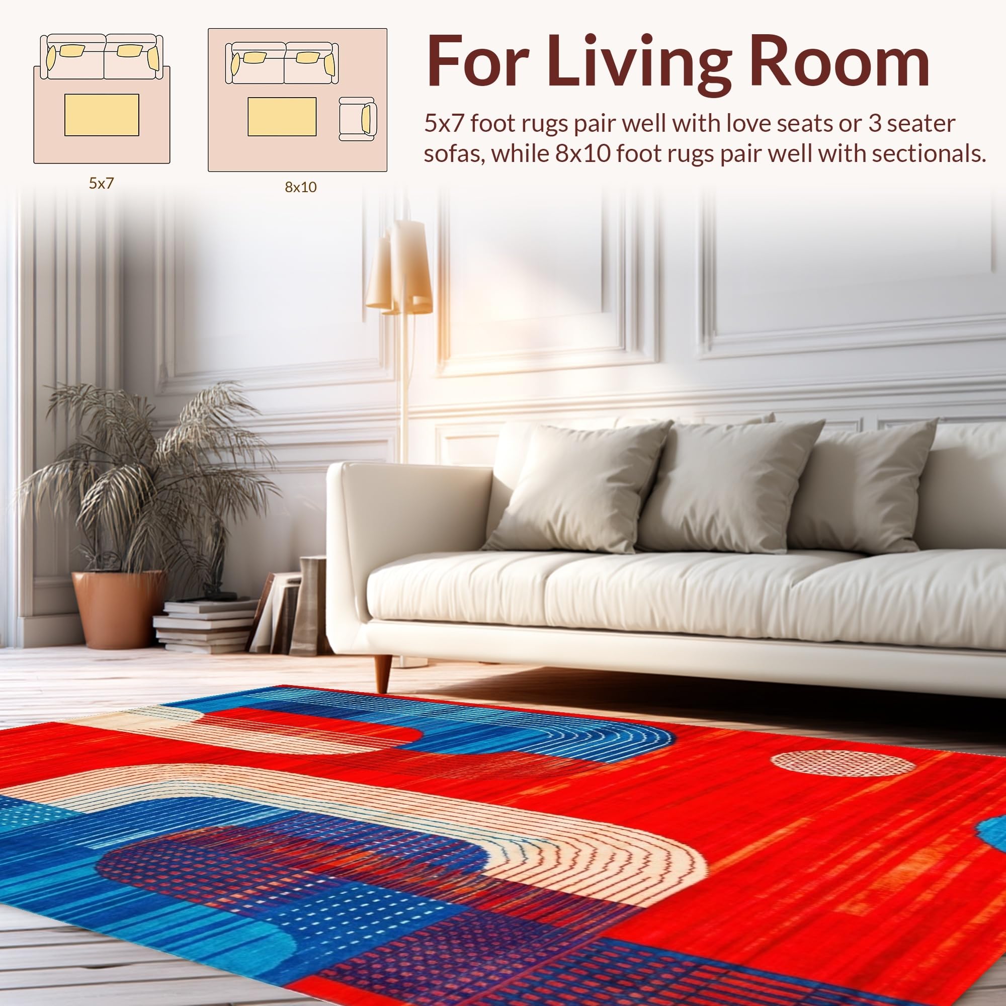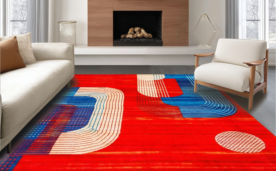 Ultra Soft Area Rug, Non Slip, Stain Resistant, Washable Area Rugs for Living Room, Bedroom, Funky Retro Abstract Composition(Red) Overview: