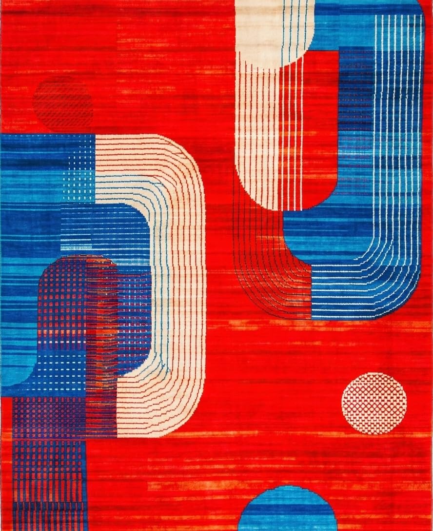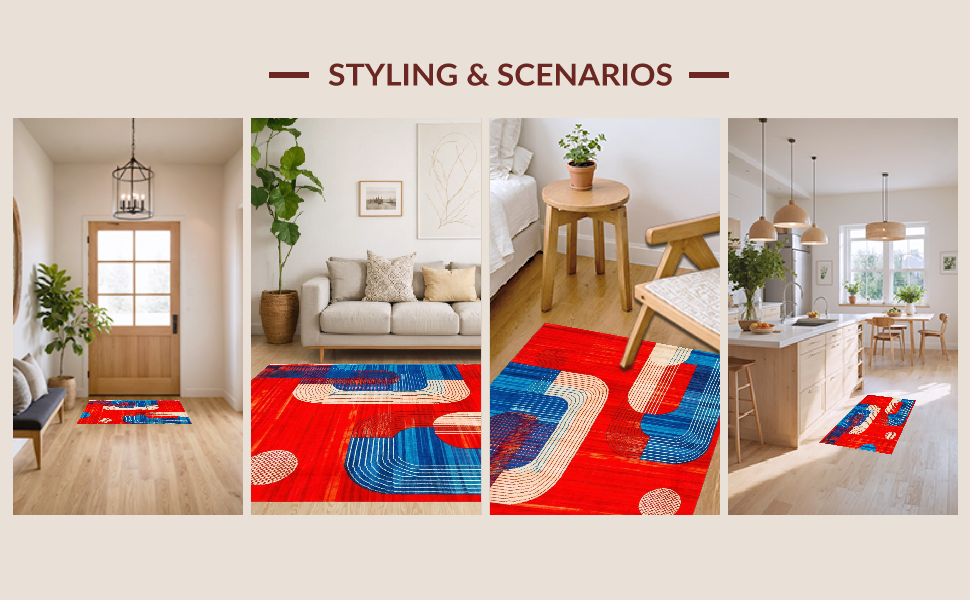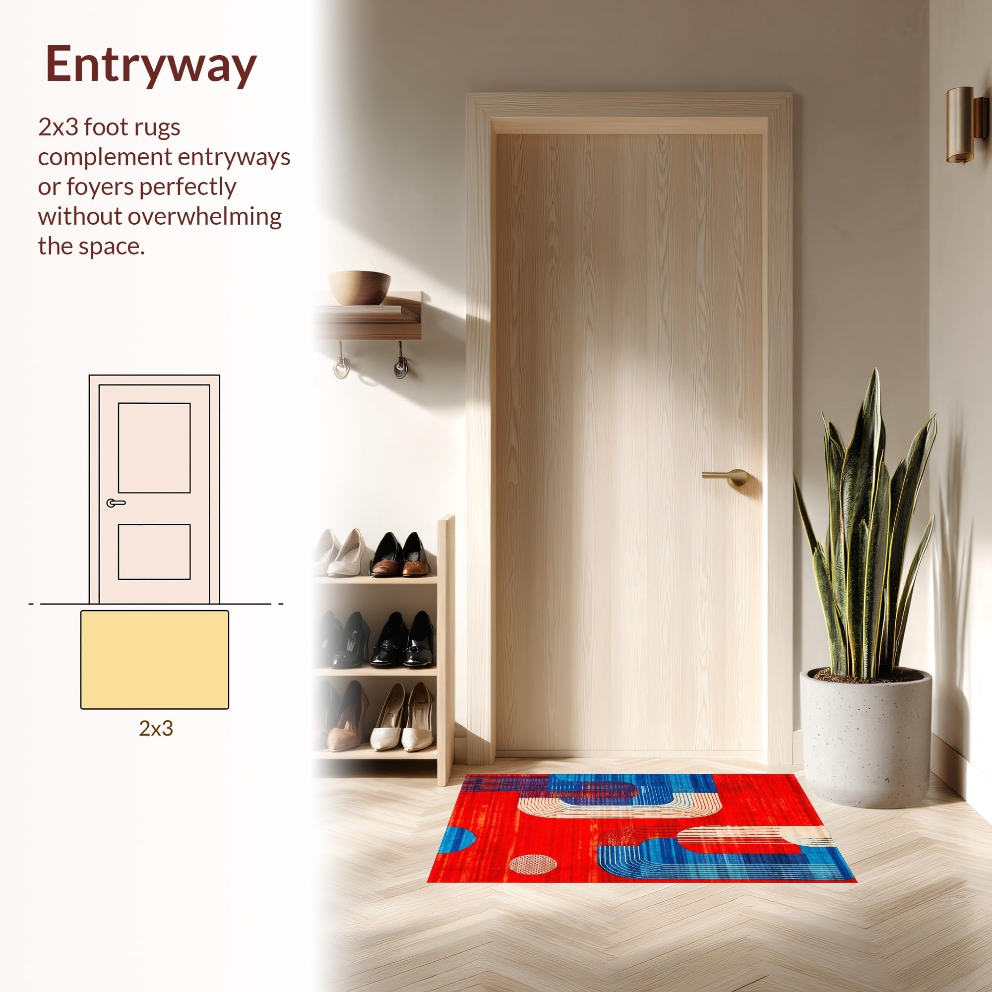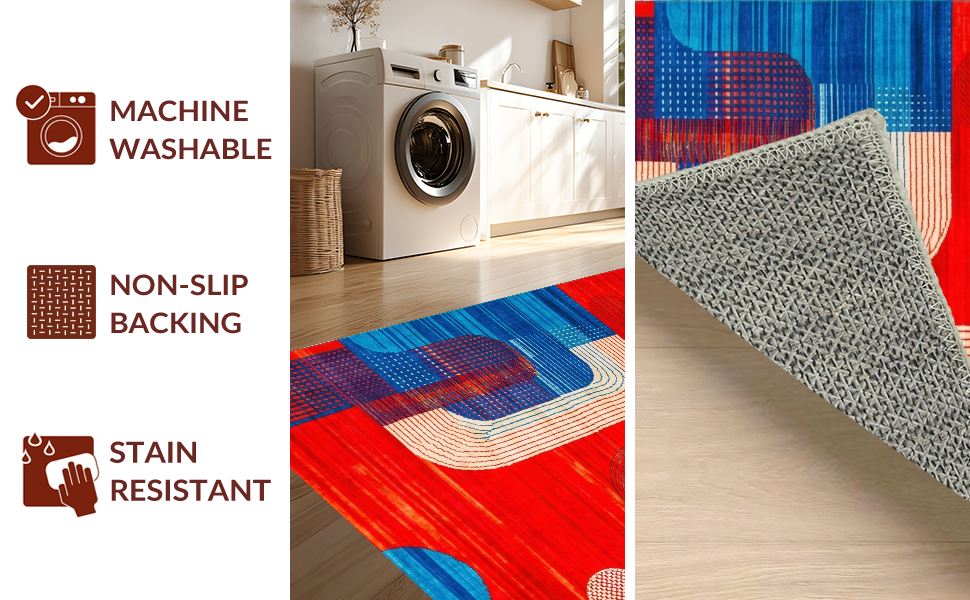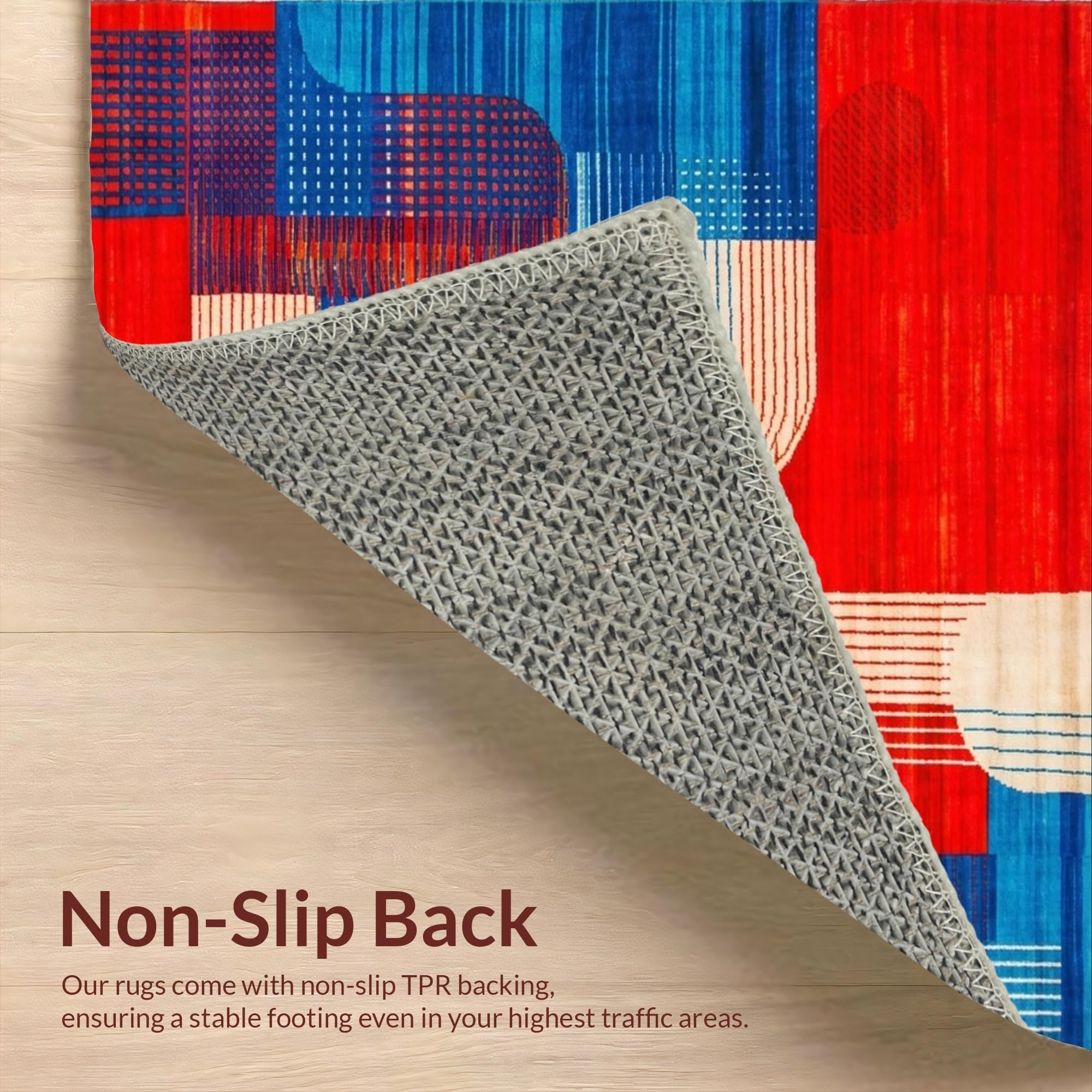 Ultra Soft Area Rug, Non Slip, Stain Resistant, Washable Area Rugs for Living Room, Bedroom, Funky Retro Abstract Composition(Red) Overview: