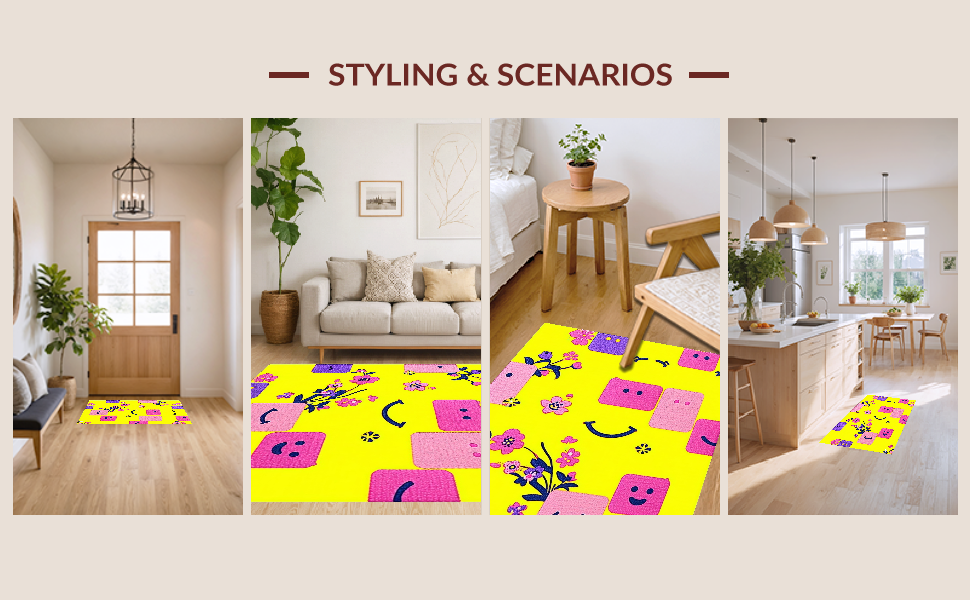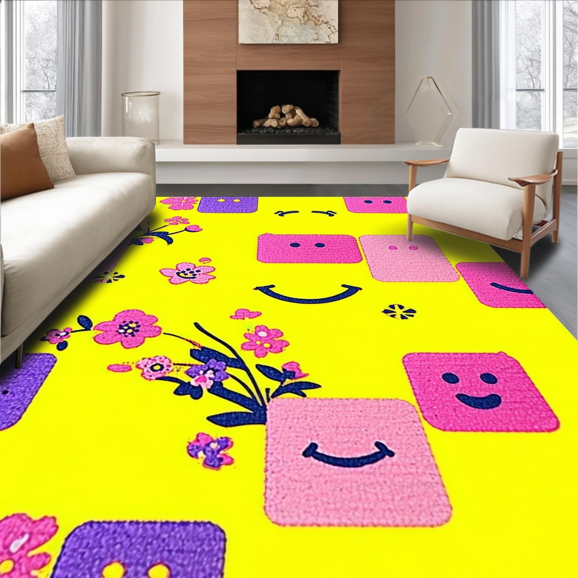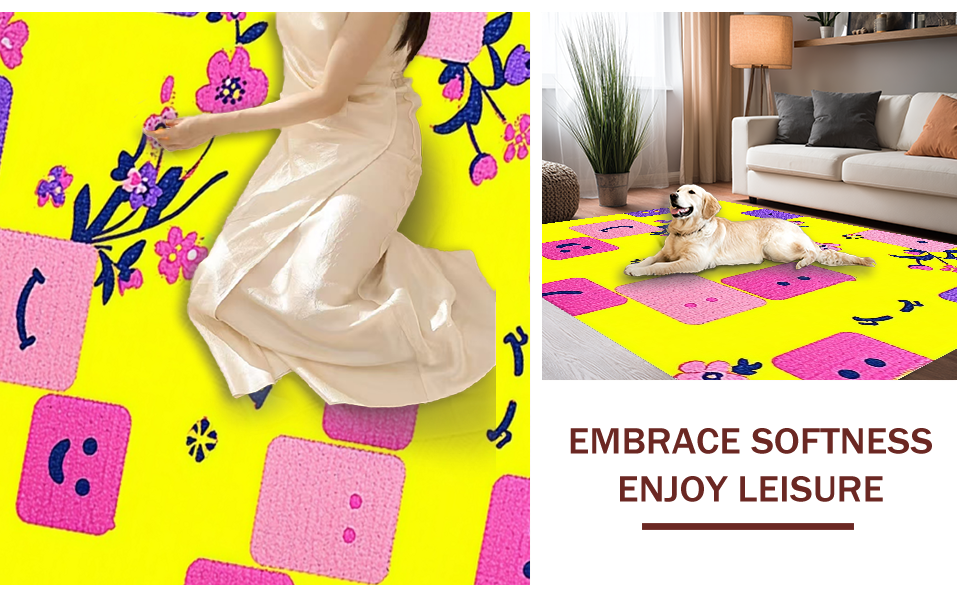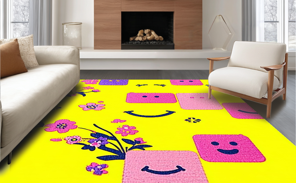 Ultra Soft Area Rug, Non Slip, Stain Resistant, Washable Area Rugs for Living Room, Bedroom, Funky Retro Rainbow Vibe(Yellow) Overview: