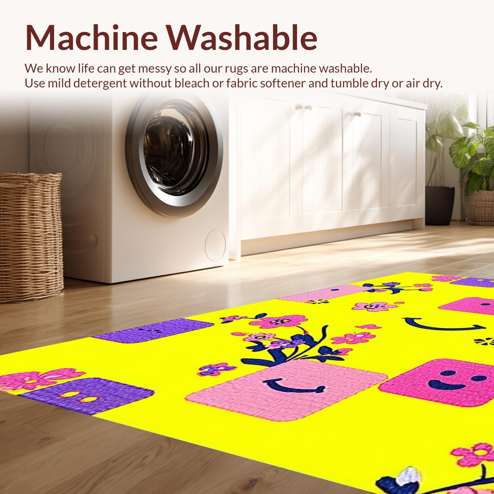 - Machine Washable: Our rugs can be easily thrown in the wash machine.