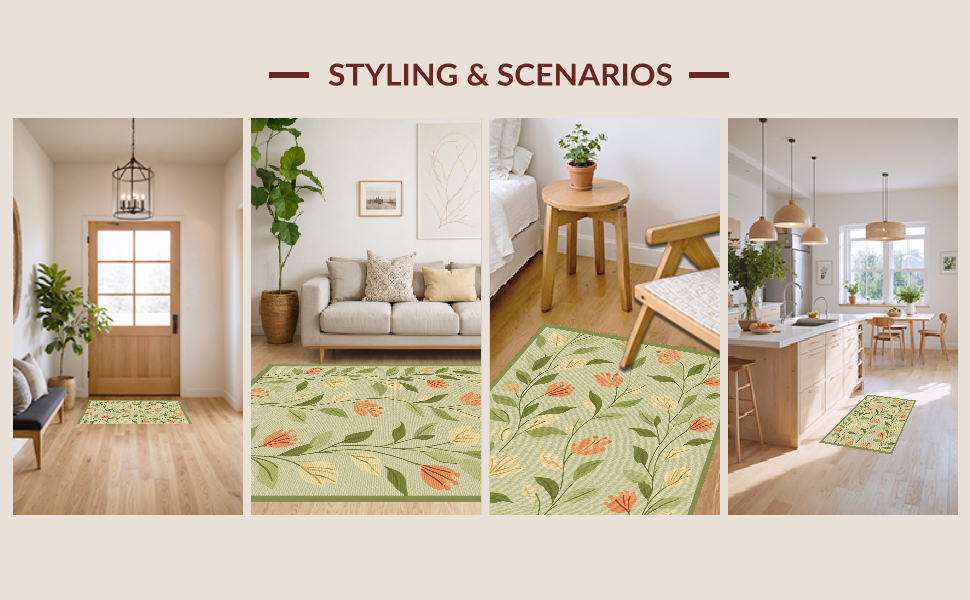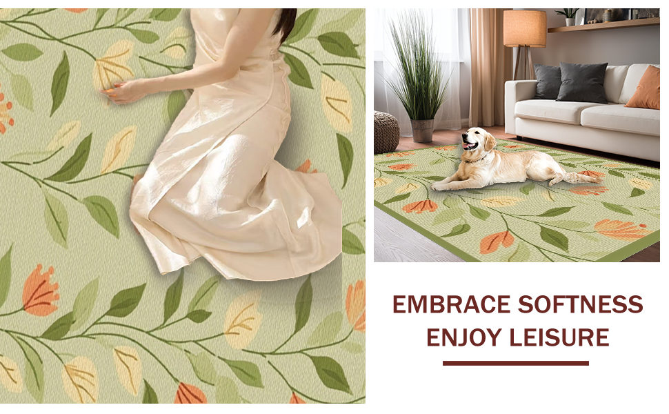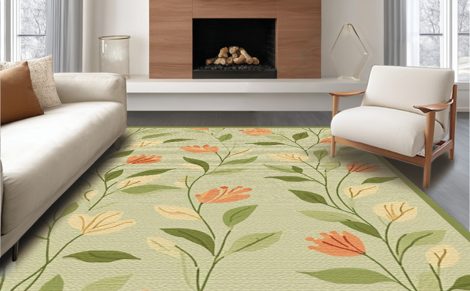 Ultra Soft Area Rug, Non Slip, Stain Resistant, Washable Area Rugs for Living Room, Bedroom, Funky Soft Earthy Floral Vibes(Ivory) Overview: