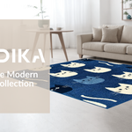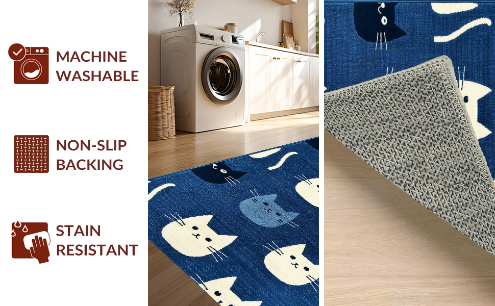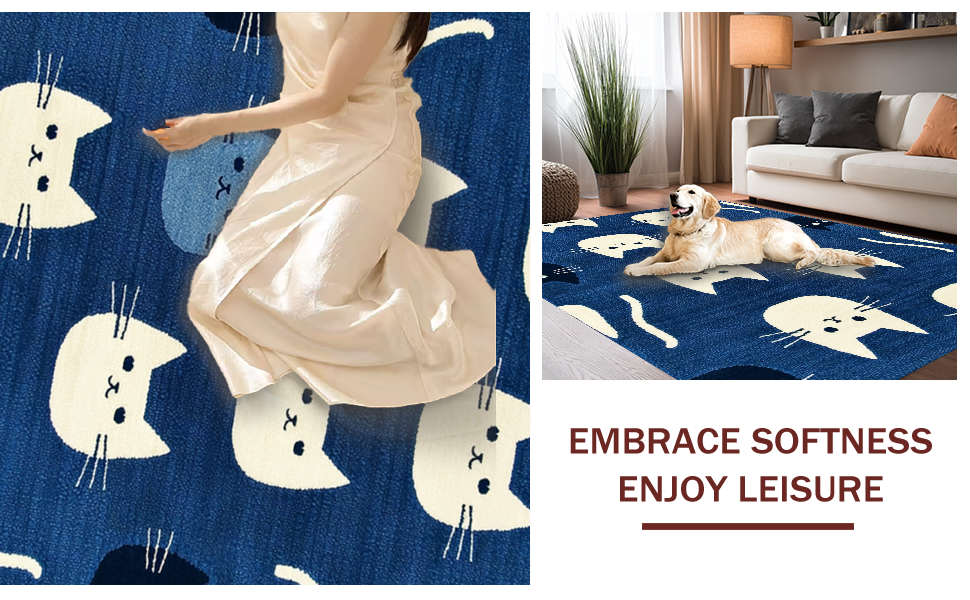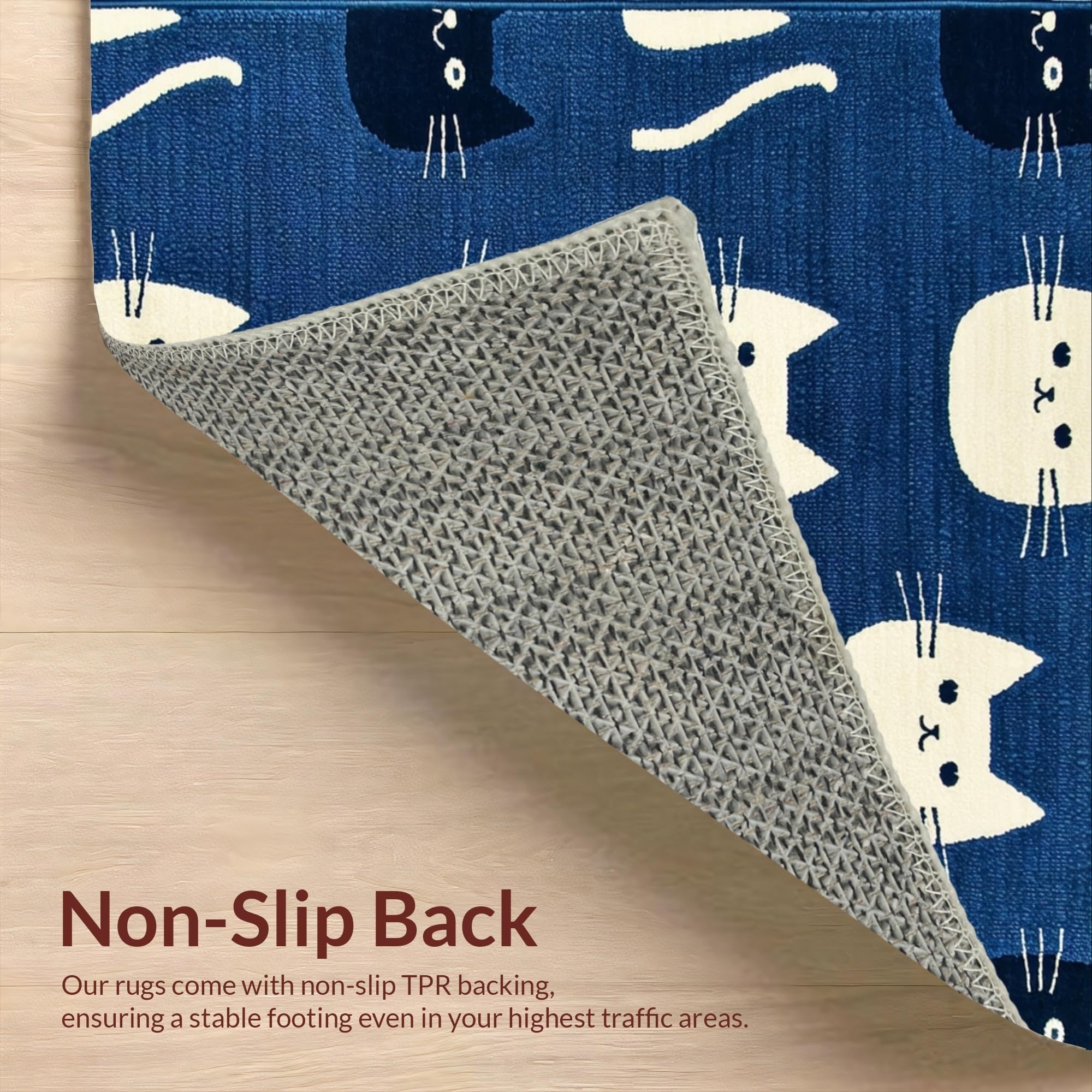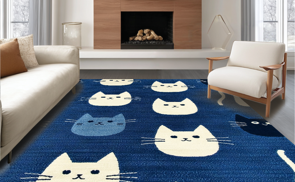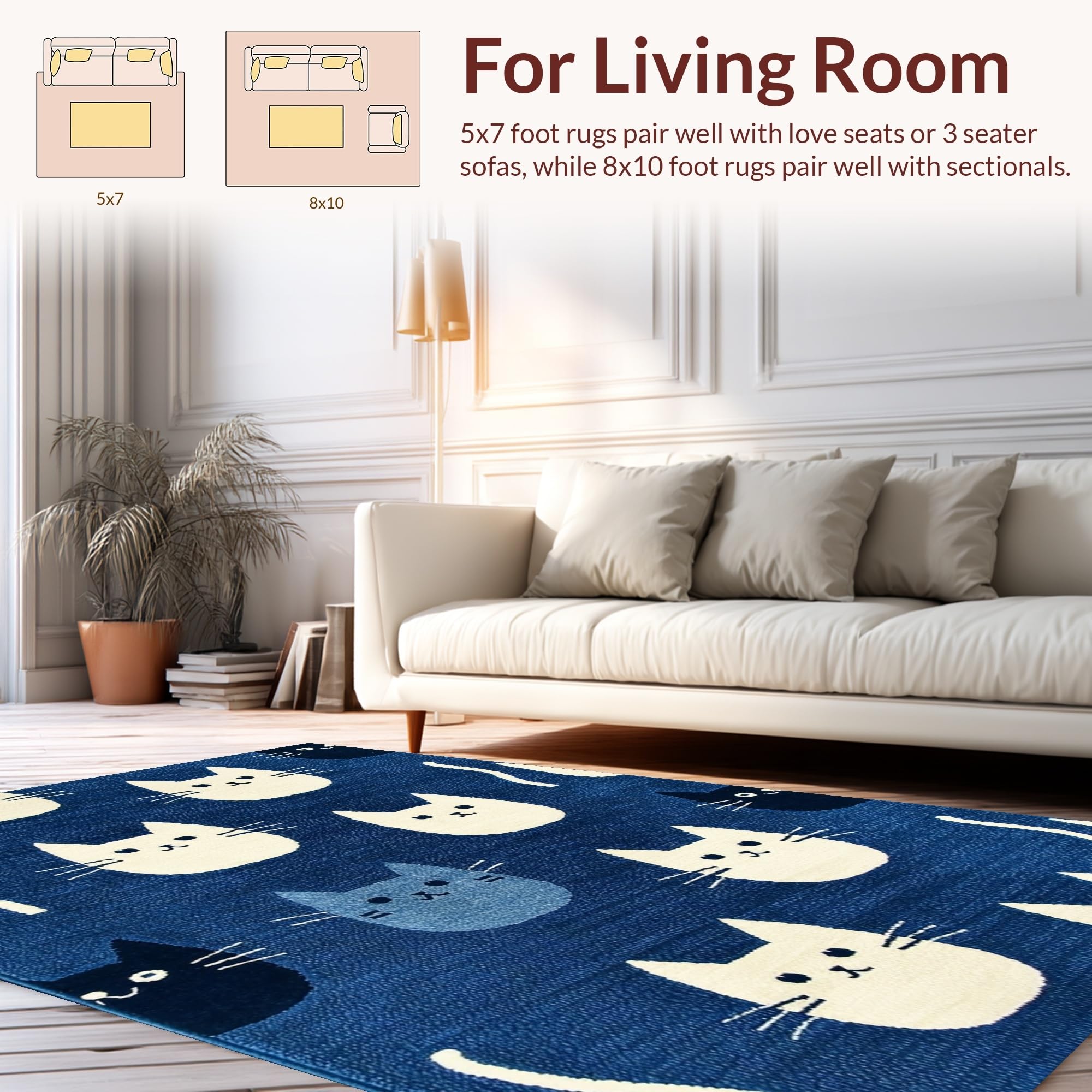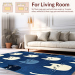 Ultra Soft Area Rug, Non Slip, Stain Resistant, Washable Area Rugs for Living Room, Bedroom, Funny Cat Theme Bathroom Accent(Blue) Overview: