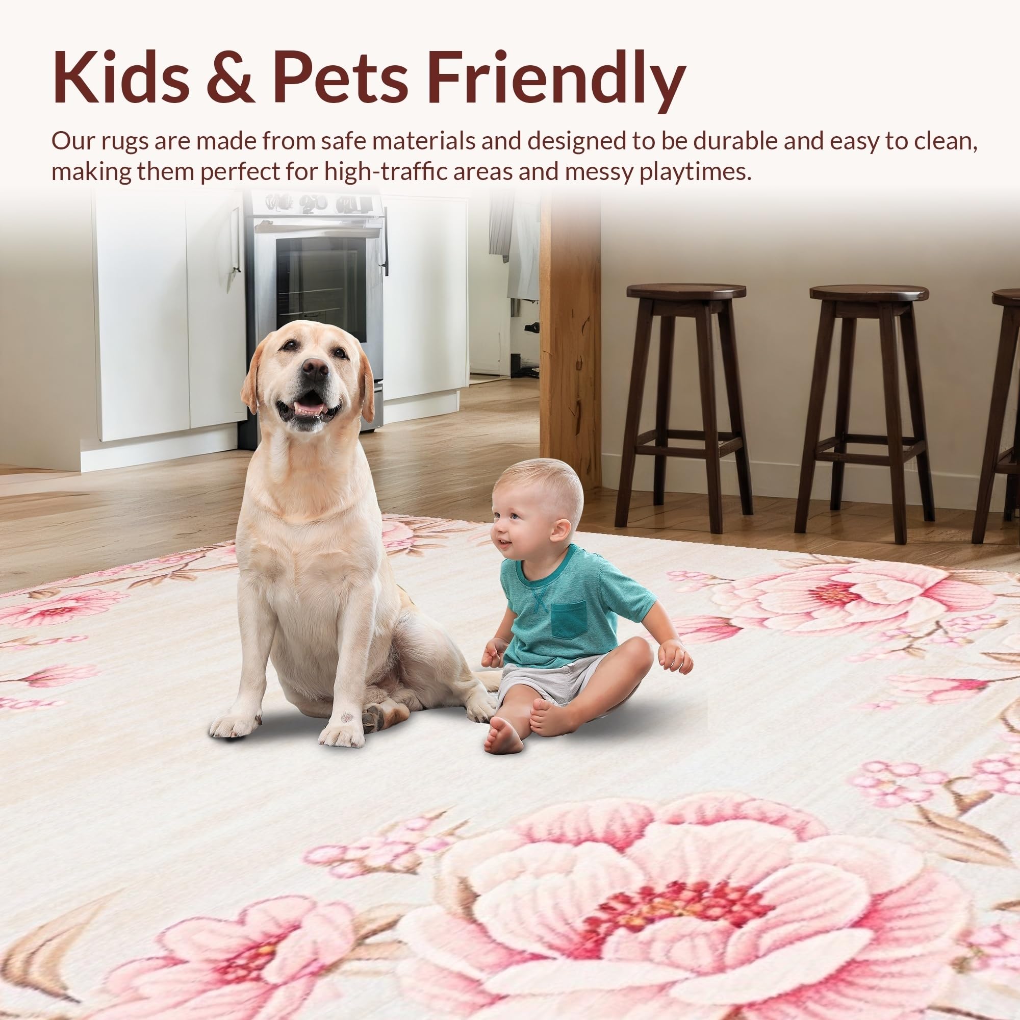 Ultra Soft Area Rug, Non Slip, Stain Resistant, Washable Area Rugs for Living Room, Bedroom, Fuzzy Plush Transitional Decor(Beige) Overview: