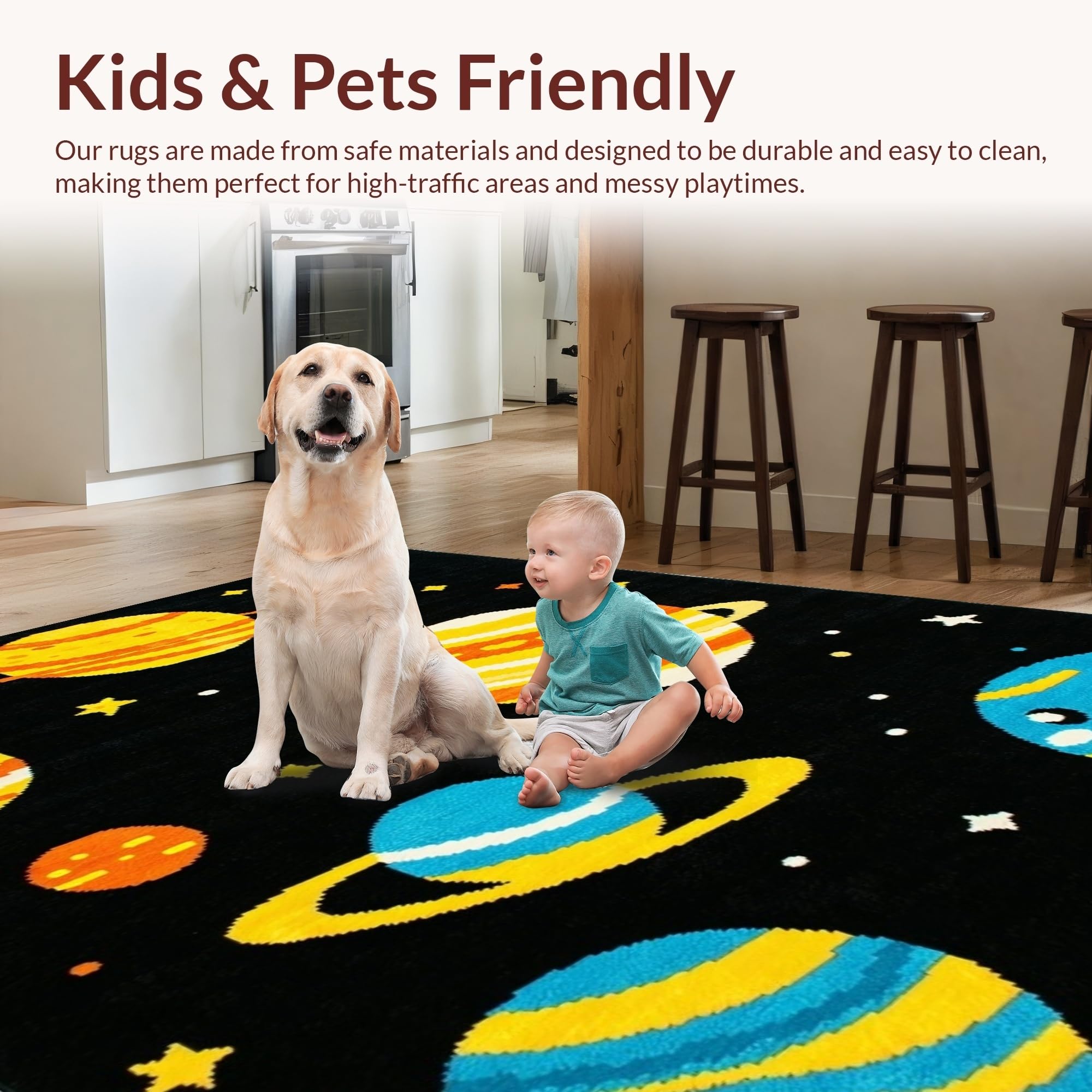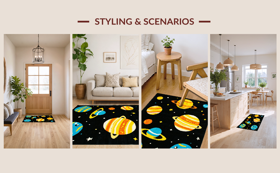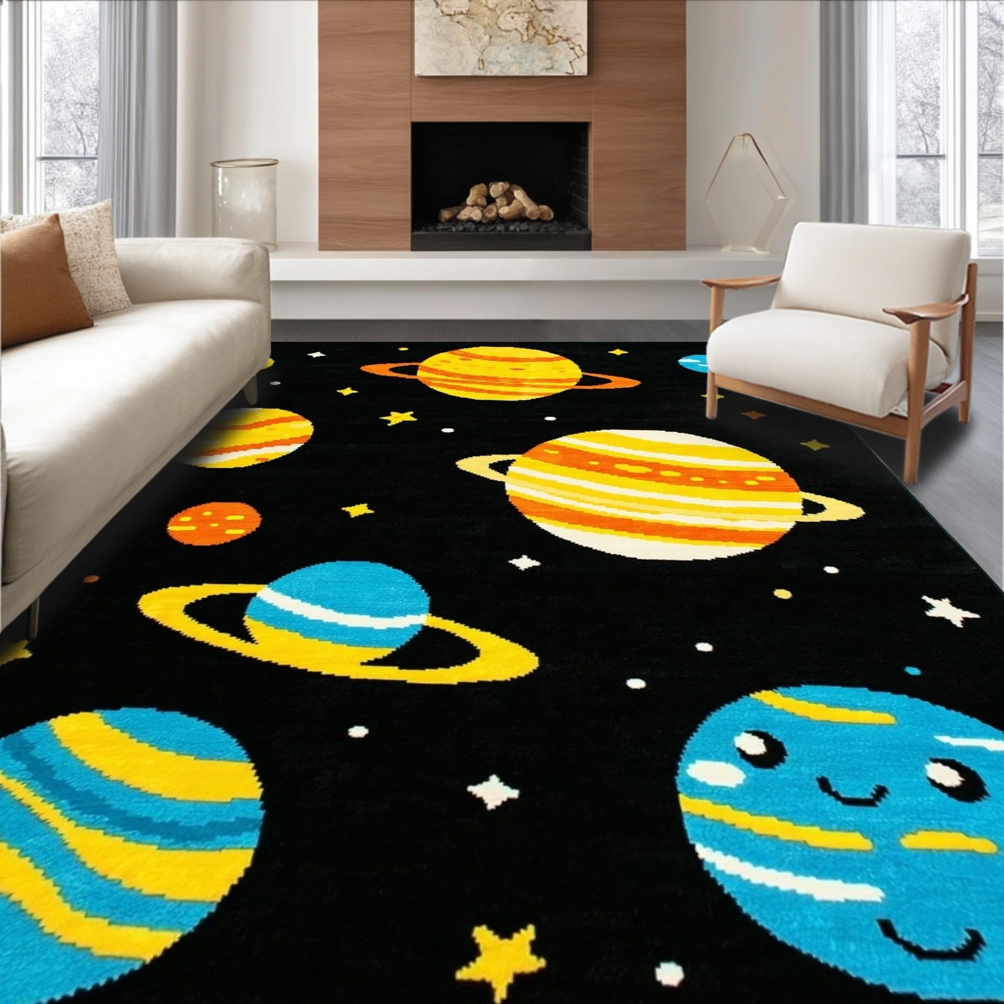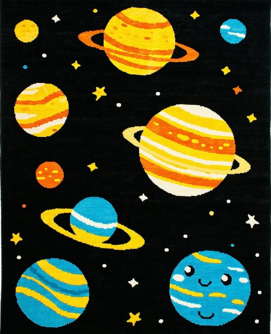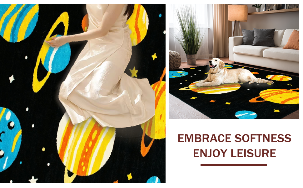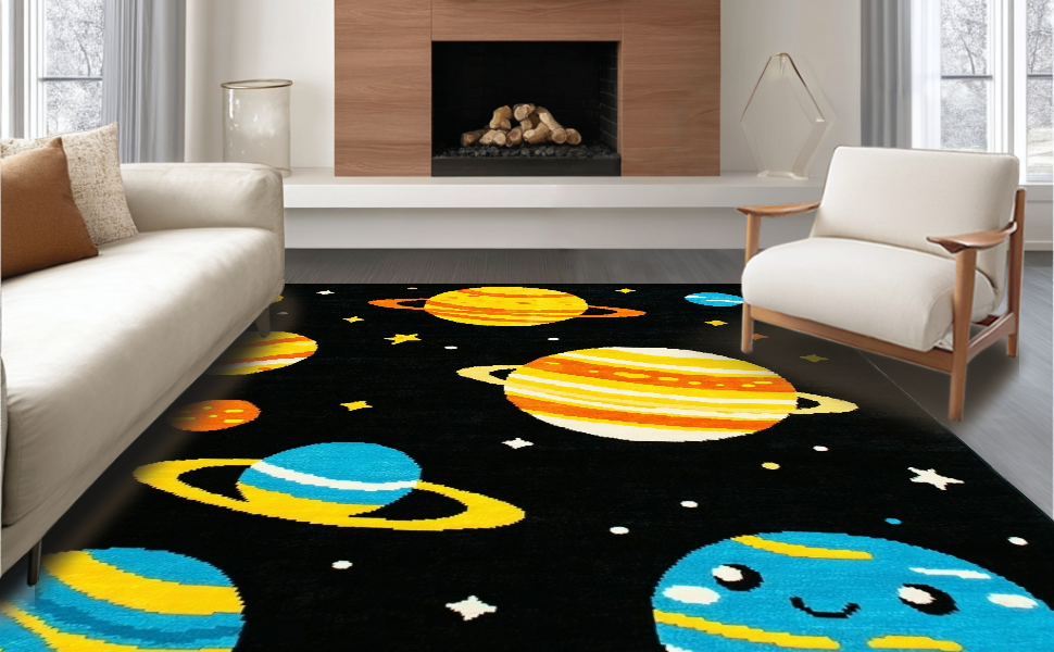 Ultra Soft Area Rug, Non Slip, Stain Resistant, Washable Area Rugs for Living Room, Bedroom, Galactic Colorful Fantasy Pattern(Black) Overview: