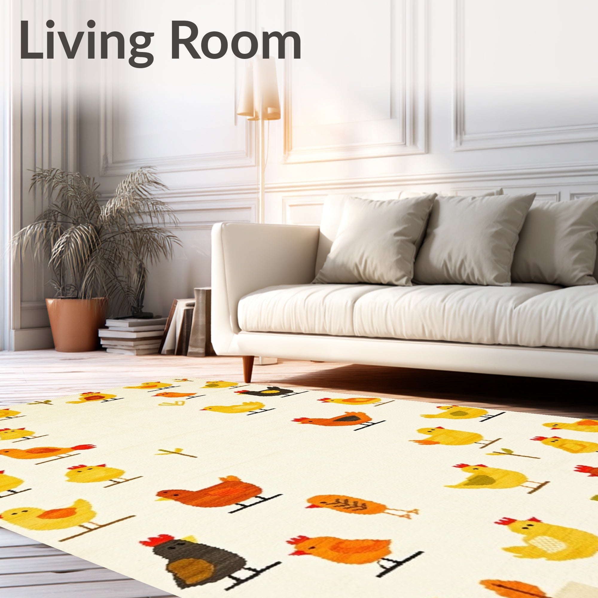 Ultra Soft Area Rug, Non Slip, Stain Resistant, Washable Area Rugs for Living Room, Bedroom, Gallinaceous Gatherings Beige Runner Whimsical Chicken Design Art(Beige) Overview: