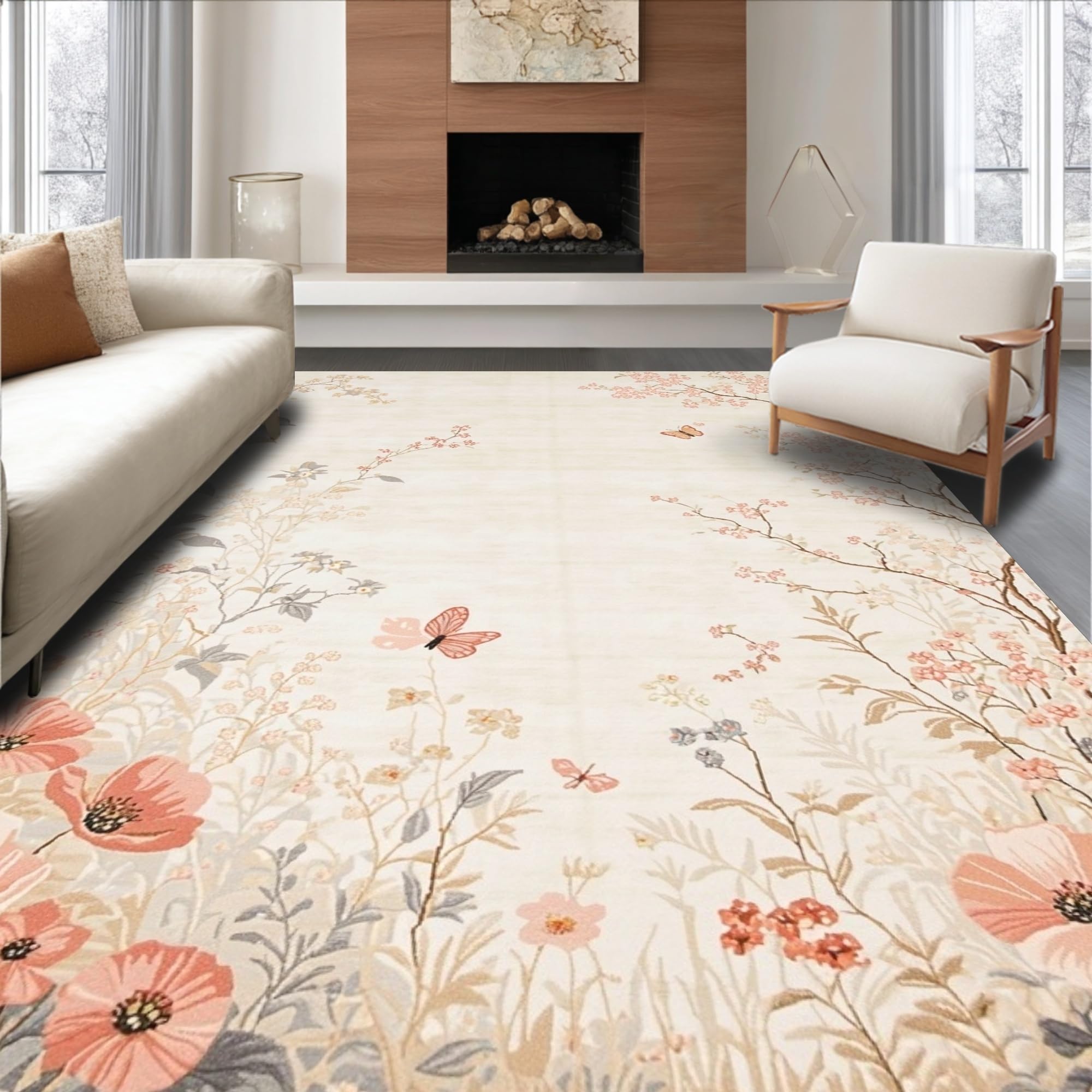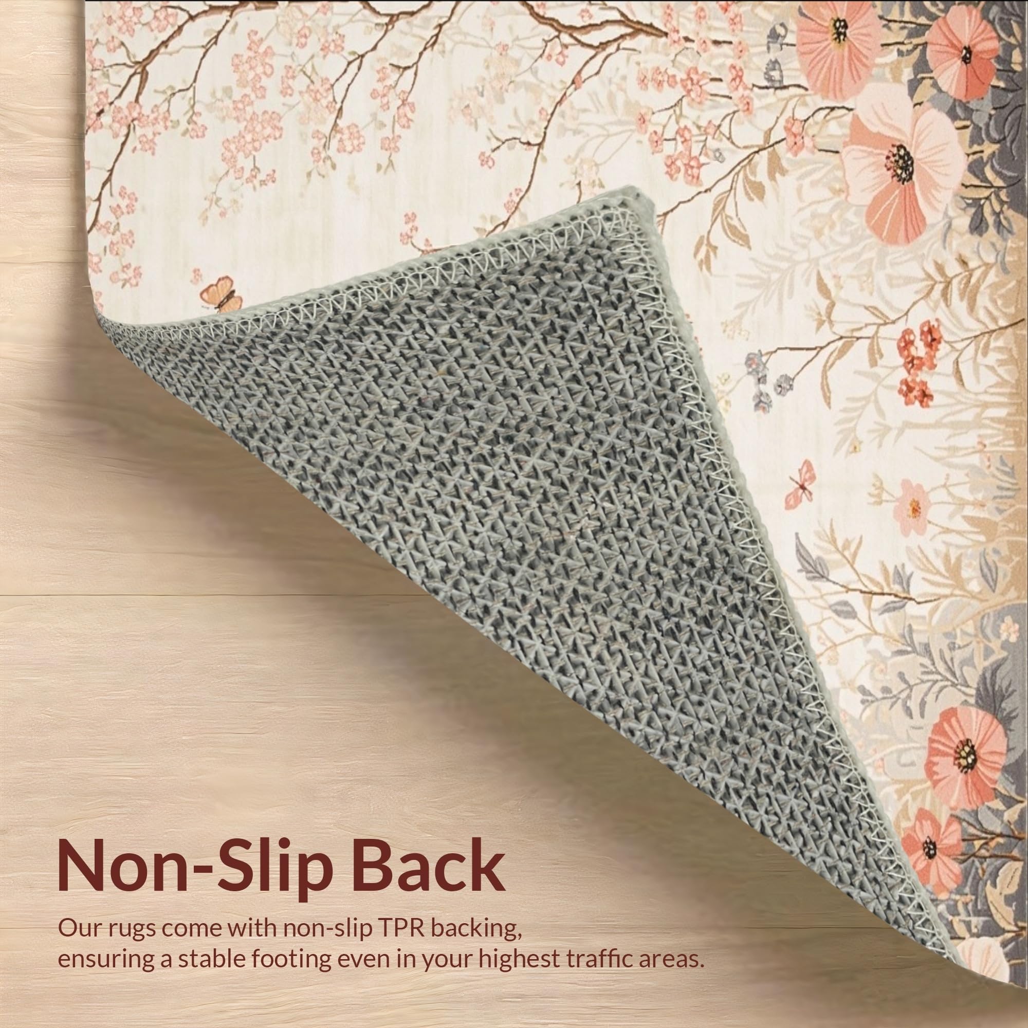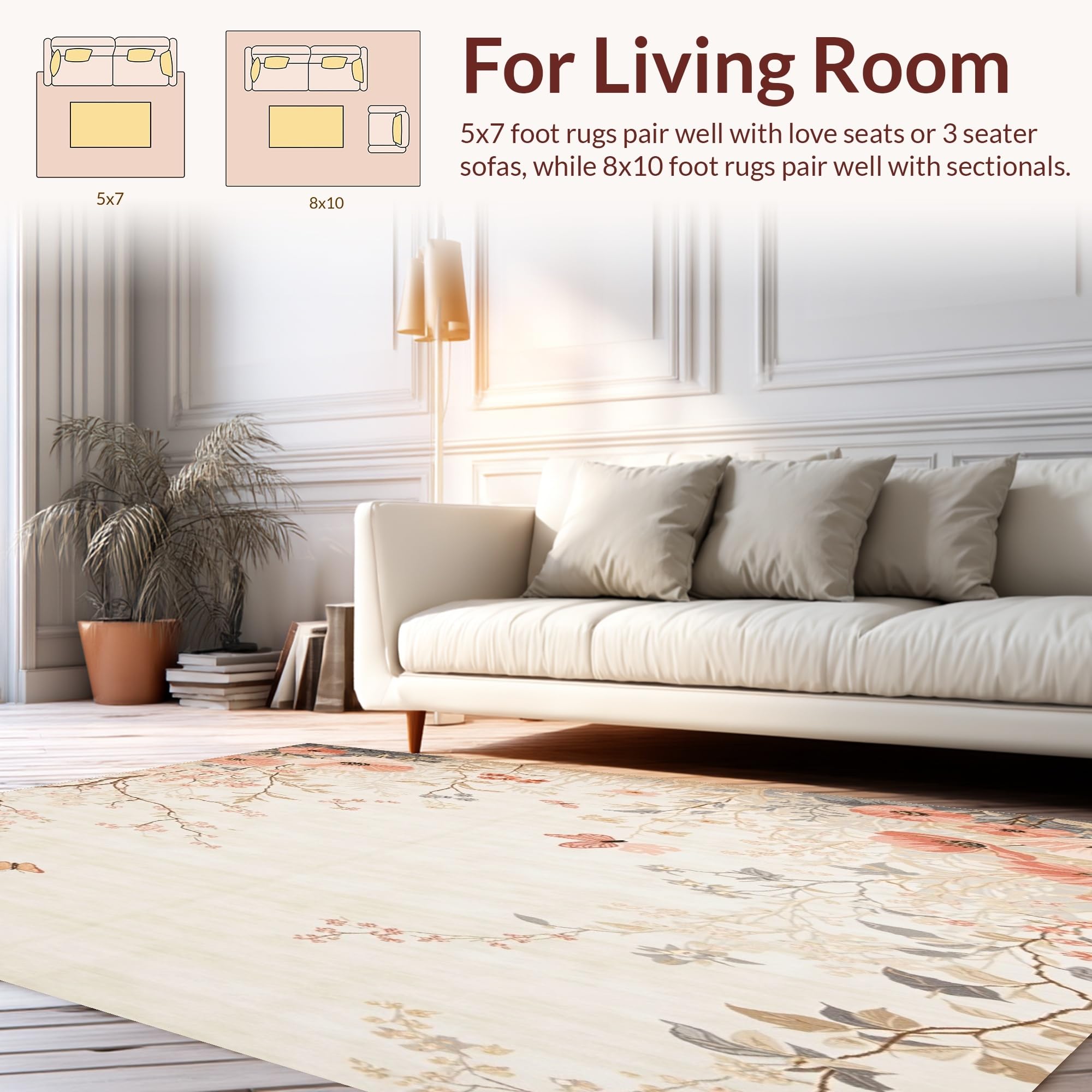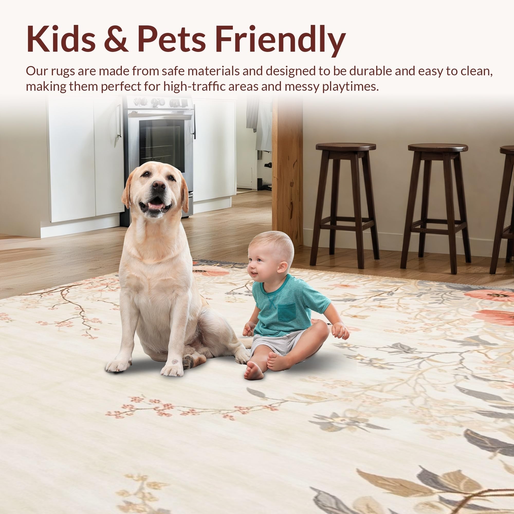 Ultra Soft Area Rug, Non Slip, Stain Resistant, Washable Area Rugs for Living Room, Bedroom, Garden Vista Area Beige Floral for Serene Spaces(Beige) Overview: