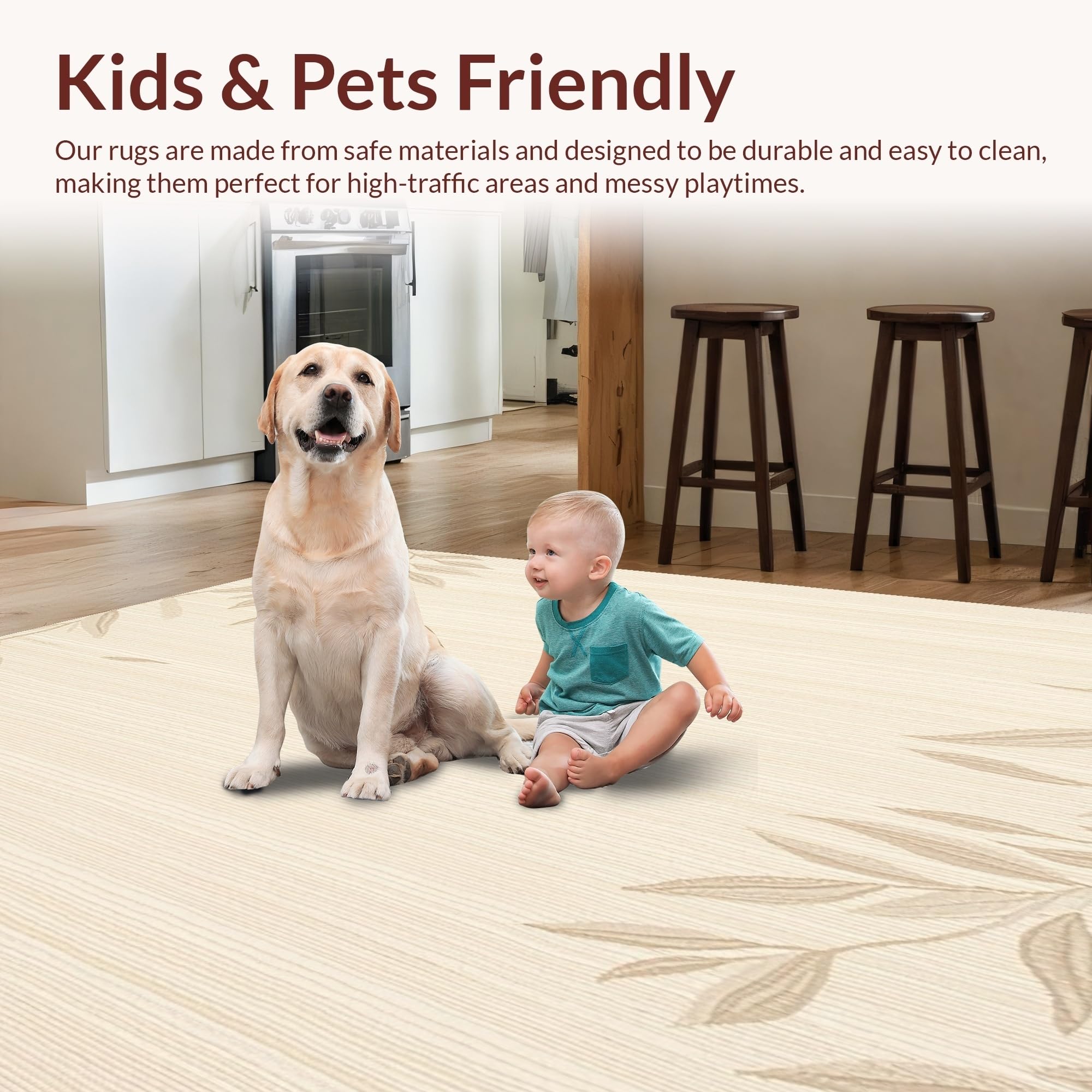 Ultra Soft Area Rug, Non Slip, Stain Resistant, Washable Area Rugs for Living Room, Bedroom, Gentle Beige with Leafy Crawling Playmate Style(Beige) Overview: