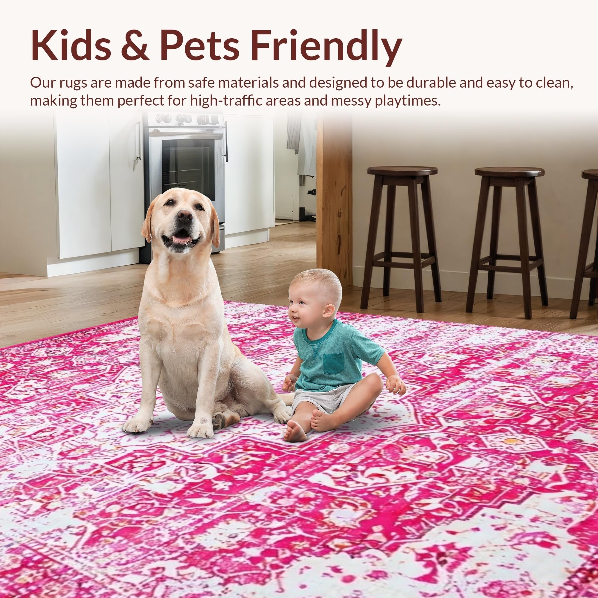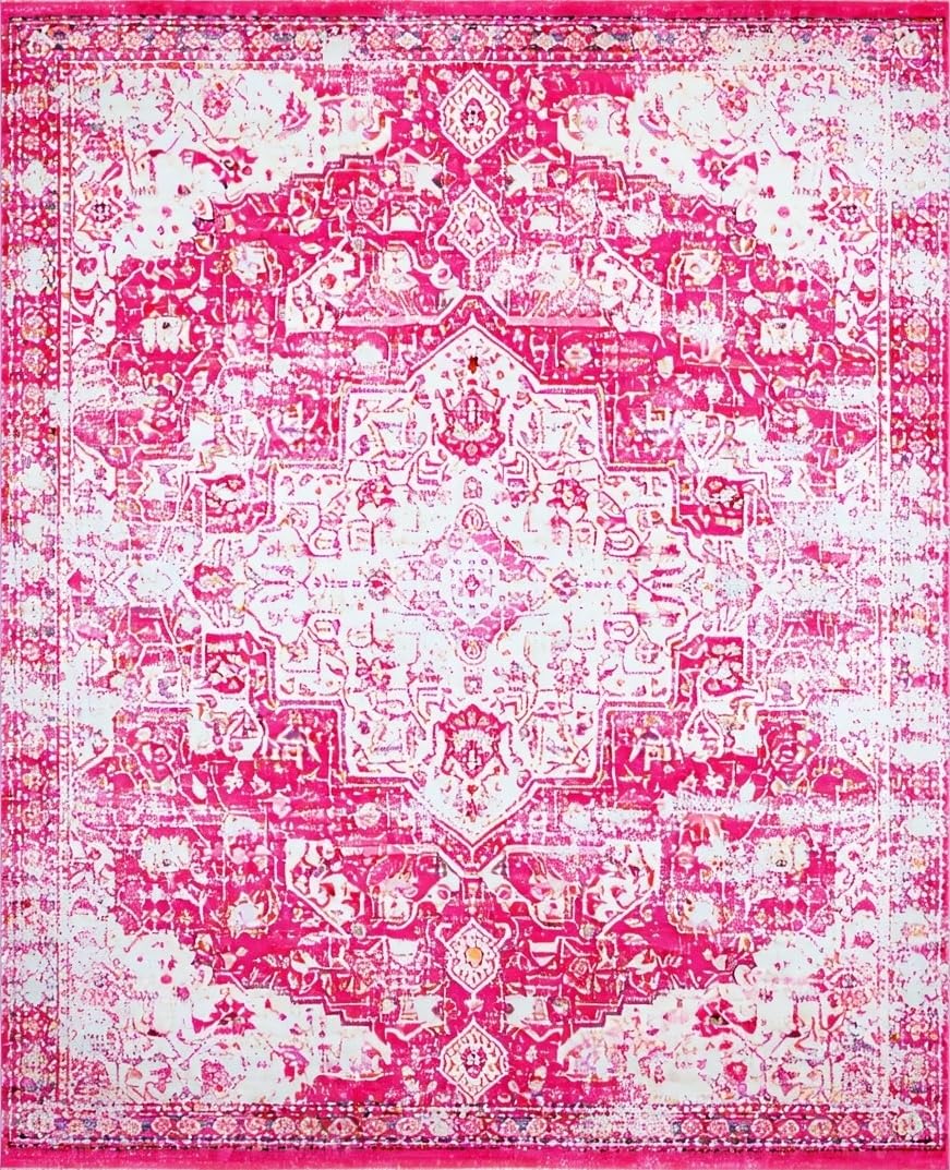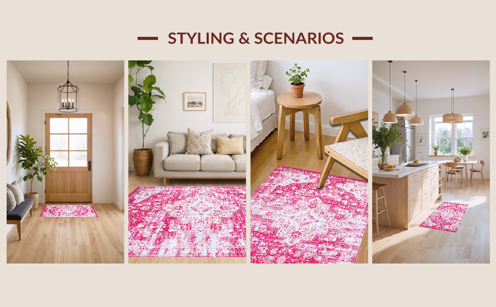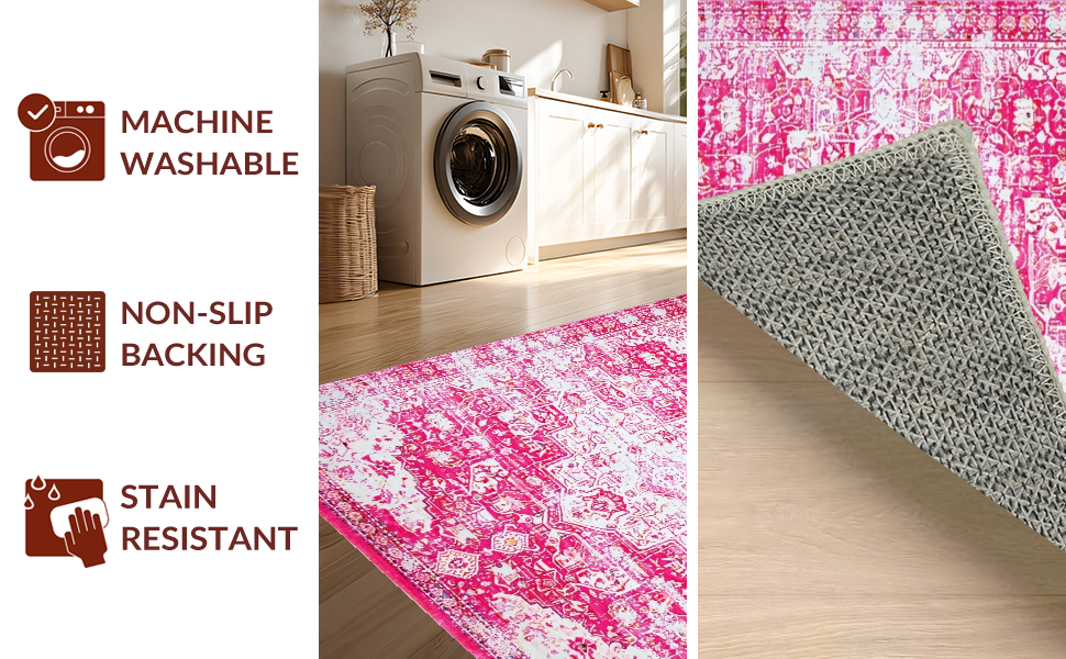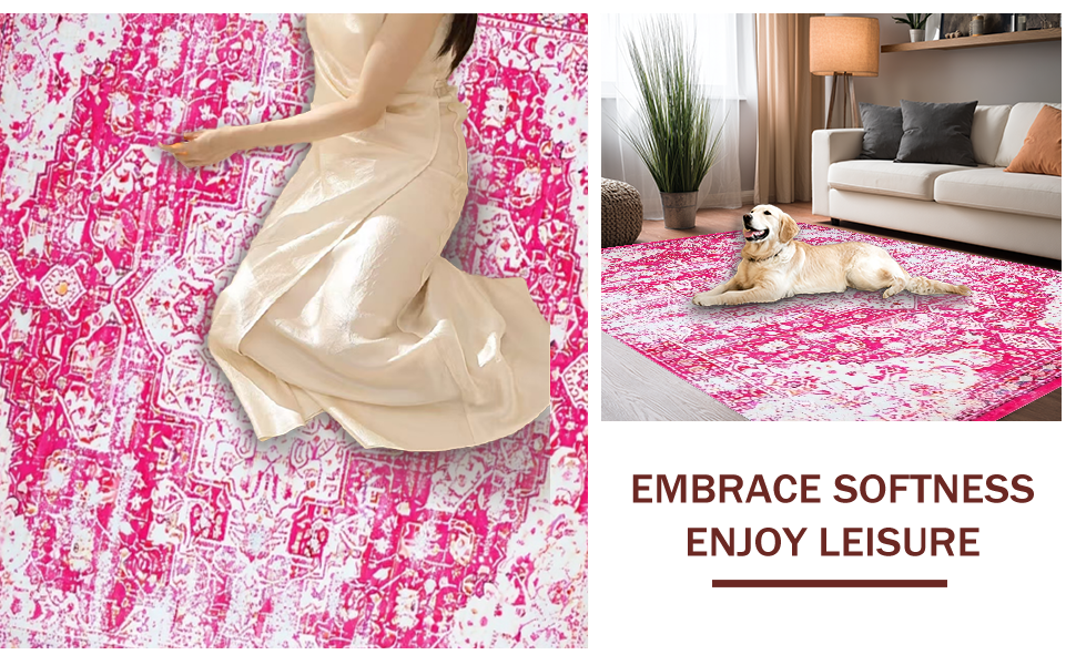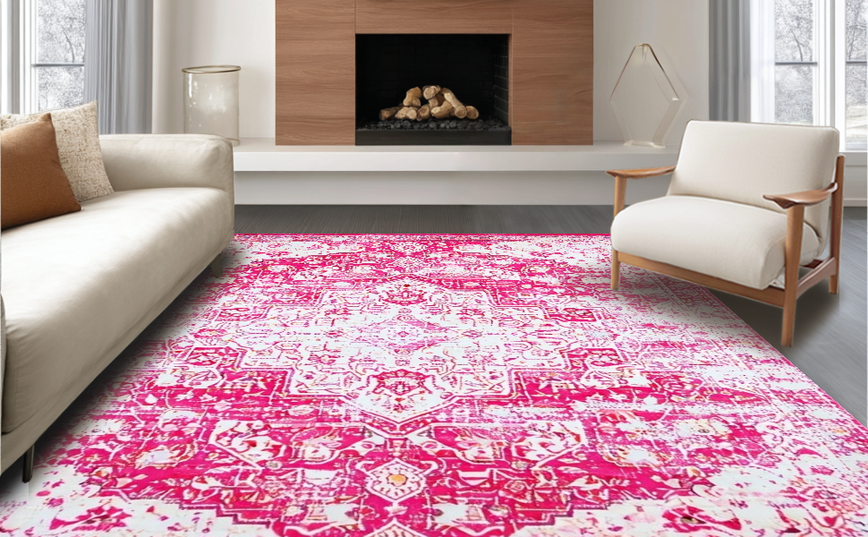Ultra Soft Area Rug, Non Slip, Stain Resistant, Washable Area Rugs for Living Room, Bedroom, Gently Worn Vintage Gallery Appeal(Pink) Overview: