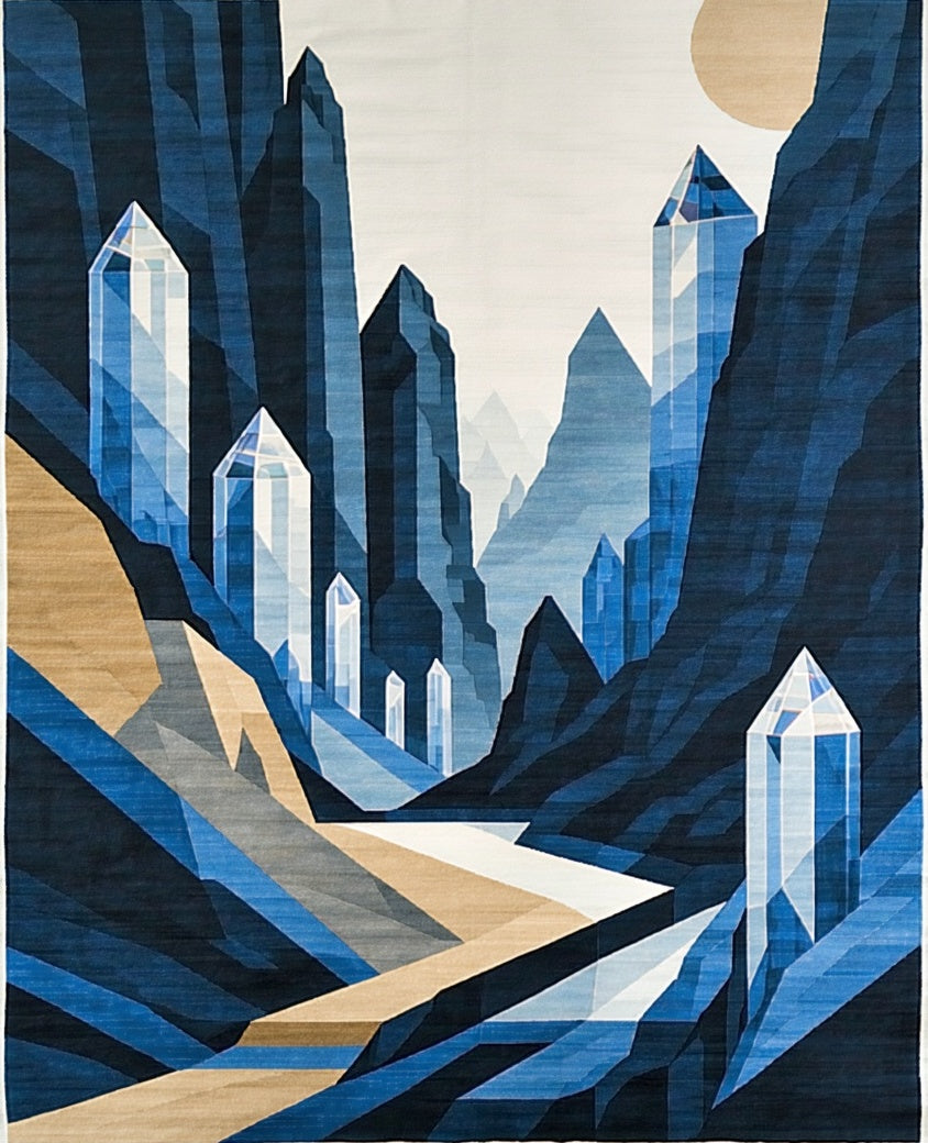 Geode Harmony Dark Blue Beige Crystal Geometric(Blue)