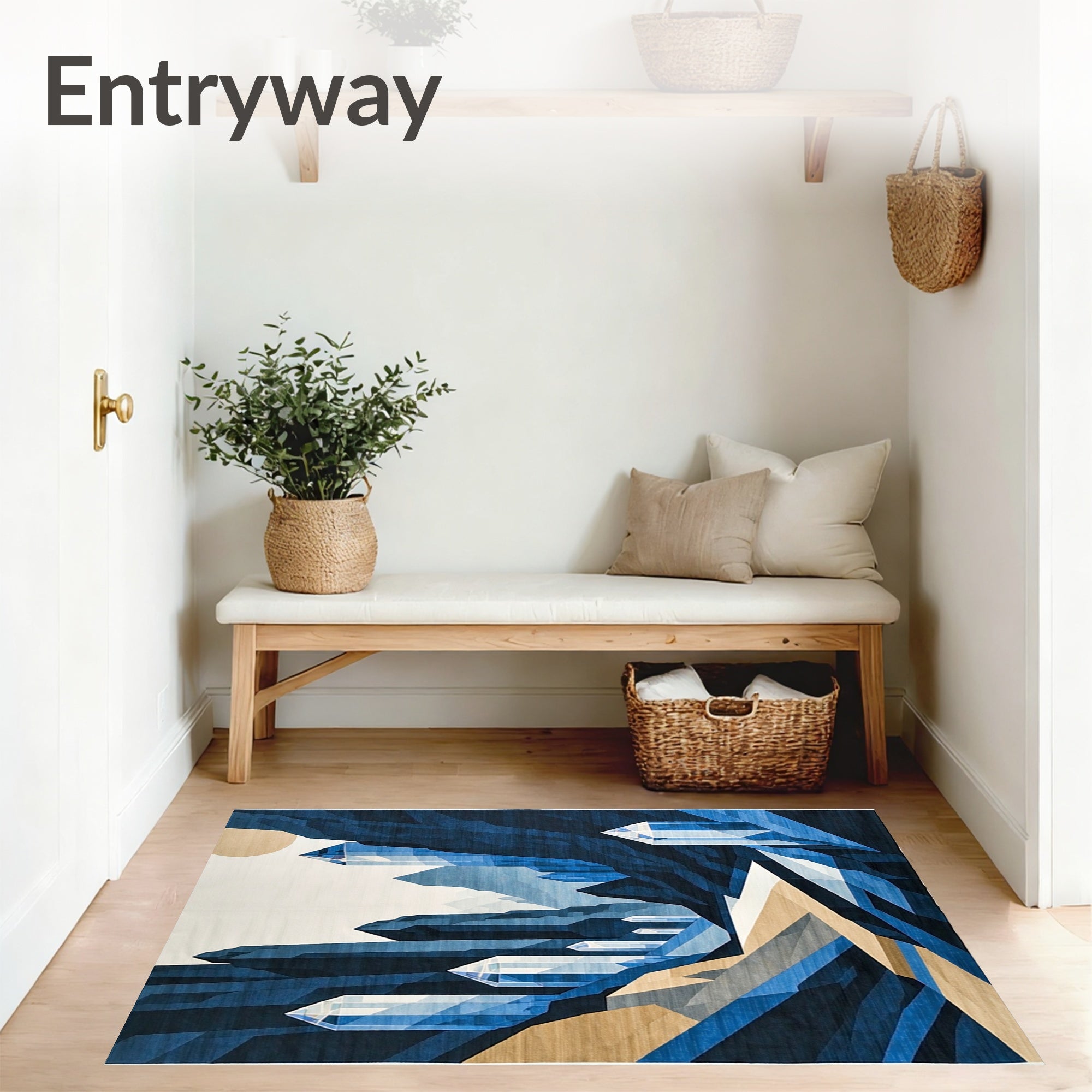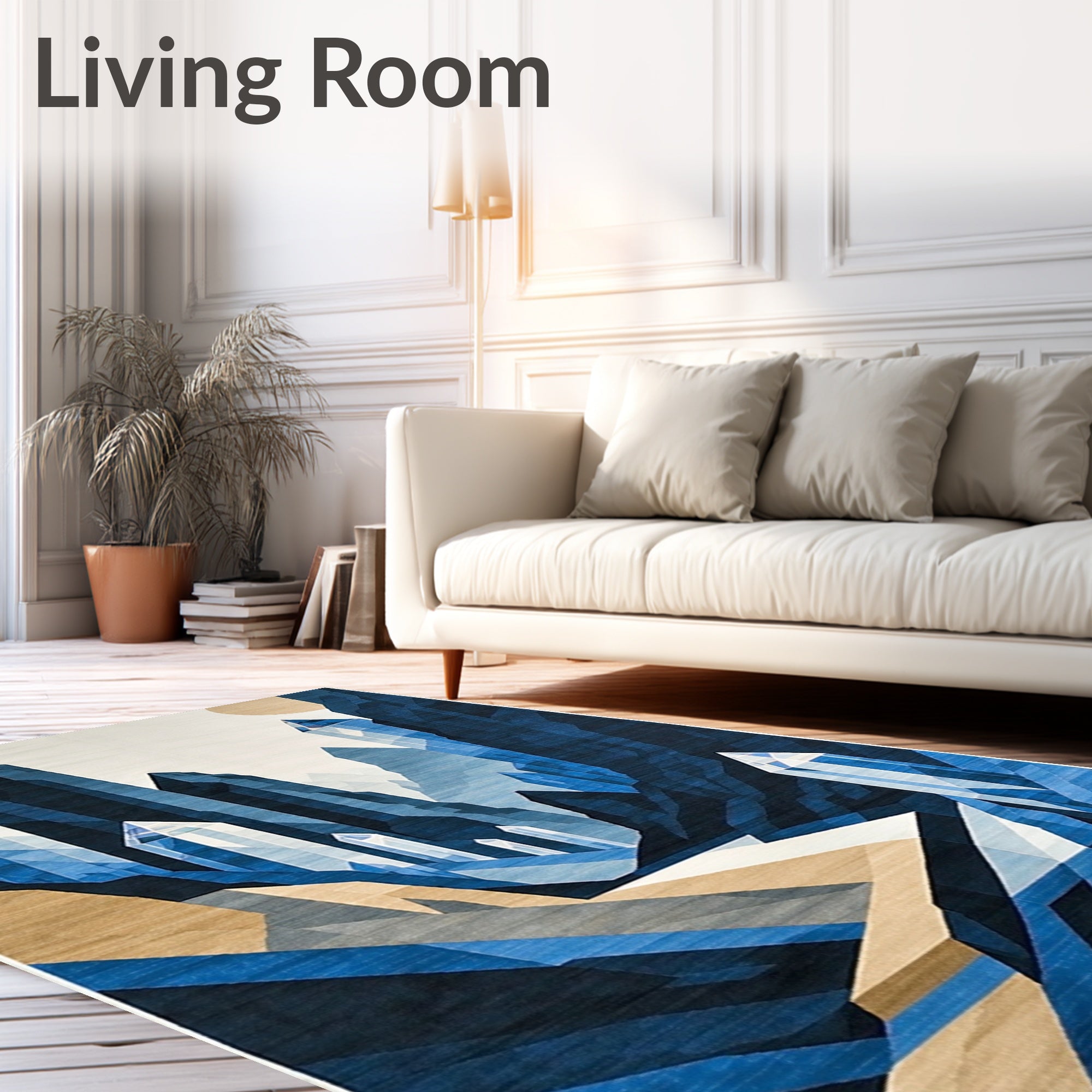 Ultra Soft Area Rug, Non Slip, Stain Resistant, Washable Area Rugs for Living Room, Bedroom, Geode Harmony Dark Blue Beige Crystal Geometric(Blue) Overview: