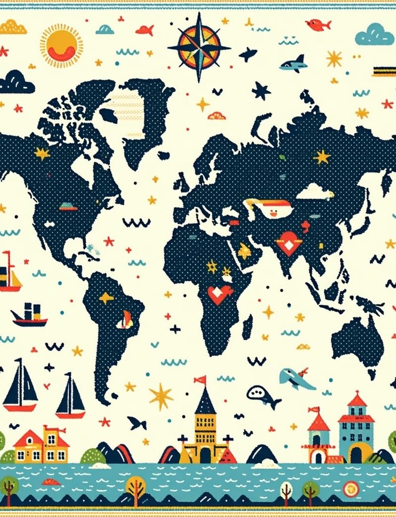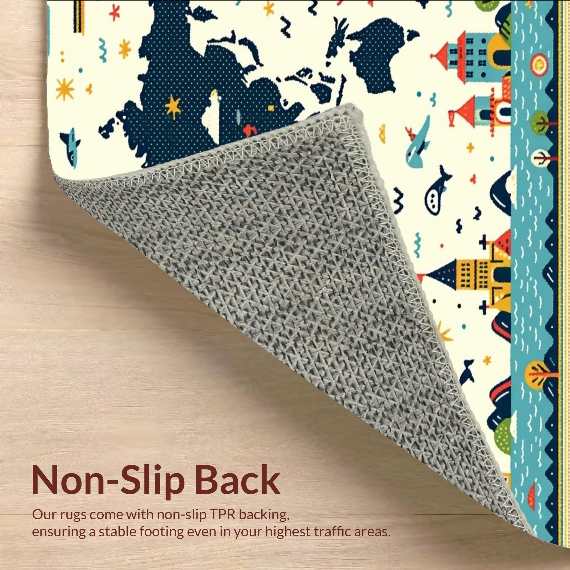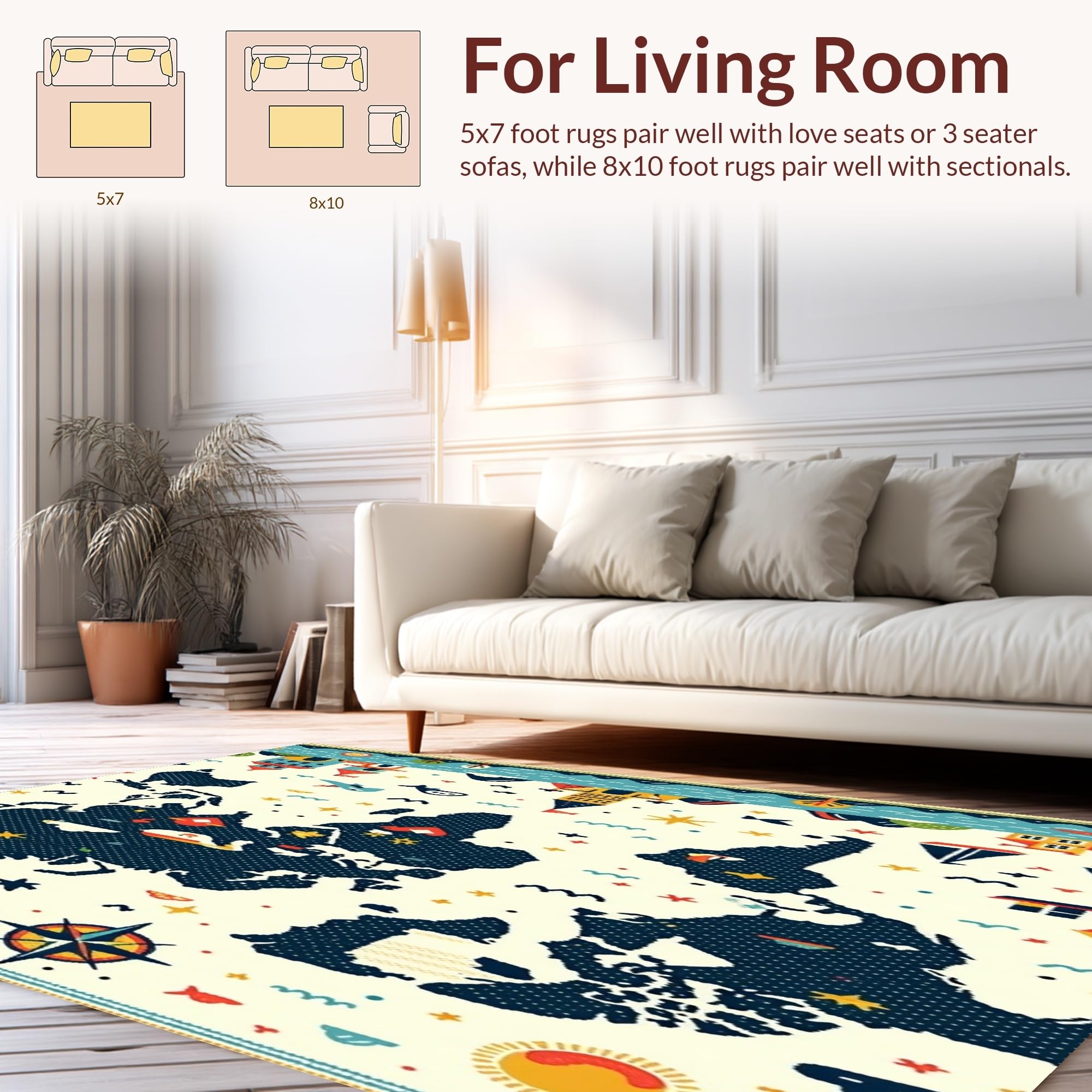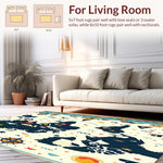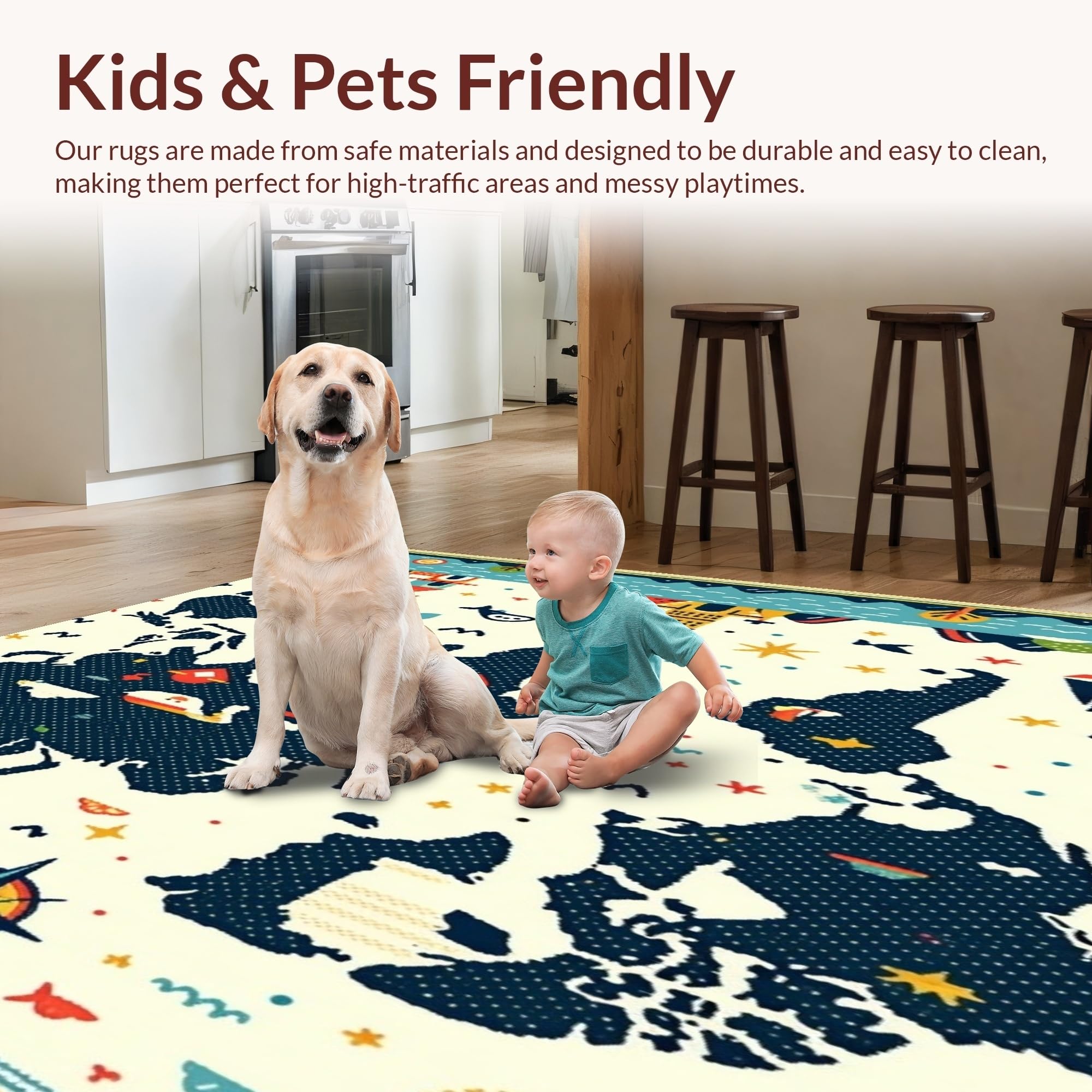 Ultra Soft Area Rug, Non Slip, Stain Resistant, Washable Area Rugs for Living Room, Bedroom, Geographical Discovery Round Area with Continents for Game Time(Black) Overview: