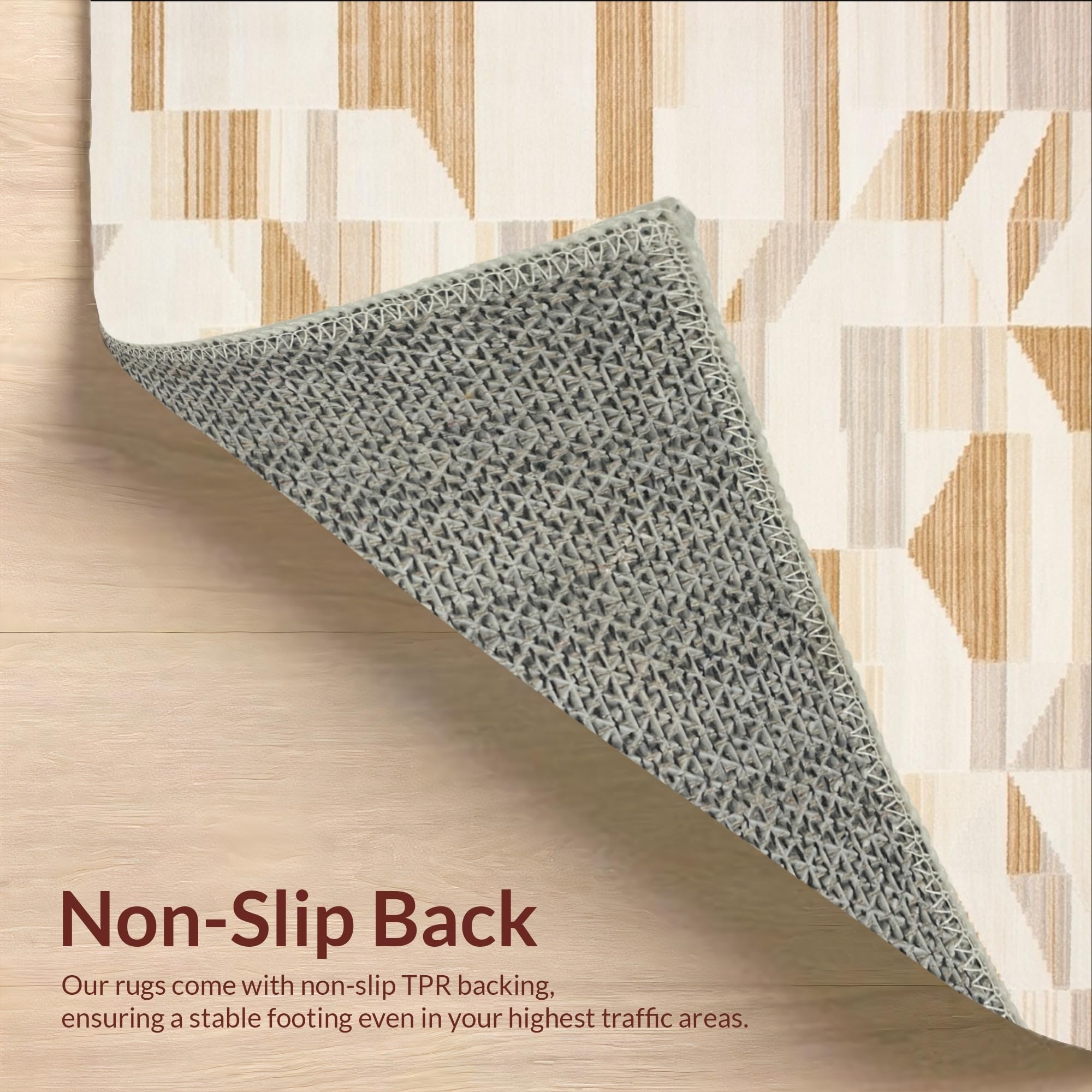 Geometric Abstract Shaped Beige Cream Non Shedding Pet Friendly Area(Beige)