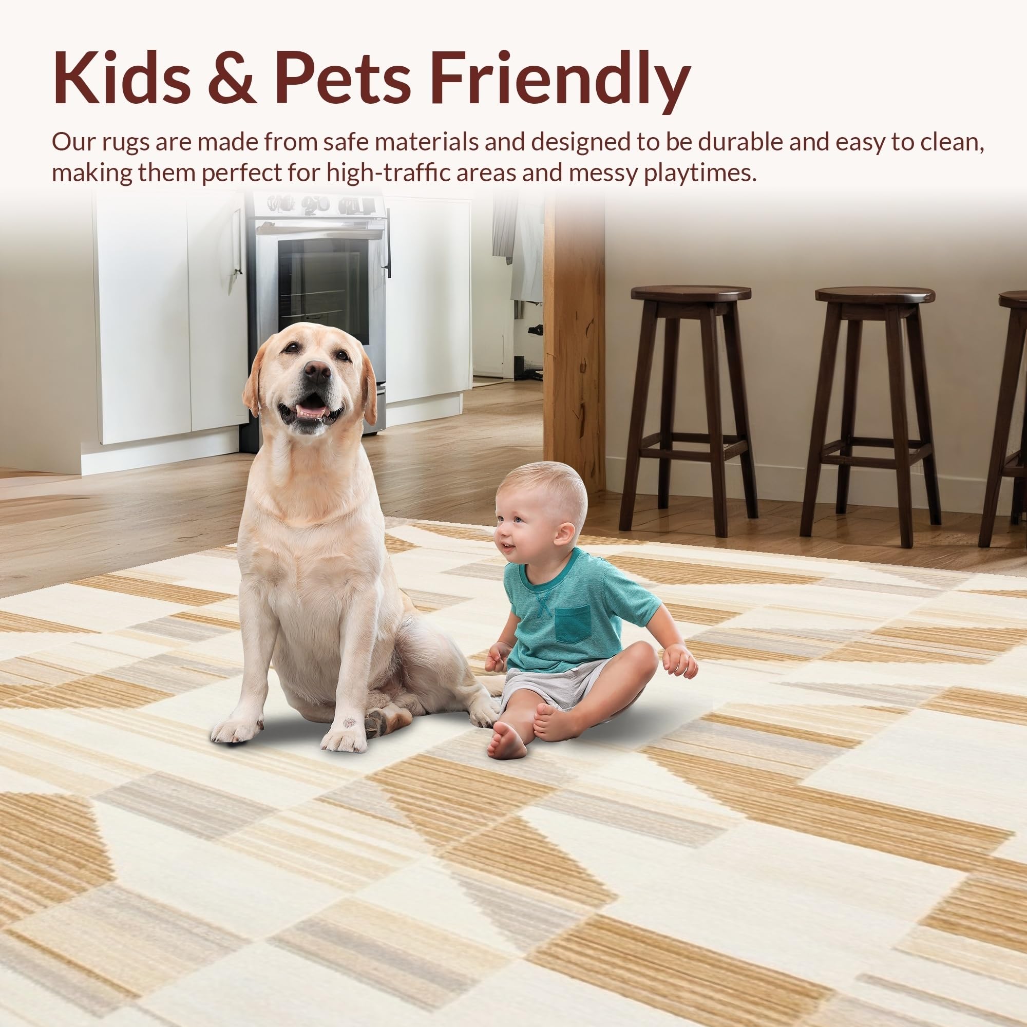 Ultra Soft Area Rug, Non Slip, Stain Resistant, Washable Area Rugs for Living Room, Bedroom, Geometric Abstract Shaped Beige Cream Non Shedding Pet Friendly Area(Beige) Overview: