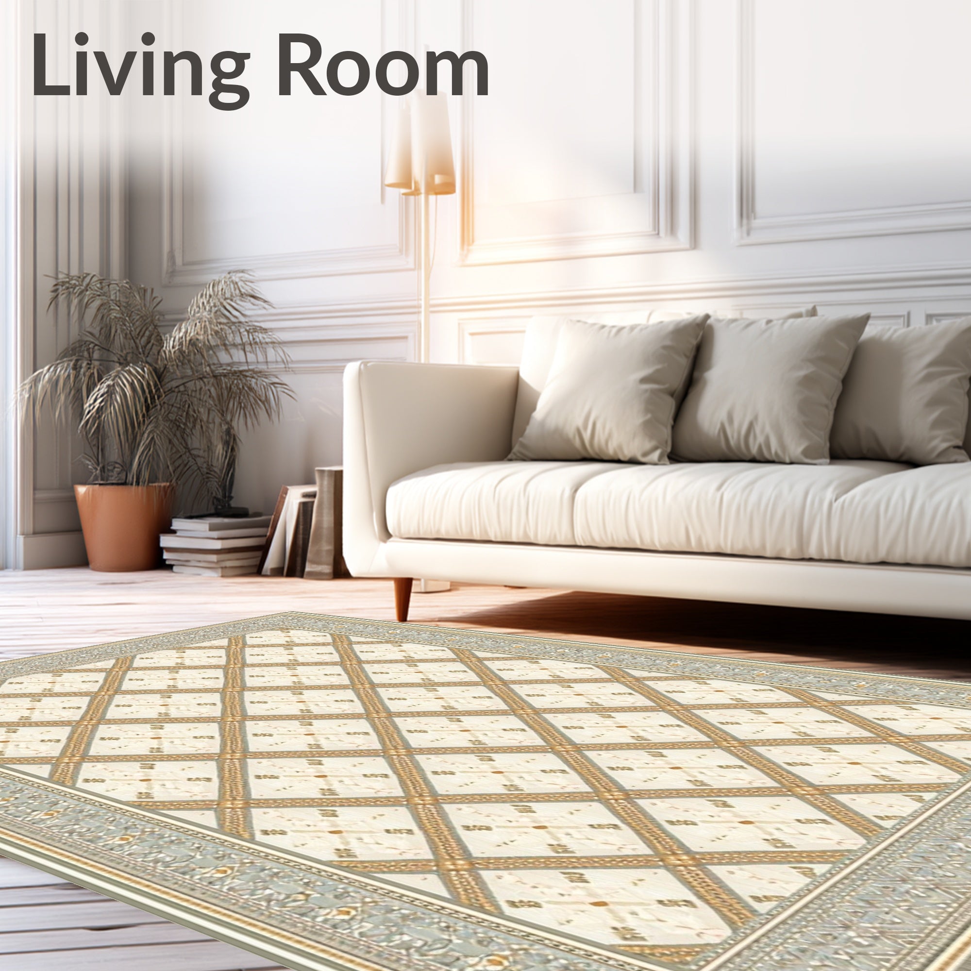 Ultra Soft Area Rug, Non Slip, Stain Resistant, Washable Area Rugs for Living Room, Bedroom, Geometric Argyle Area with Beige and Ivory Details(Beige) Overview: