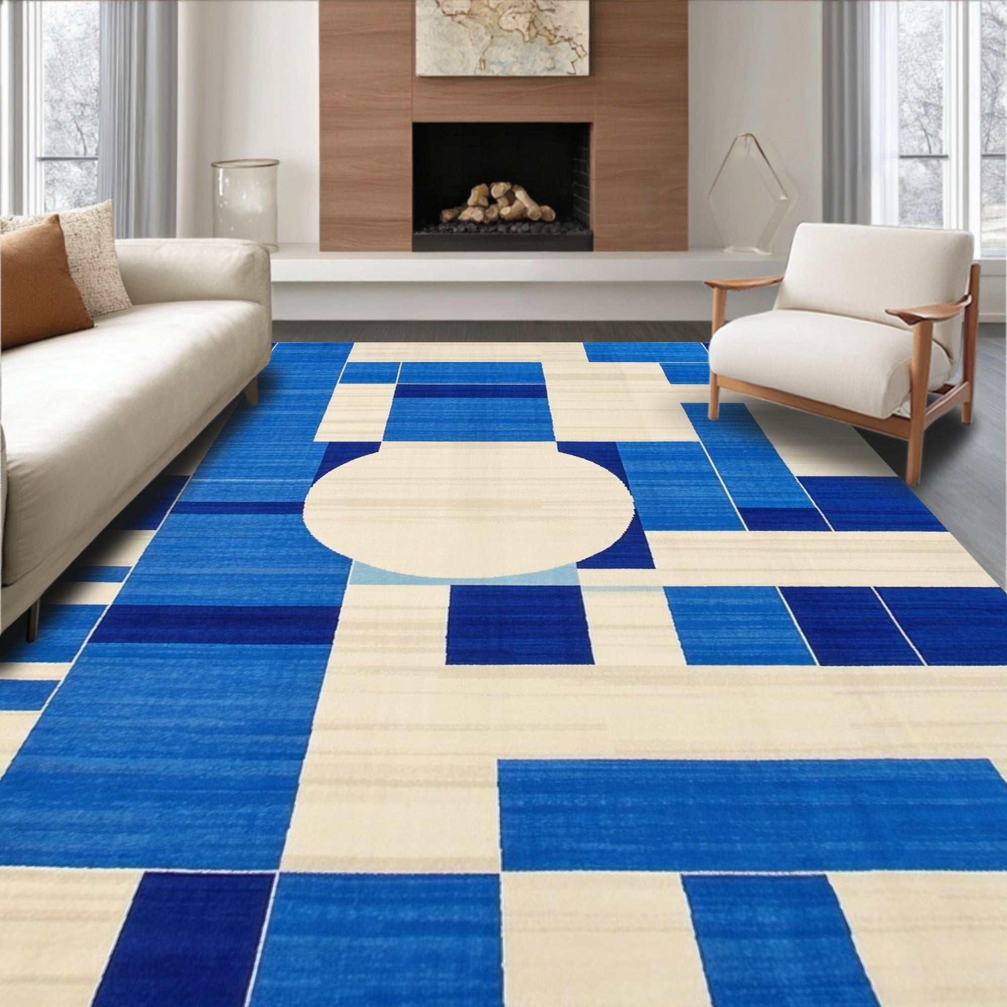 Geometric Blue Beige Area for(Blue)