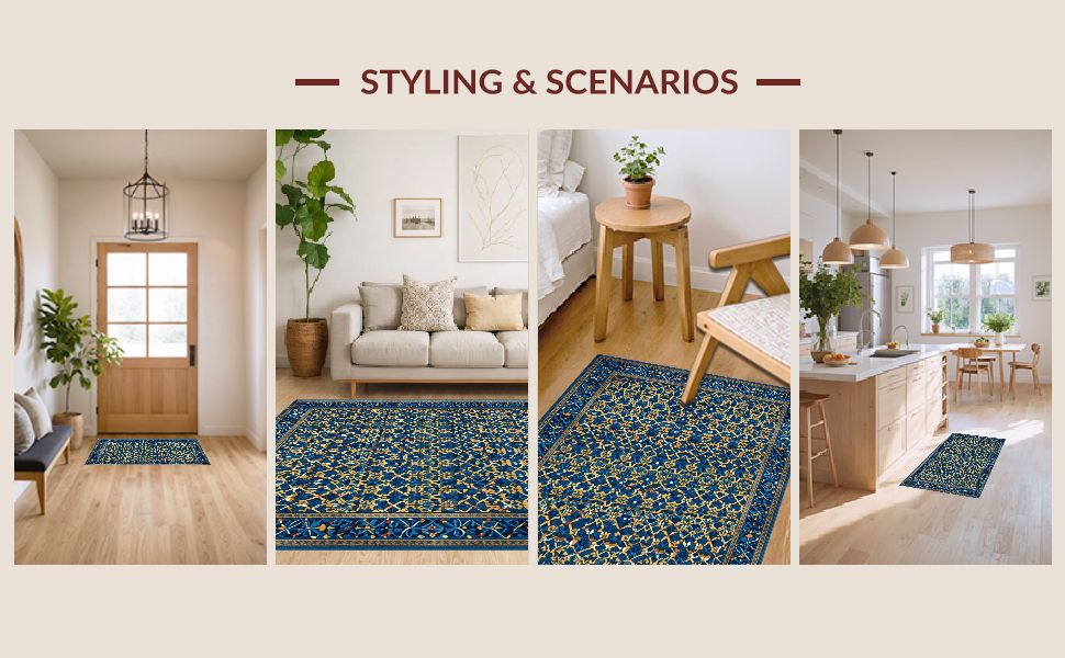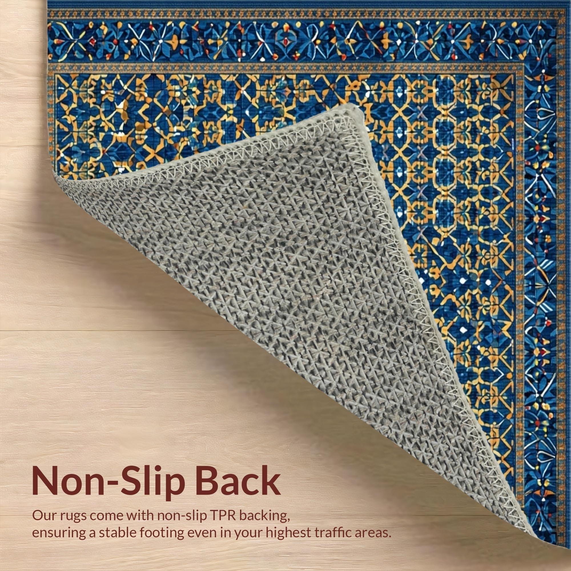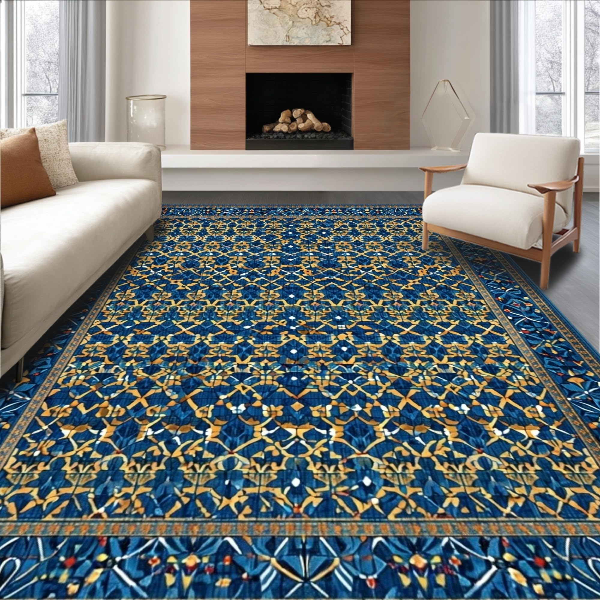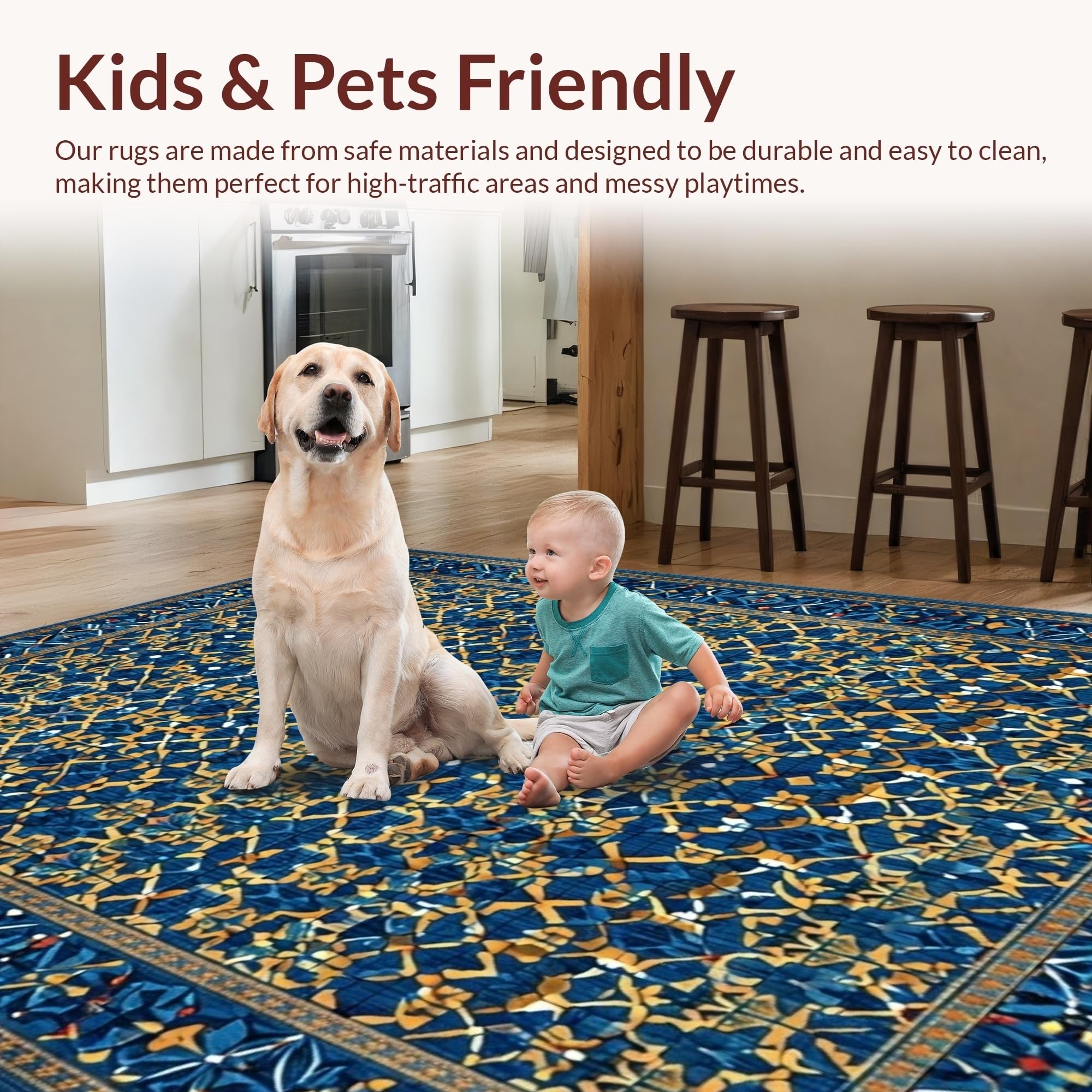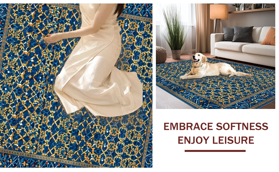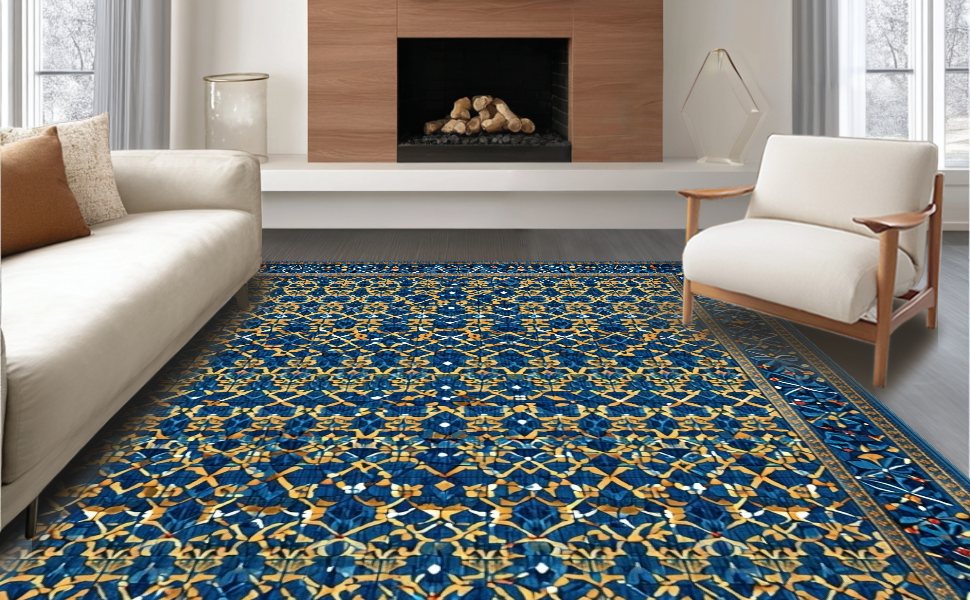Ultra Soft Area Rug, Non Slip, Stain Resistant, Washable Area Rugs for Living Room, Bedroom, Geometric Blue Earth Tone Harmony(Blue) Overview: