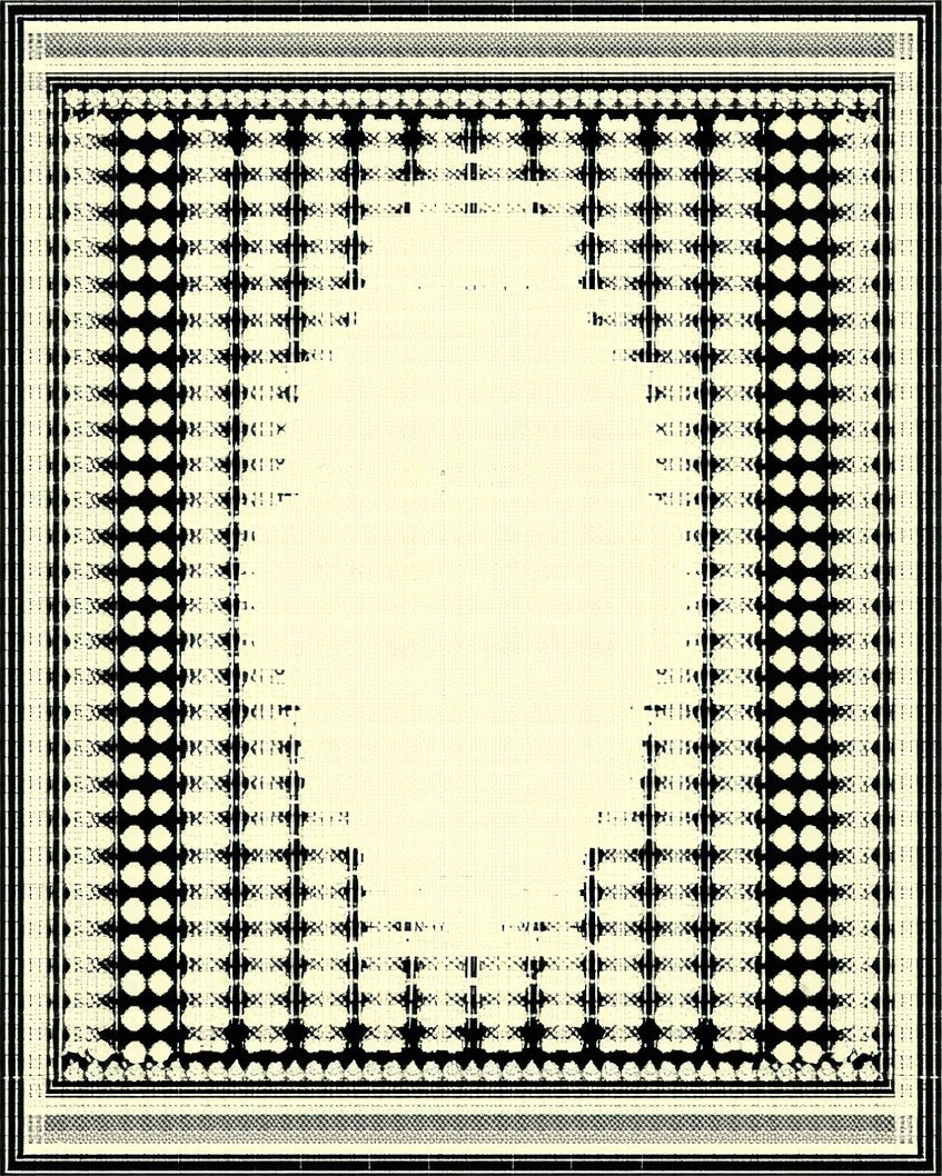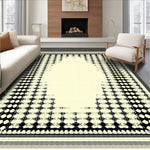 Geometric Border Area Cream and Black Modern Design Neutral Accent(Beige)