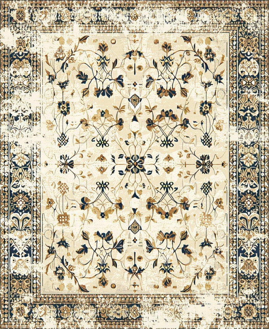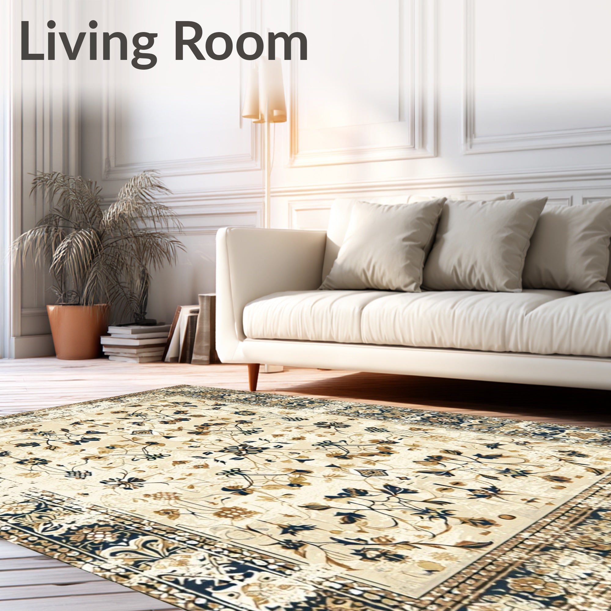 Ultra Soft Area Rug, Non Slip, Stain Resistant, Washable Area Rugs for Living Room, Bedroom, Geometric Botanical Symphony Area With Distressed Vintage Charm(Beige) Overview: