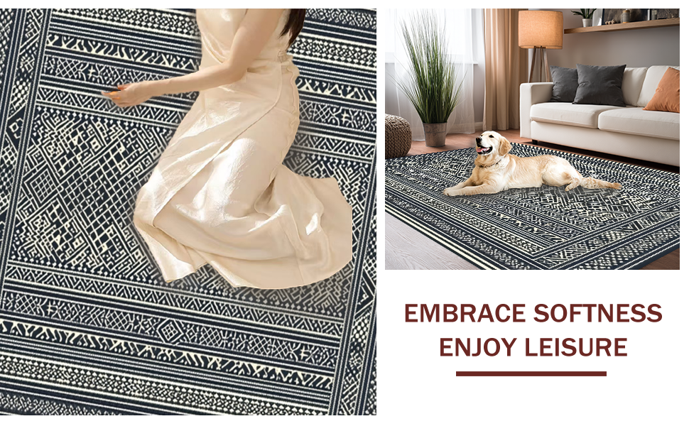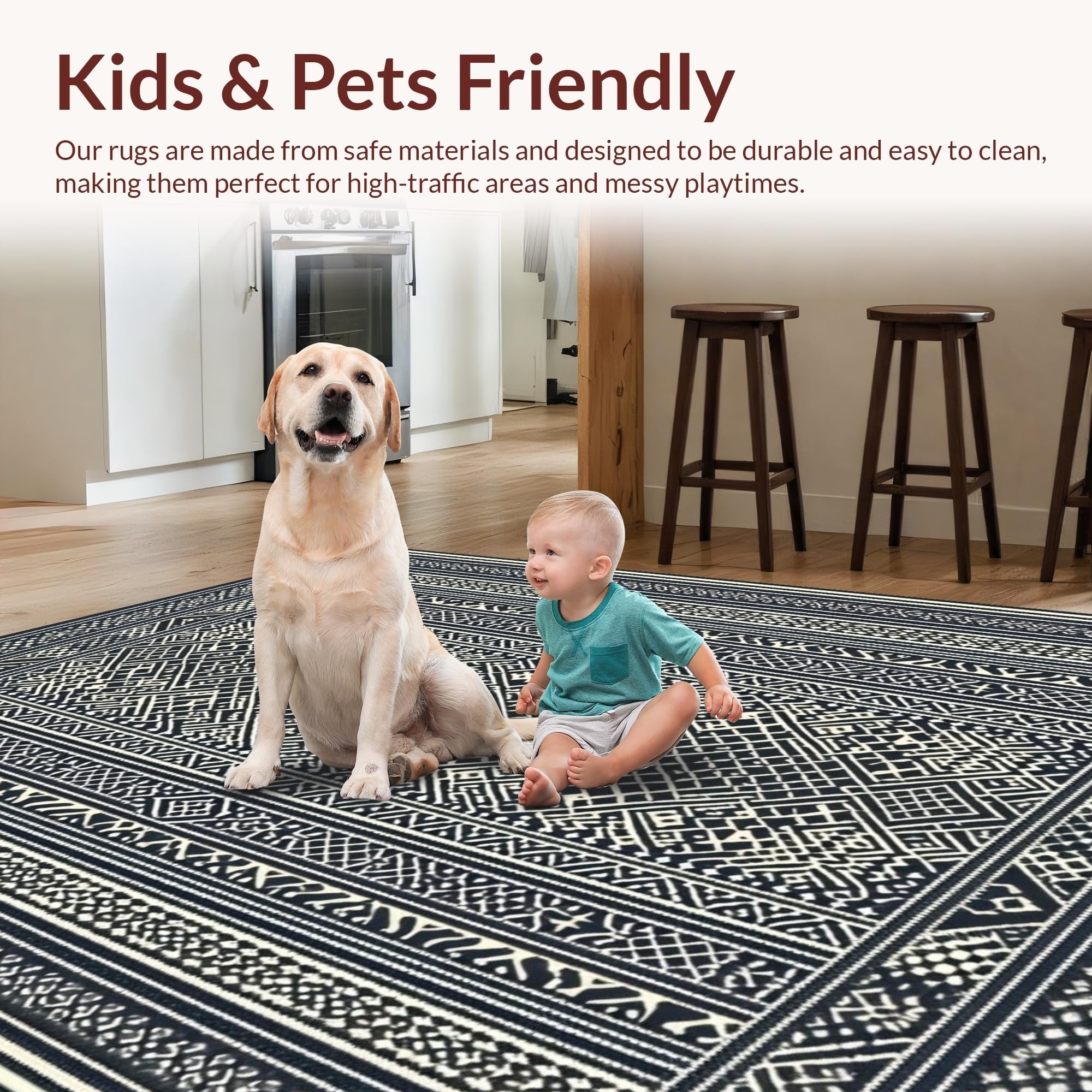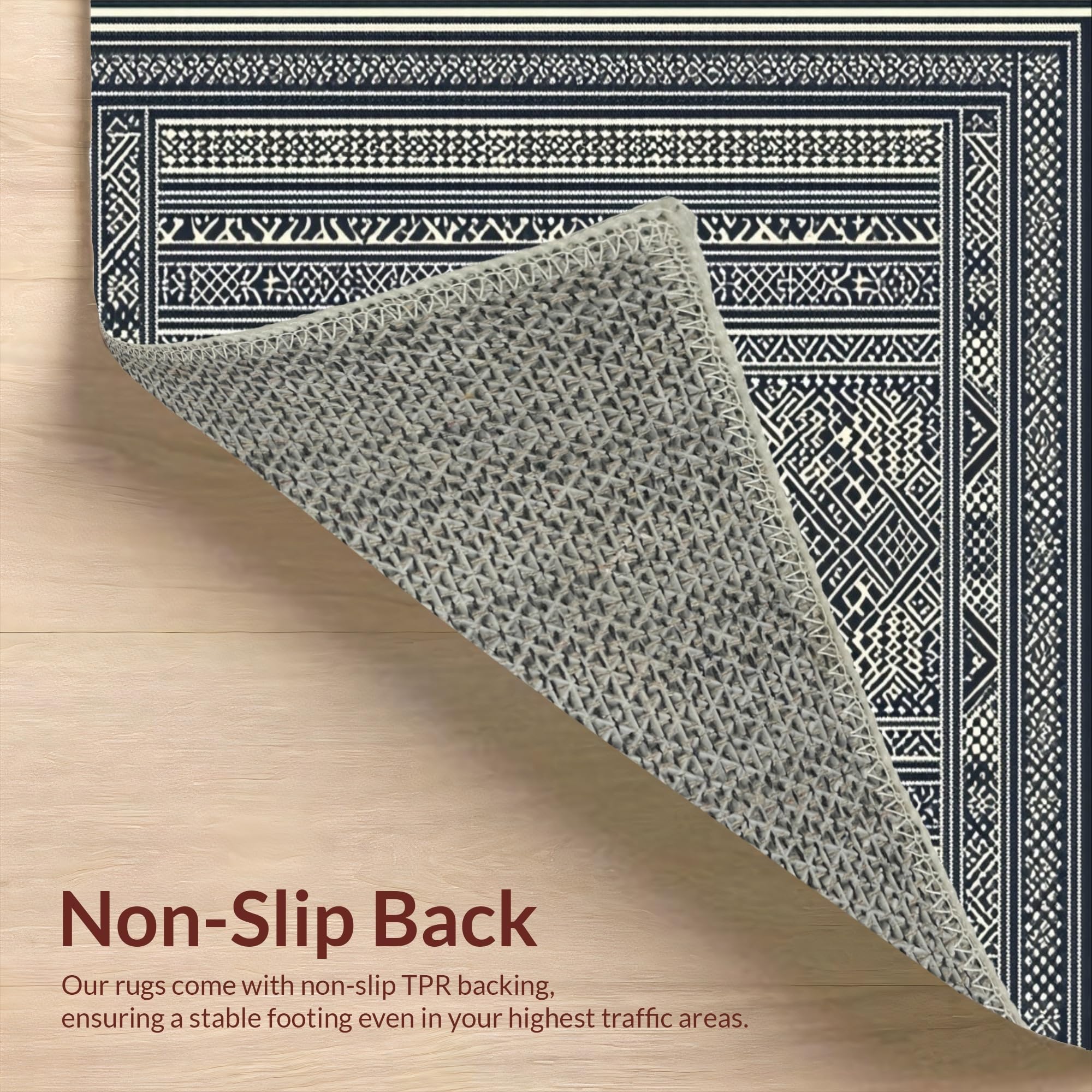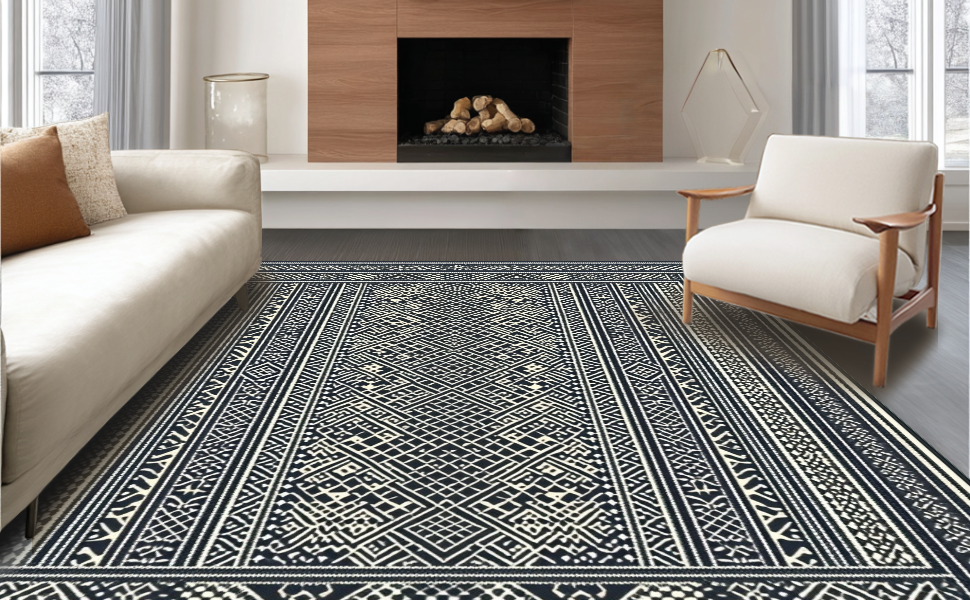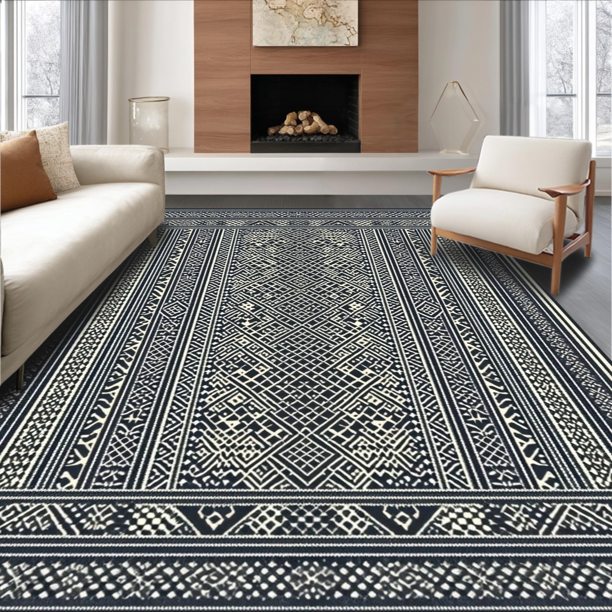 Ultra Soft Area Rug, Non Slip, Stain Resistant, Washable Area Rugs for Living Room, Bedroom, Geometric Dark Grey Elegance(Black) Overview: