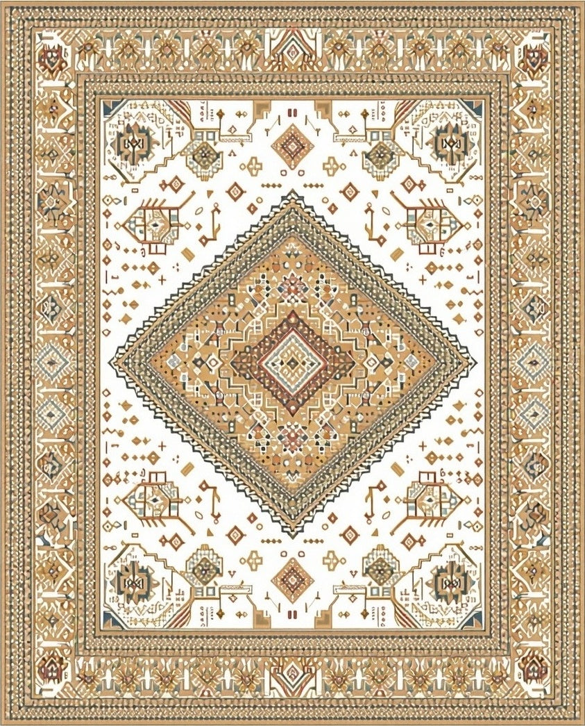 Geometric Diamond Medallion Area Earthy Toned Centerpiece(White)