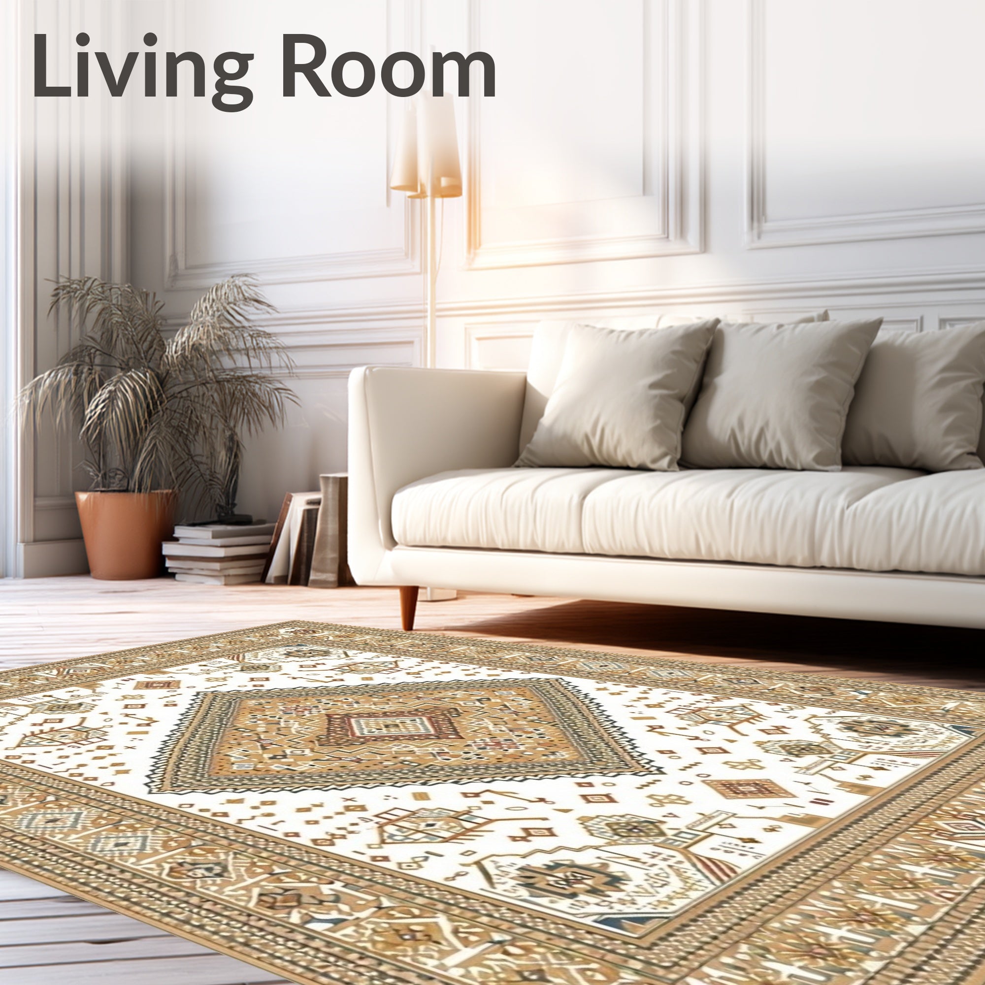 Ultra Soft Area Rug, Non Slip, Stain Resistant, Washable Area Rugs for Living Room, Bedroom, Geometric Diamond Medallion Area Earthy Toned Centerpiece(White) Overview: