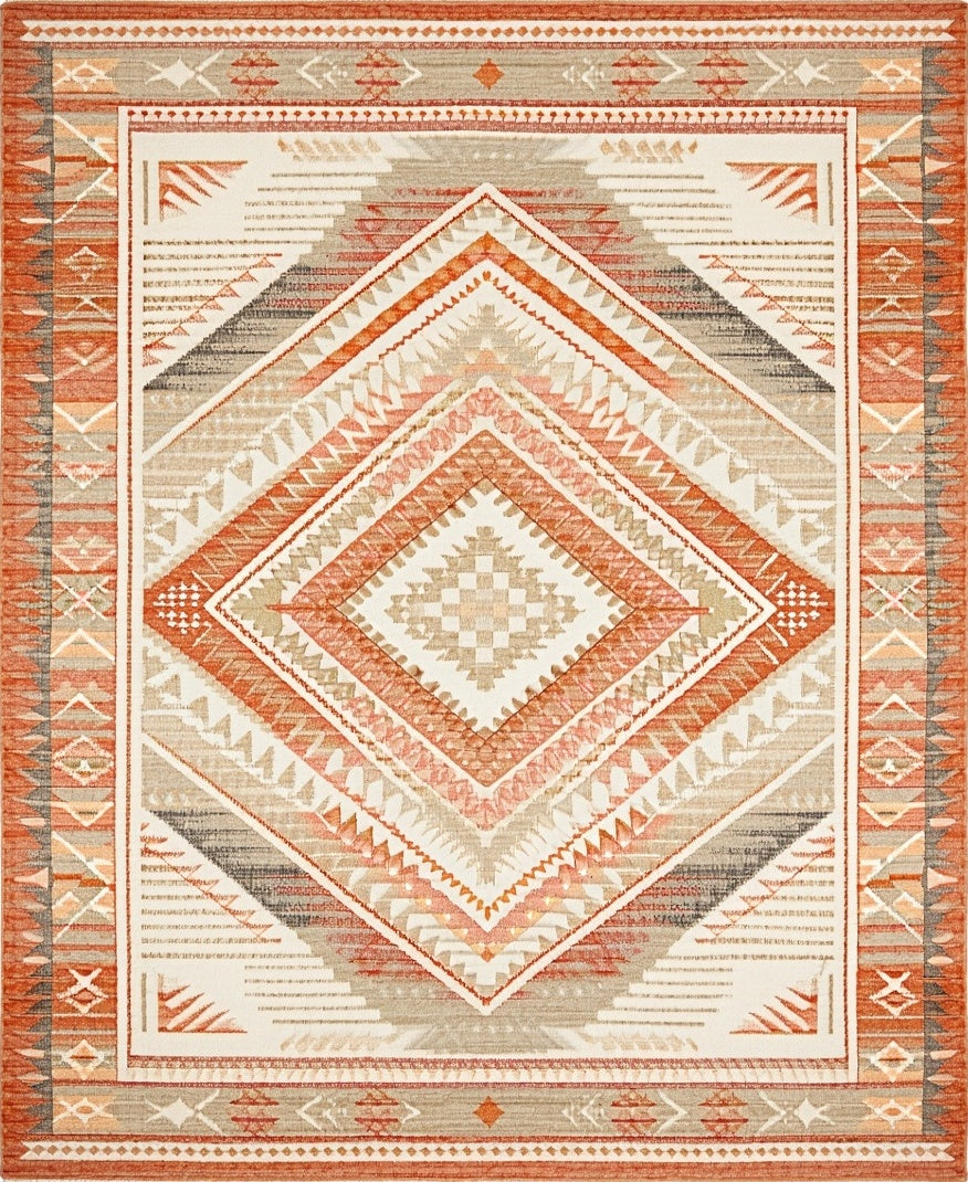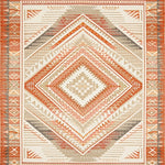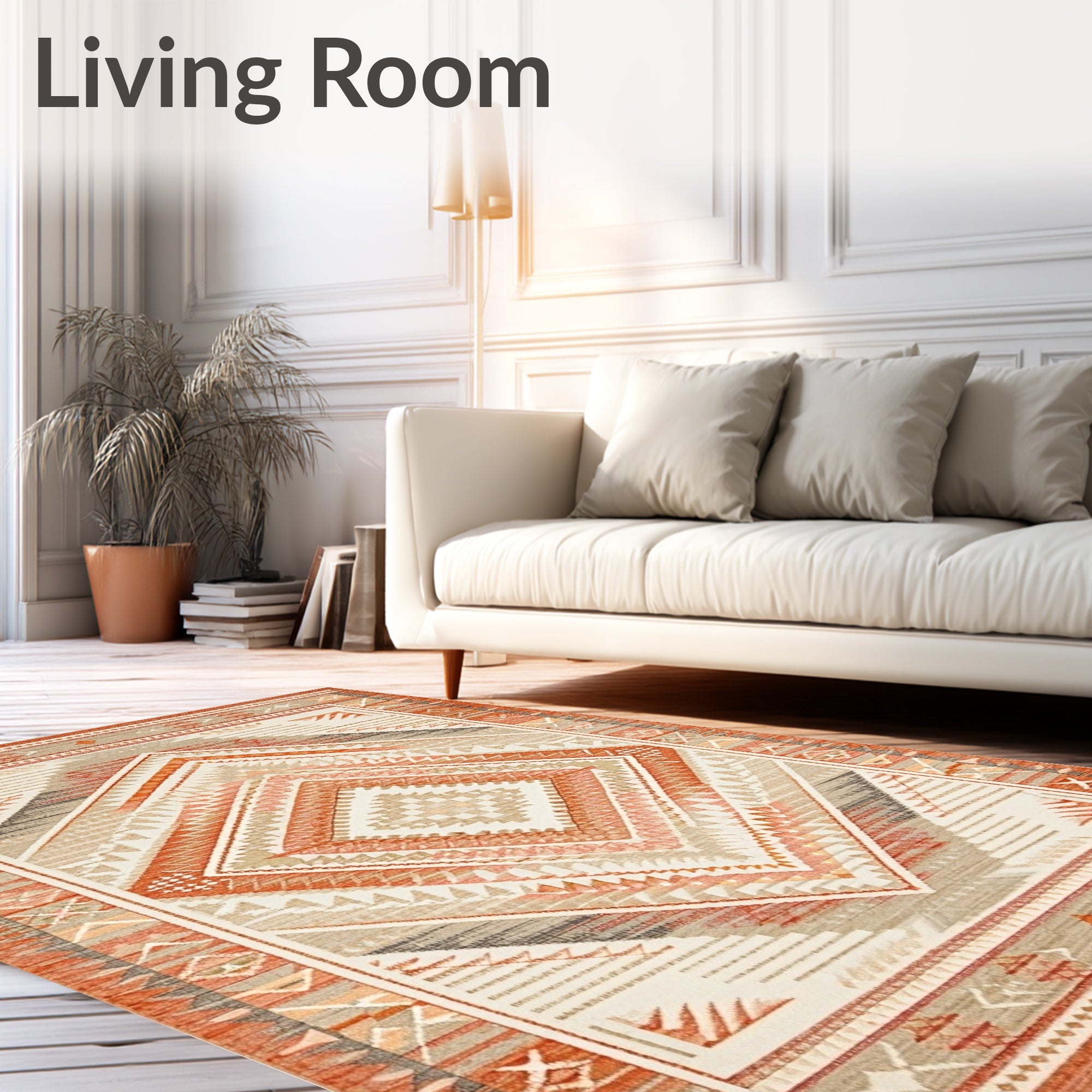 Ultra Soft Area Rug, Non Slip, Stain Resistant, Washable Area Rugs for Living Room, Bedroom, Geometric Diamond Stripe Earthy Beige Rich Terracotta(Orange) Overview:
