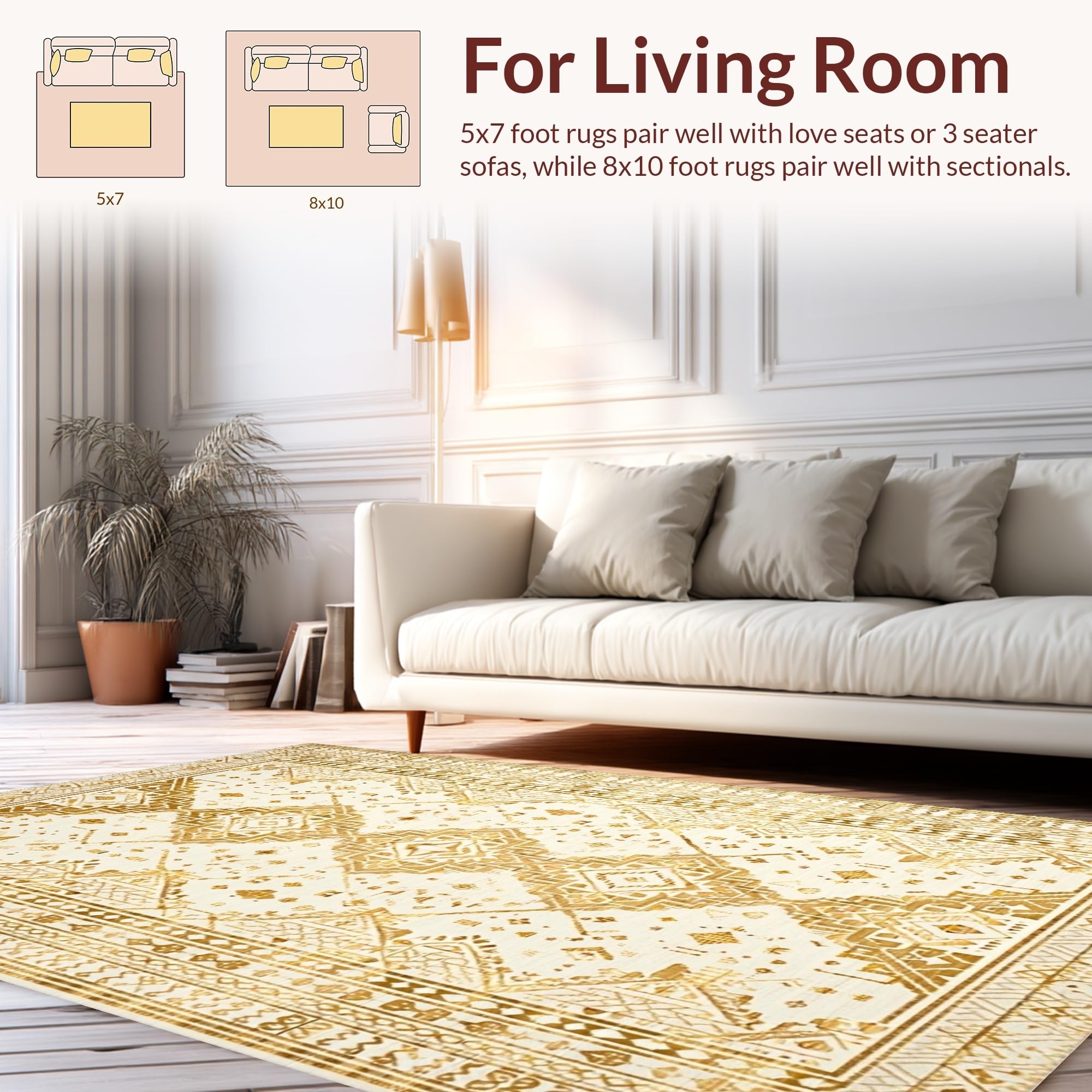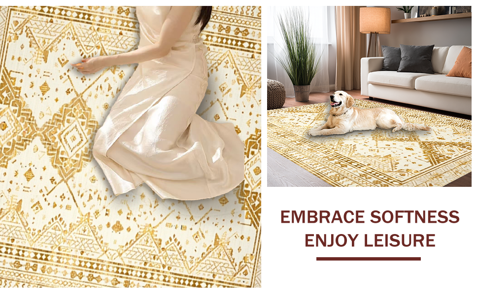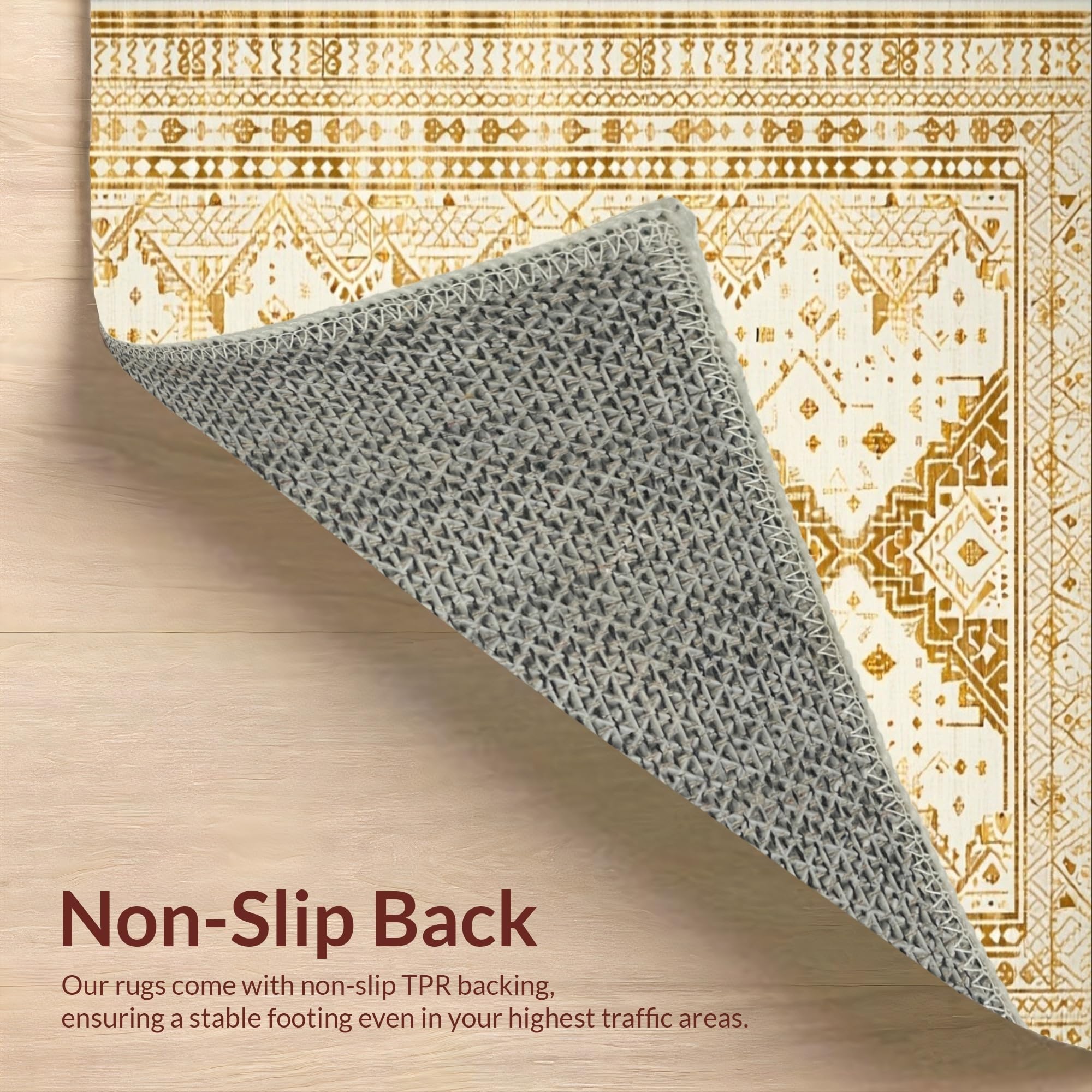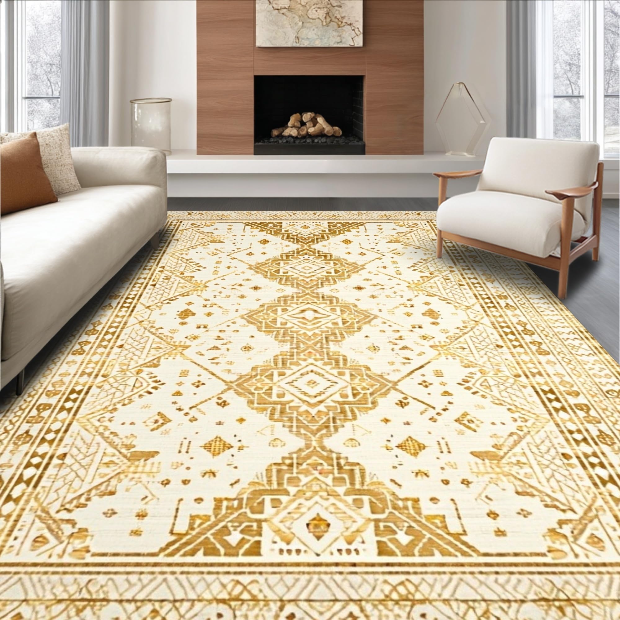 Ultra Soft Area Rug, Non Slip, Stain Resistant, Washable Area Rugs for Living Room, Bedroom, Geometric Earthy Tones Aesthetic(Beige) Overview: