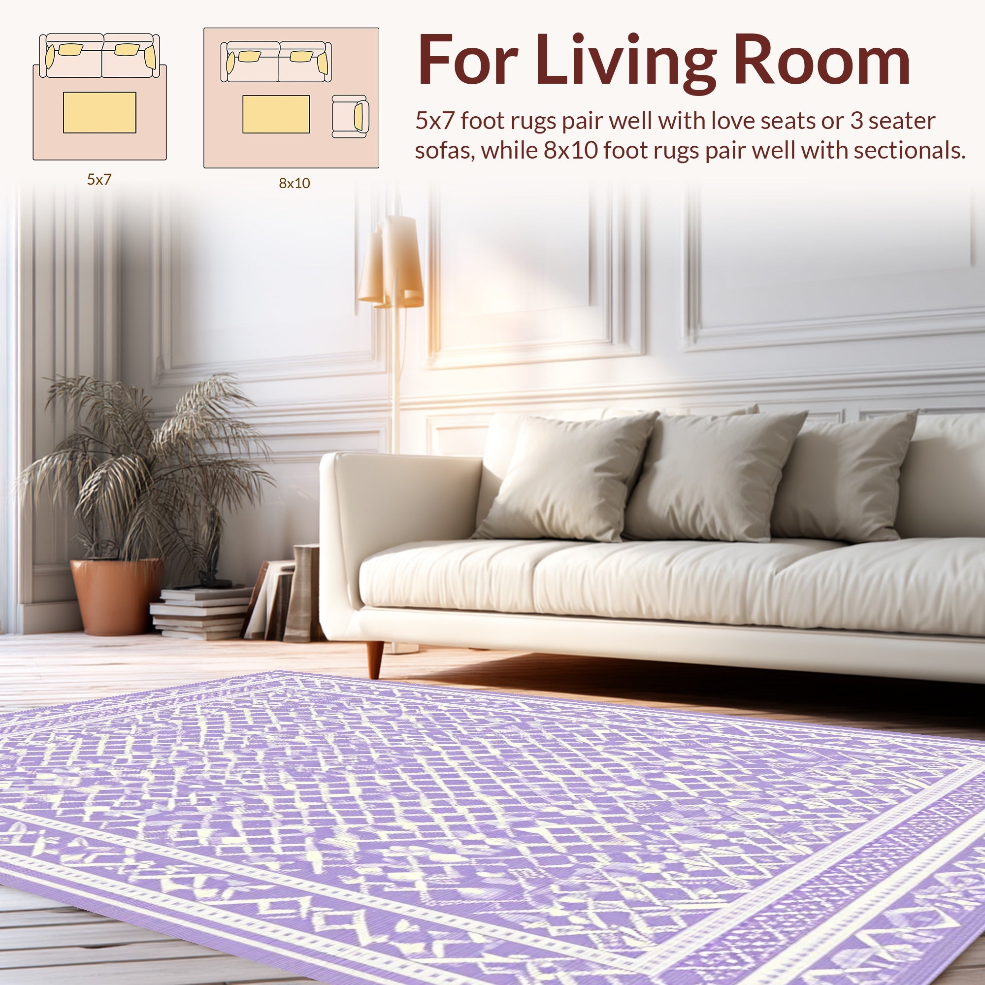 Ultra Soft Area Rug, Non Slip, Stain Resistant, Washable Area Rugs for Living Room, Bedroom, Geometric Interlocking Diamond with Elegant Symmetry(Purple) Overview: