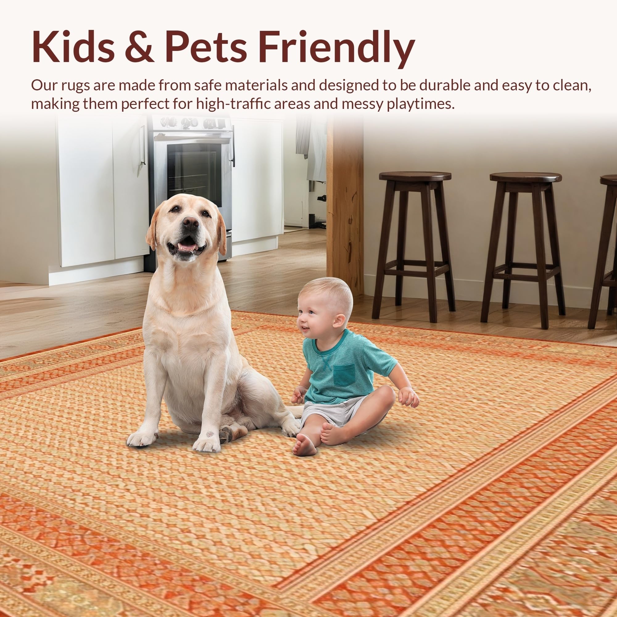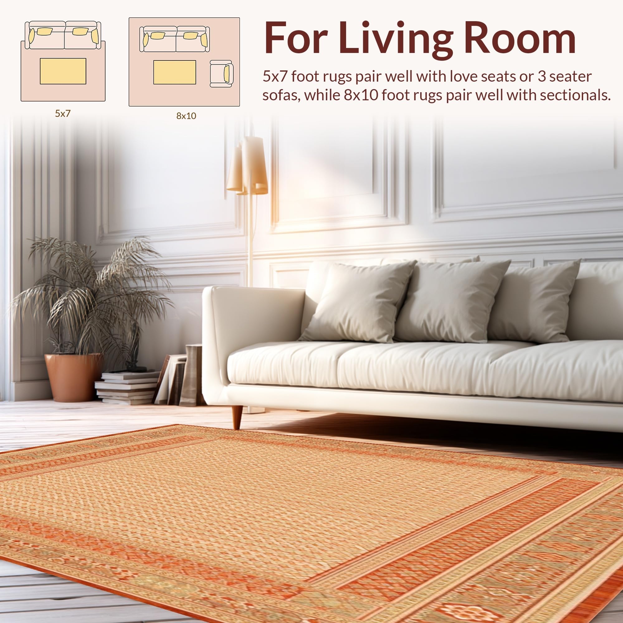Ultra Soft Area Rug, Non Slip, Stain Resistant, Washable Area Rugs for Living Room, Bedroom, Geometric Intrigue Area in Warm Terracotta and Beige Tones(Beige) Overview: