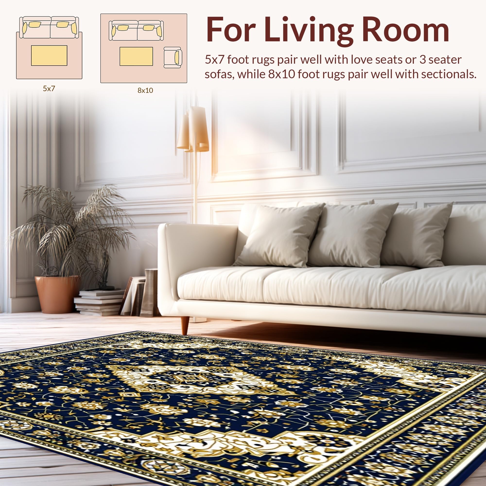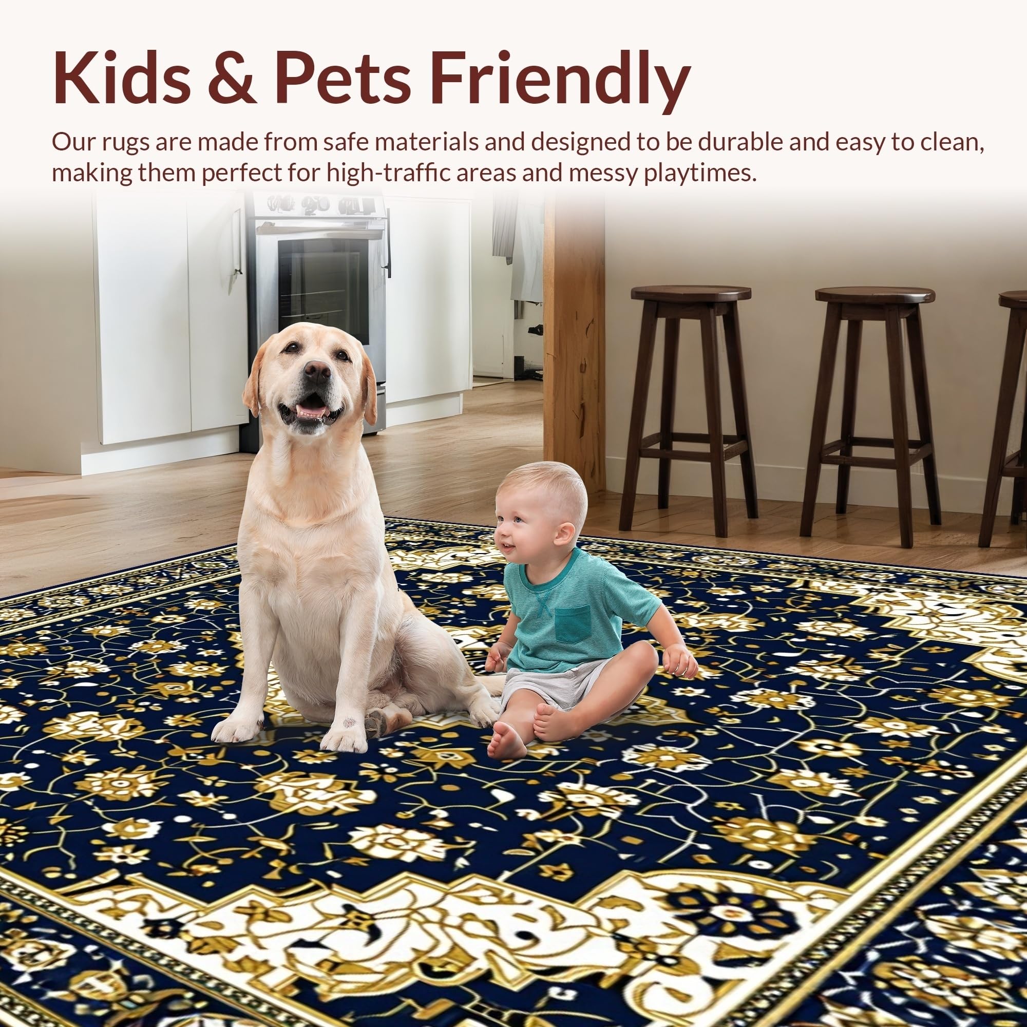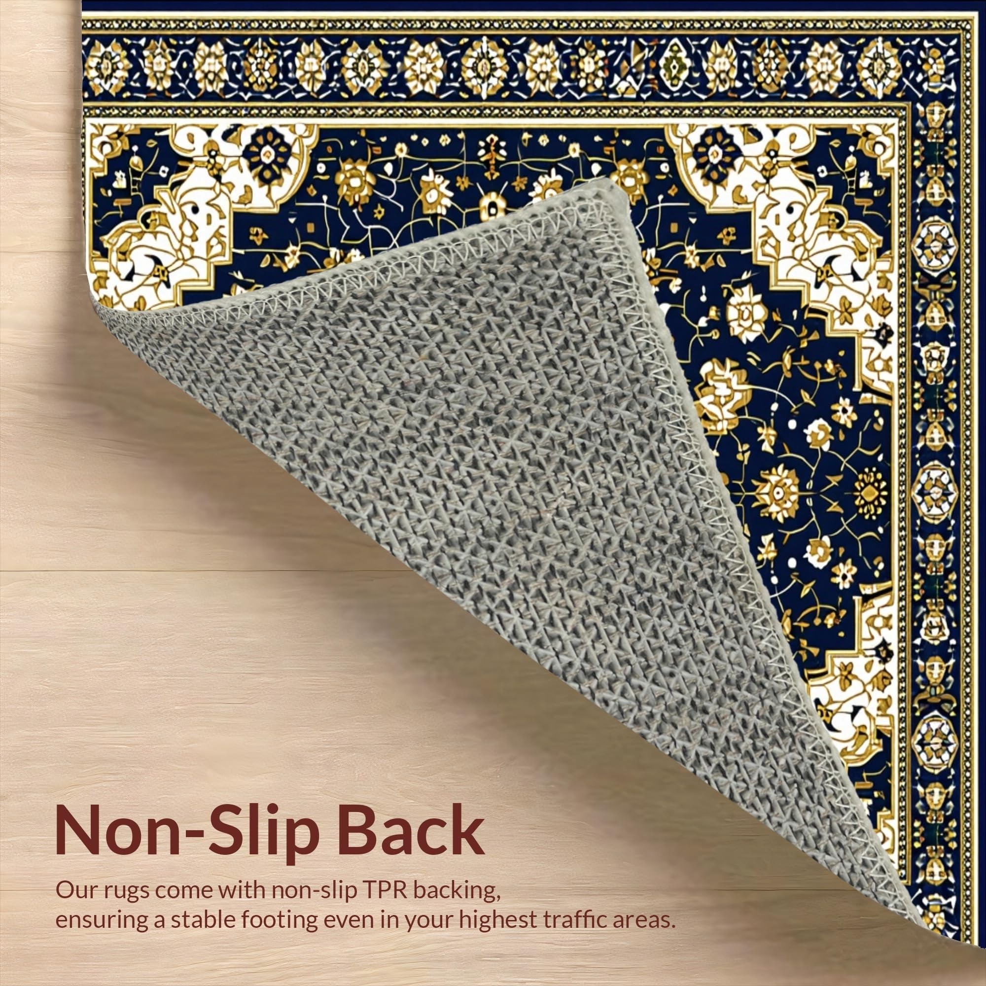 Ultra Soft Area Rug, Non Slip, Stain Resistant, Washable Area Rugs for Living Room, Bedroom, Geometric Medallion(Blue) Overview: