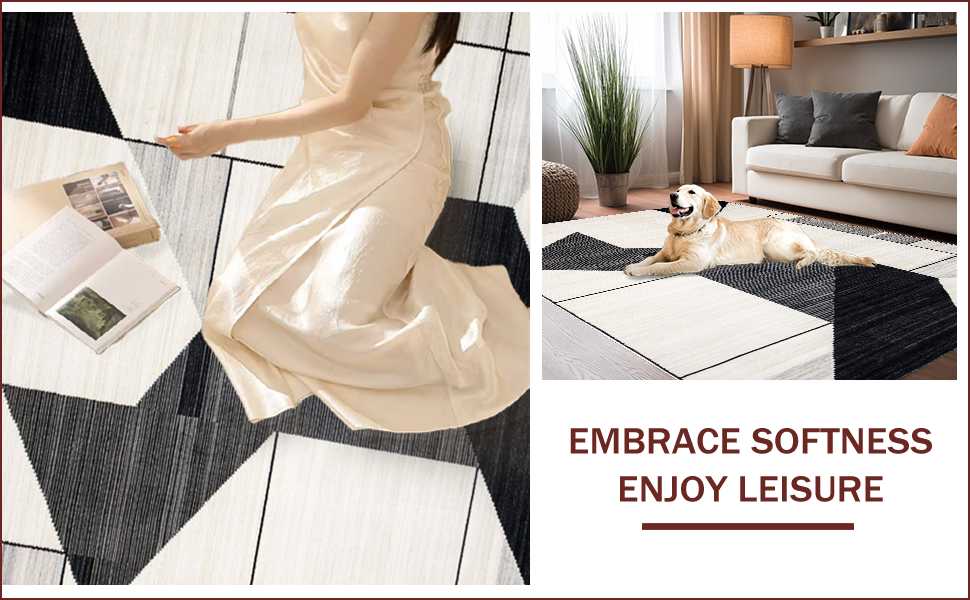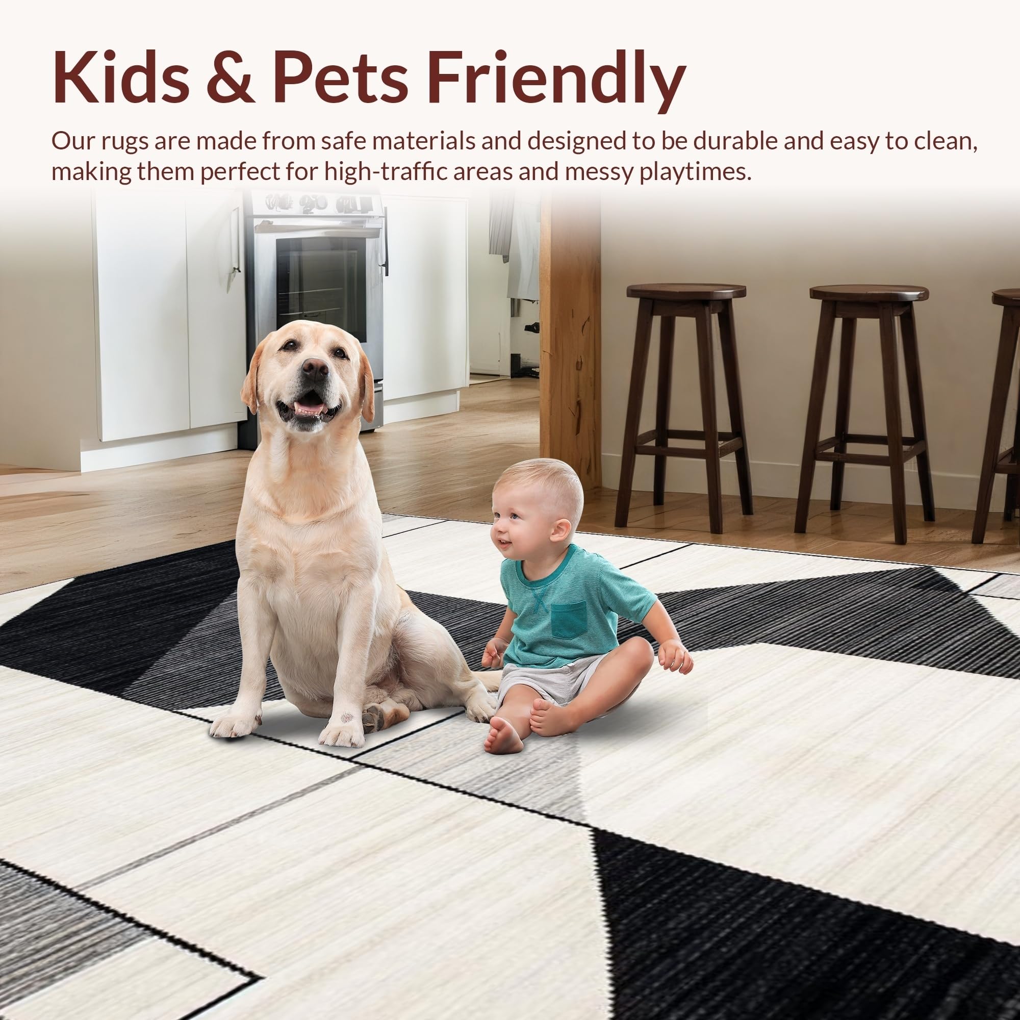 Ultra Soft Area Rug, Non Slip, Stain Resistant, Washable Area Rugs for Living Room, Bedroom, Geometric Monochrome Artistry(Black) Overview: