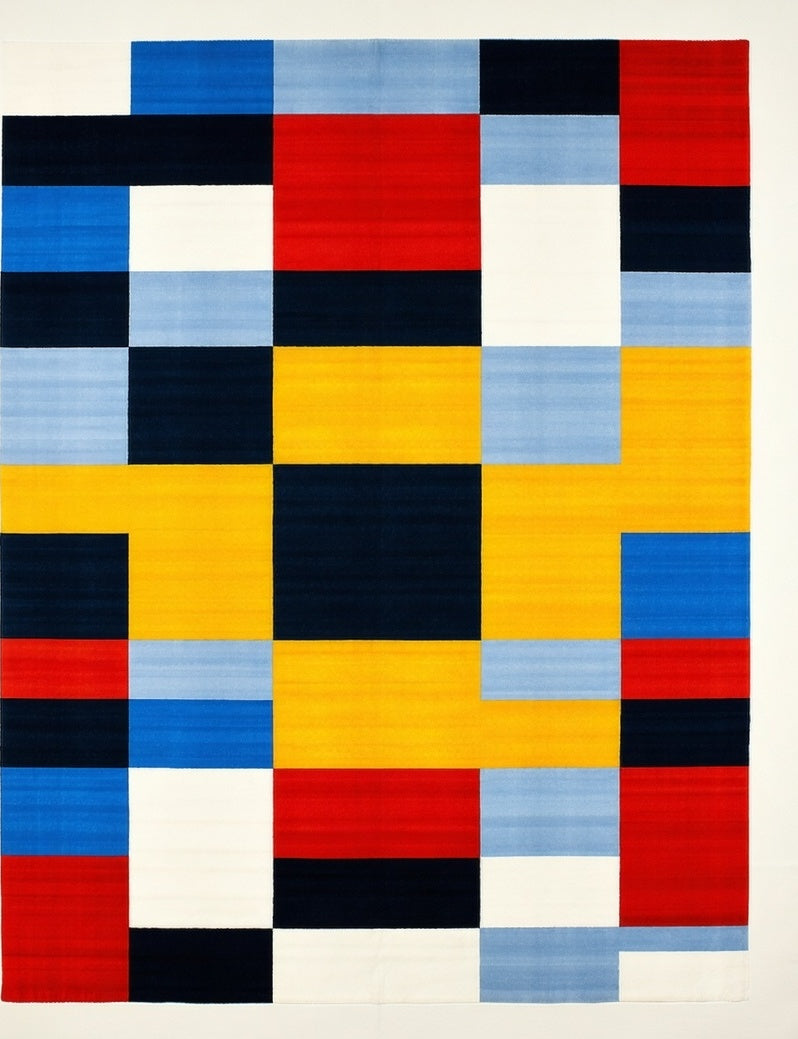 Flatwoven High Traffic Area Rug, Geometric Squares Primary Color Design, Non Slip, Stain Resistant, Washable Area Rugs for Living Room, Bedroom (Red) Overview: