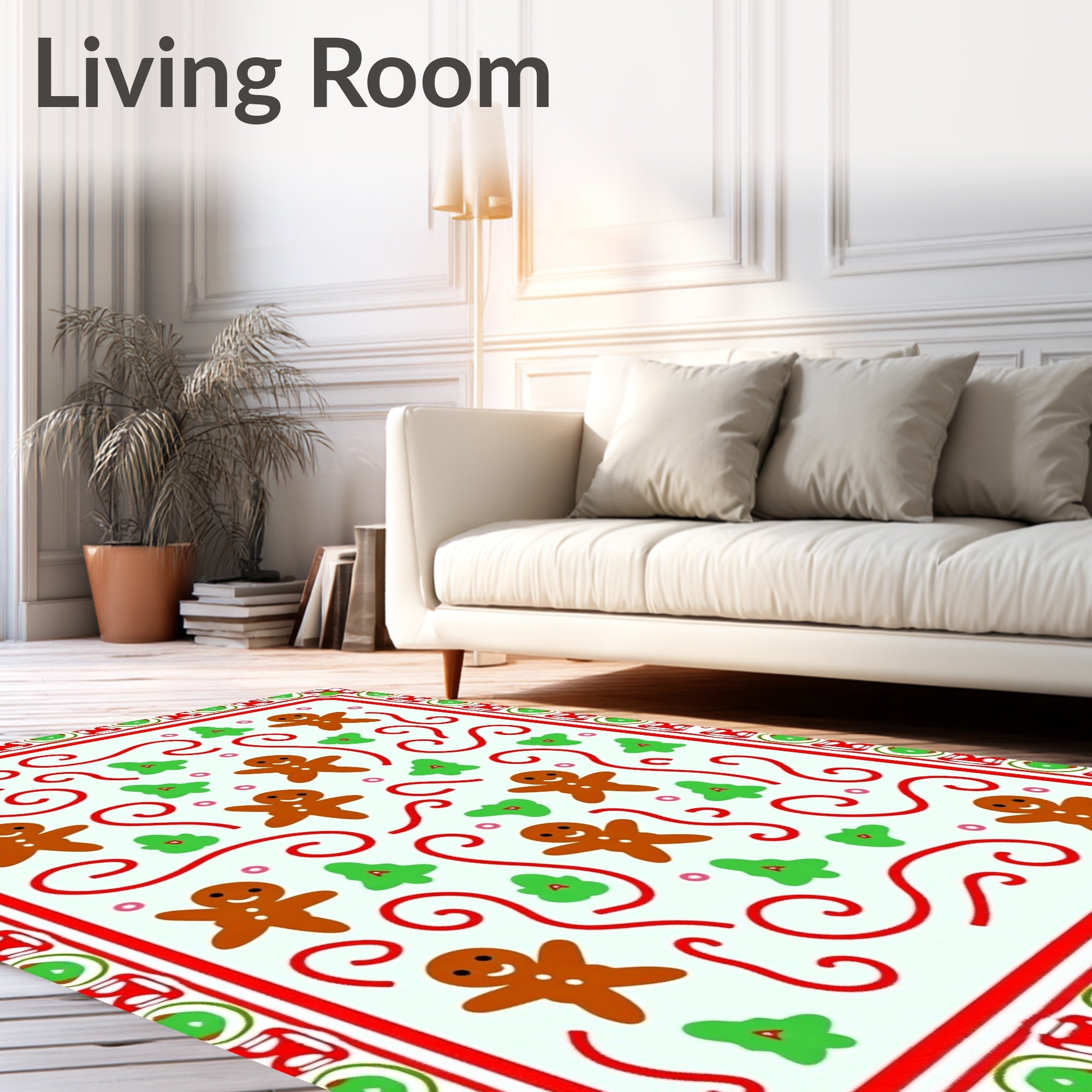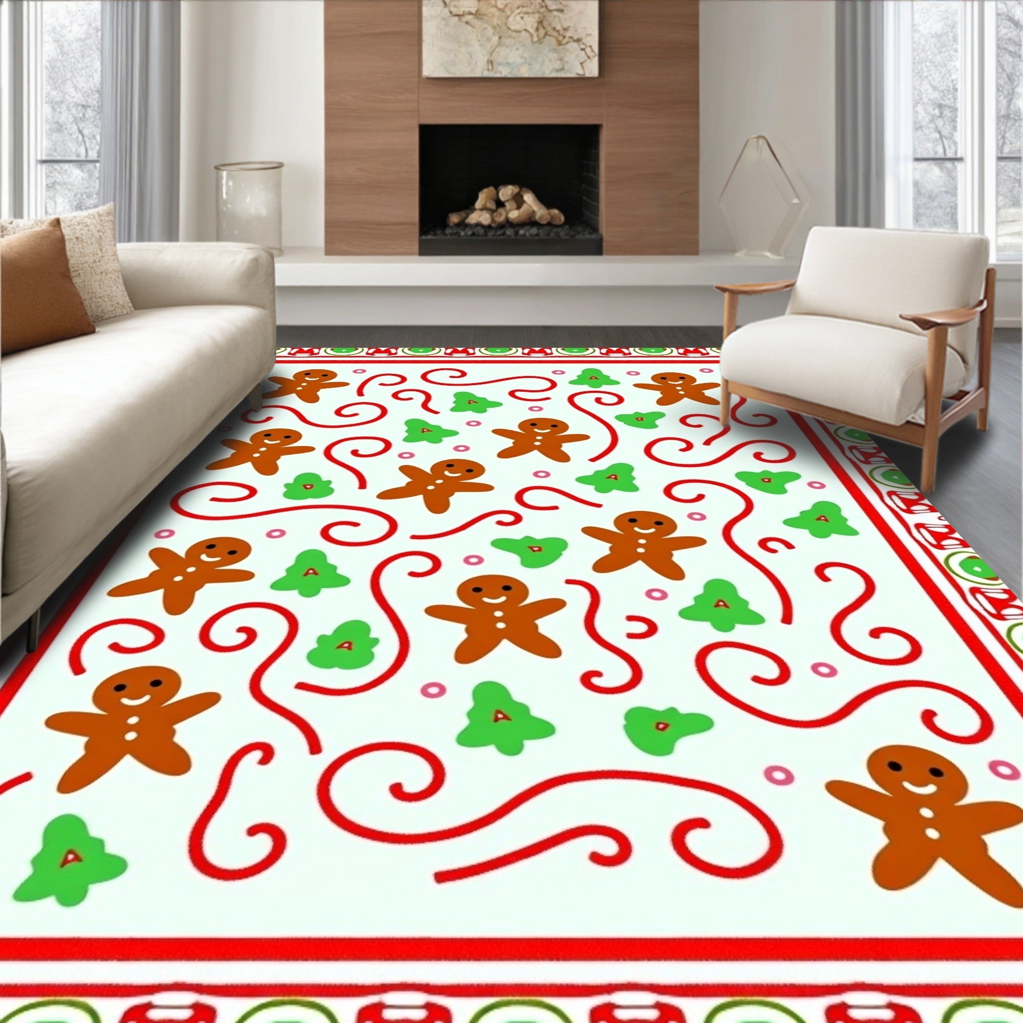 Flatwoven High Traffic Area Rug, Gingerbread Man Parade with Cane Swirls Festive, Non Slip, Stain Resistant, Washable Area Rugs for Living Room, Bedroom (Brown) Overview: