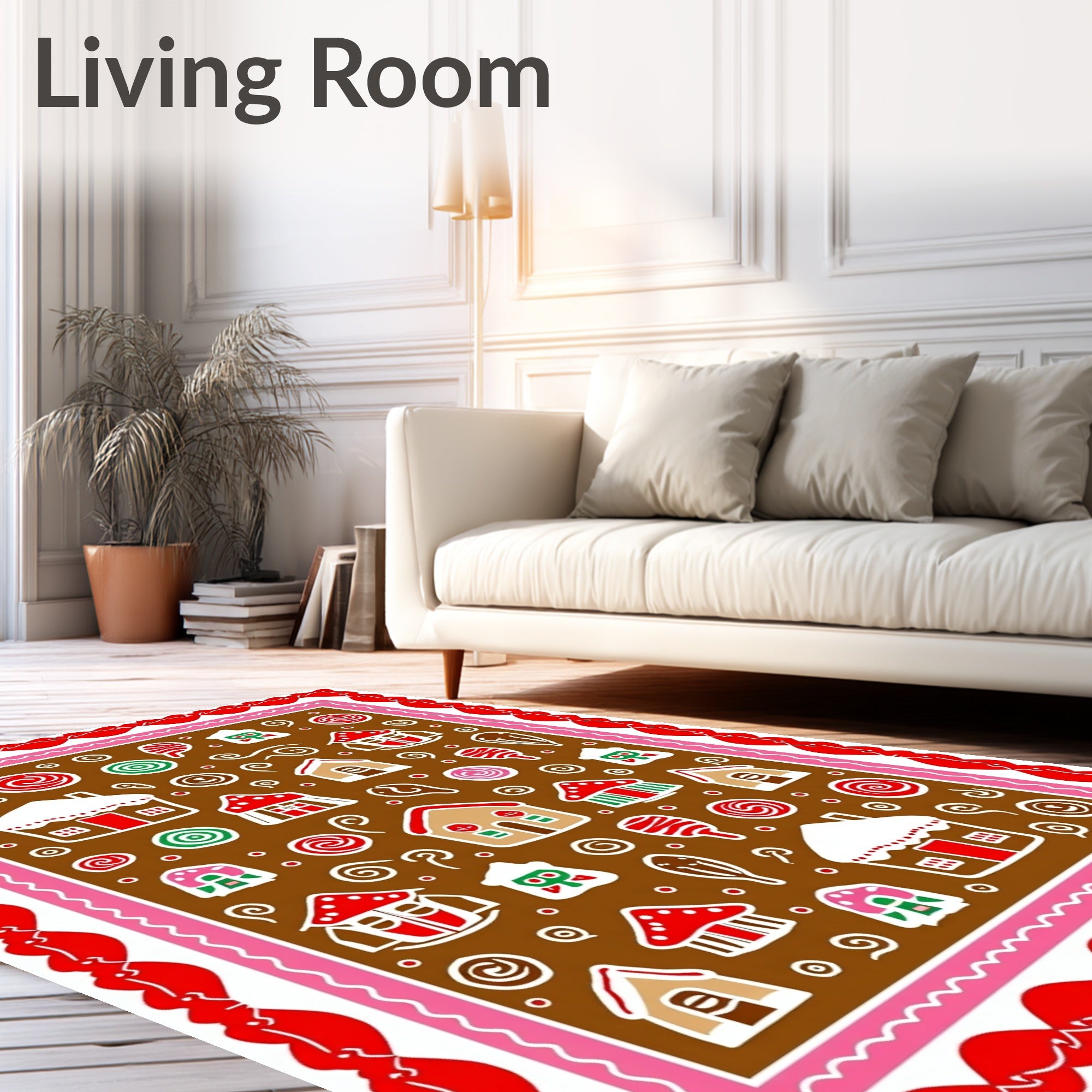 Ultra Soft Area Rug, Non Slip, Stain Resistant, Washable Area Rugs for Living Room, Bedroom, Gingerbread Village Whimsical Cookie House Pathway(Brown) Overview: