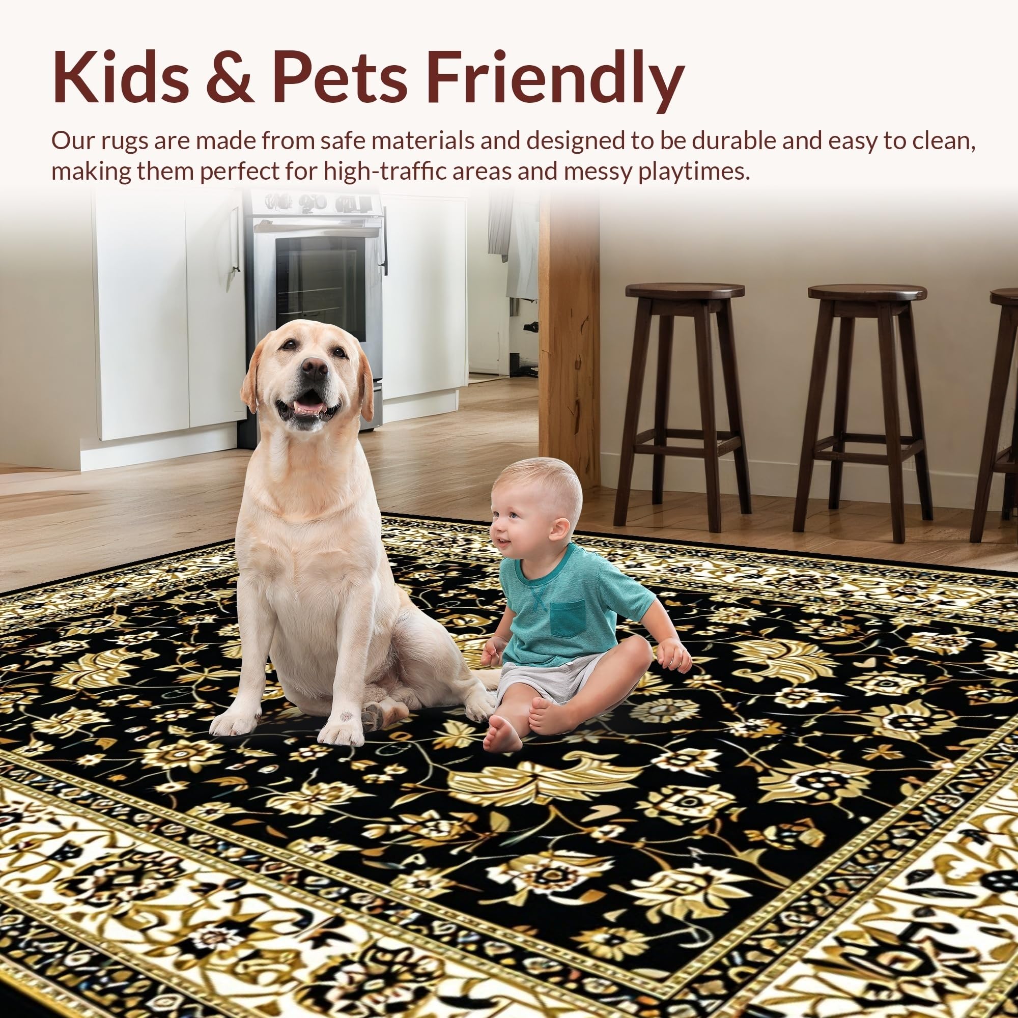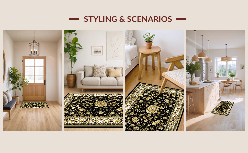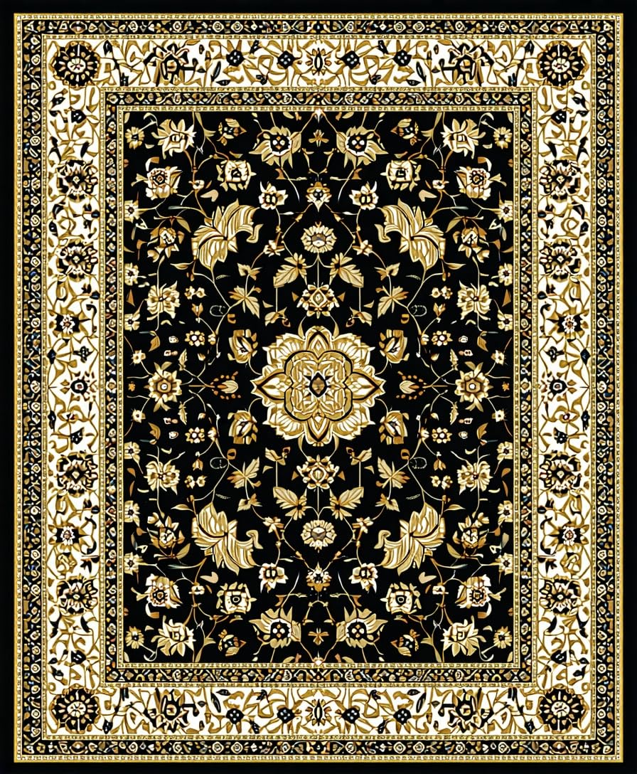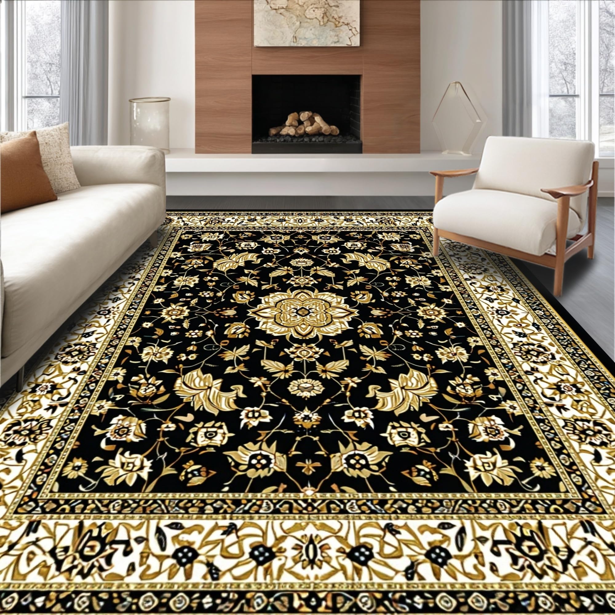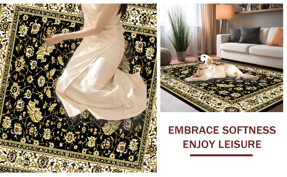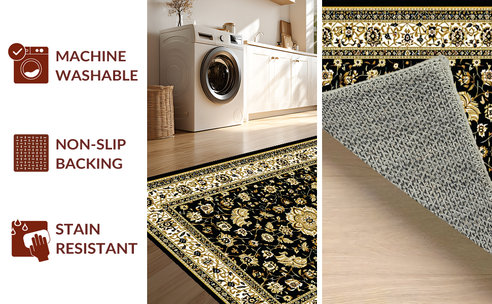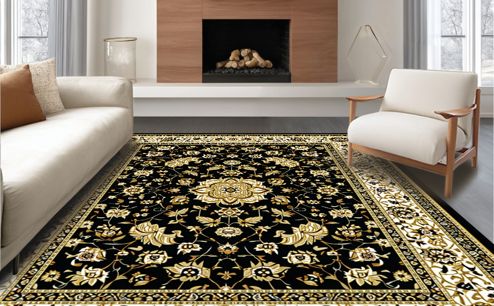 Ultra Soft Area Rug, Non Slip, Stain Resistant, Washable Area Rugs for Living Room, Bedroom, Glamorous Vintage Geometric Style(Black) Overview: