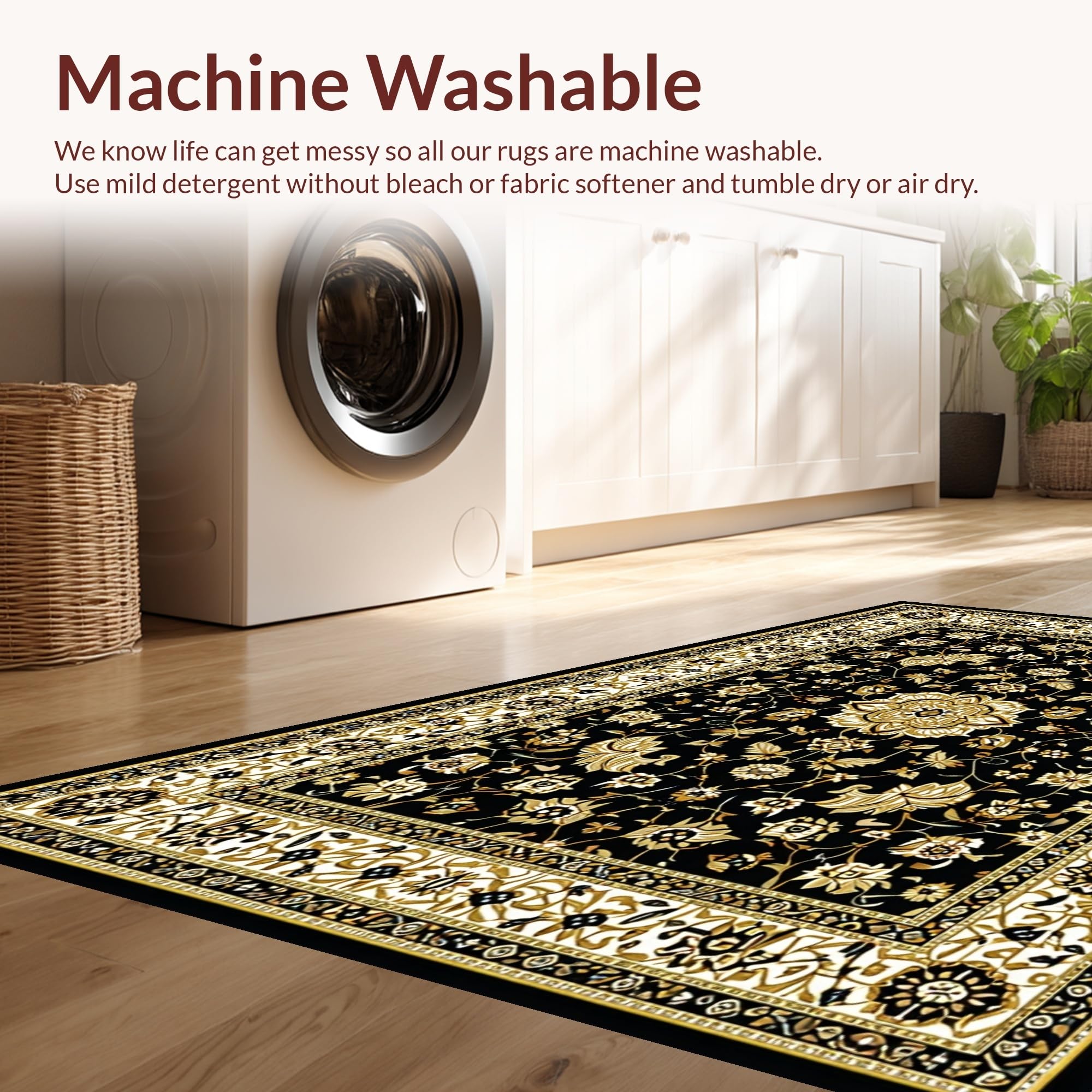 - Machine Washable: Our rugs can be easily thrown in the wash machine.