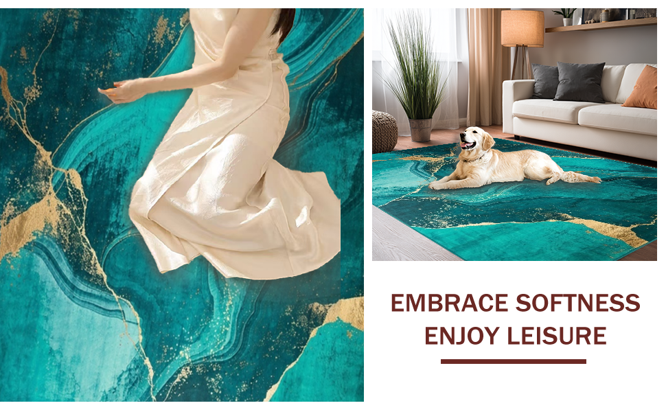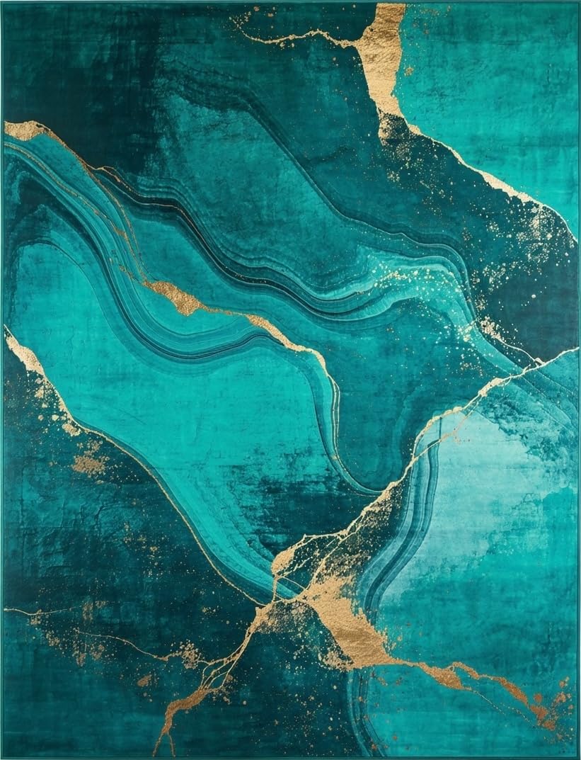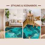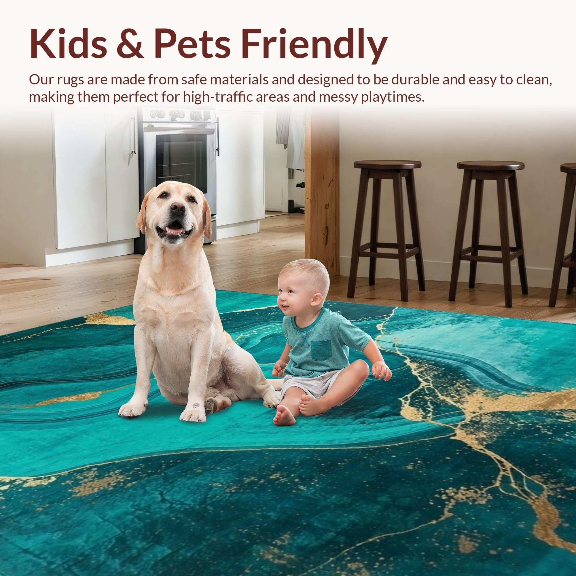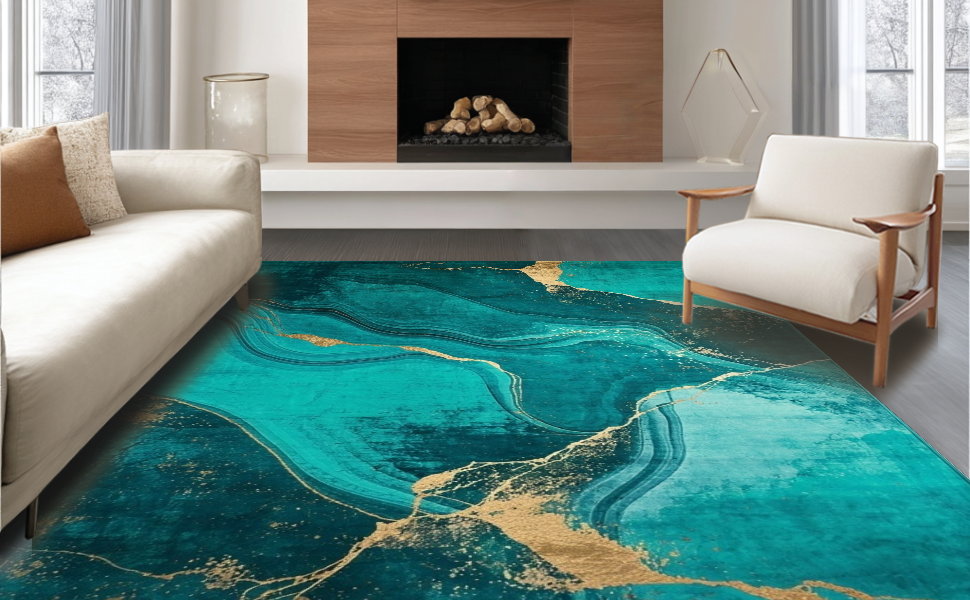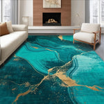 Ultra Soft Area Rug, Non Slip, Stain Resistant, Washable Area Rugs for Living Room, Bedroom, Glistening Gold Crack Artistry(Blue) Overview: