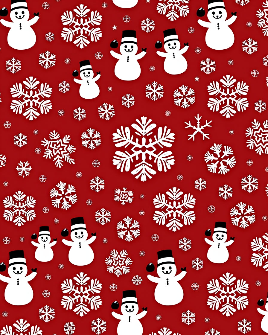 Glittering Snowflake Floor with Jolly Winter Character Motifs(Red)