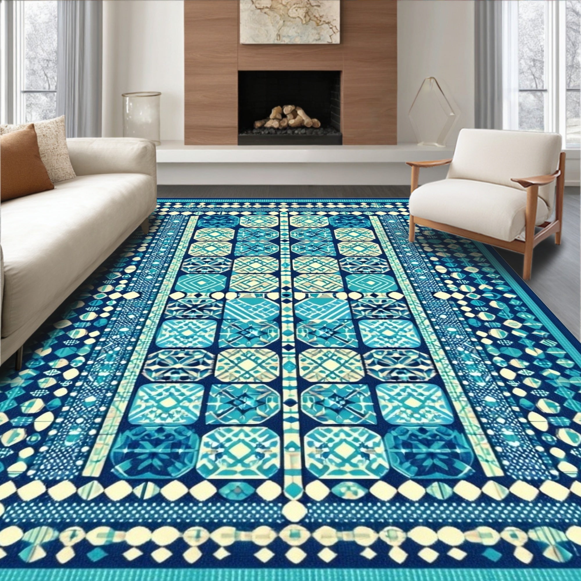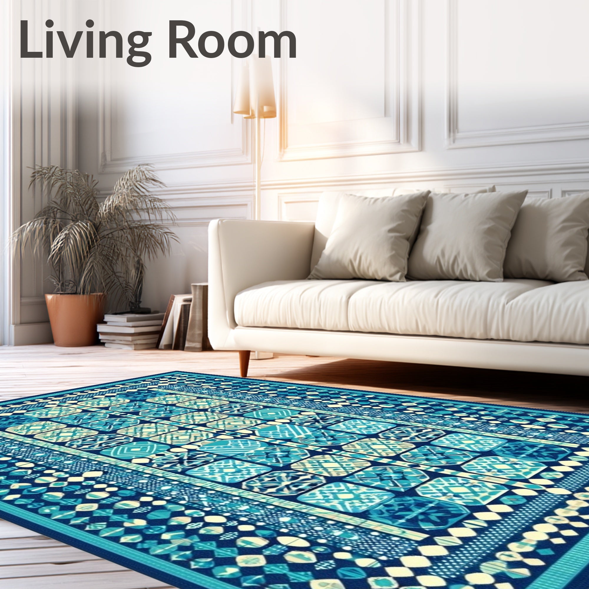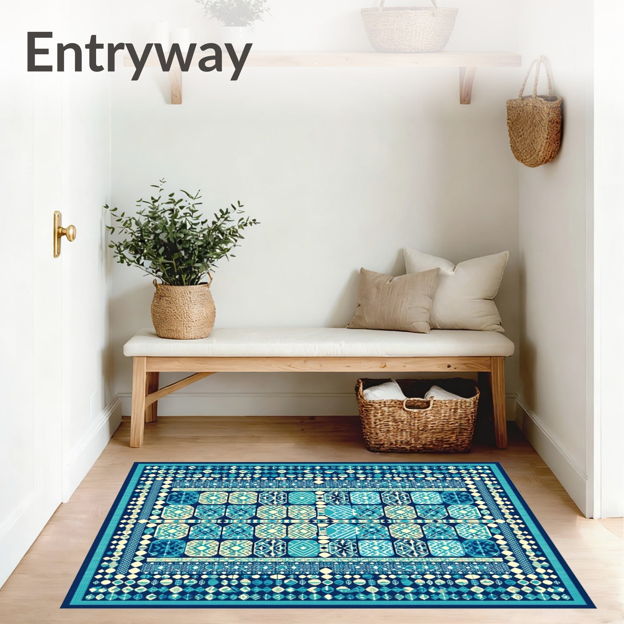 Ultra Soft Area Rug, Non Slip, Stain Resistant, Washable Area Rugs for Living Room, Bedroom, Global Gathering(Blue) Overview: