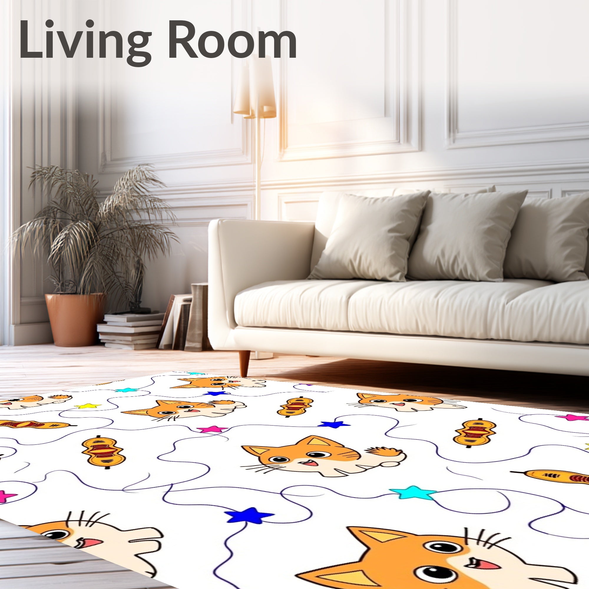 Ultra Soft Area Rug, Non Slip, Stain Resistant, Washable Area Rugs for Living Room, Bedroom, Glowing Gourmet Feline Tapestry With Sparkling Celebration Bulbs(Orange) Overview: