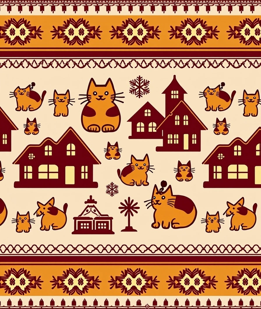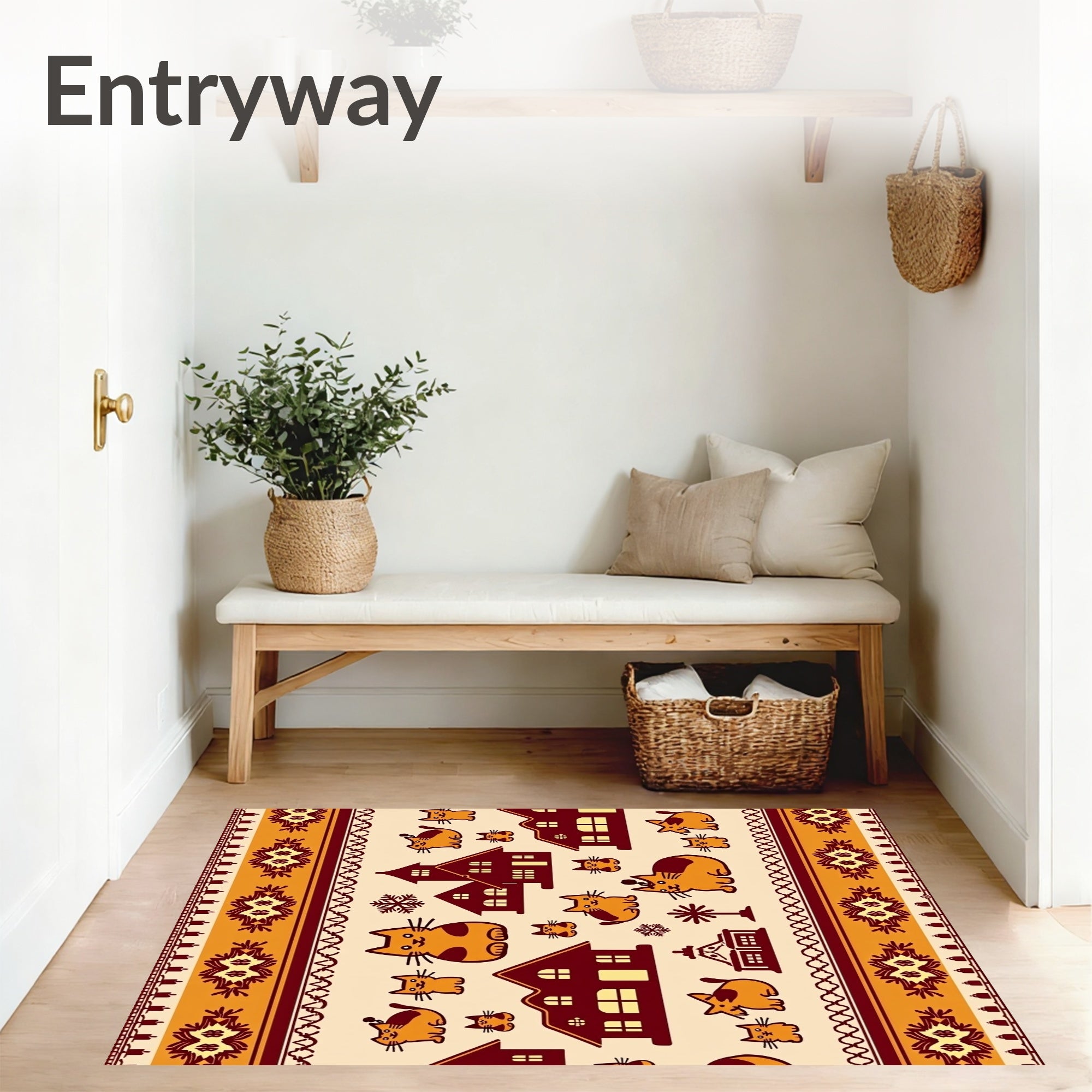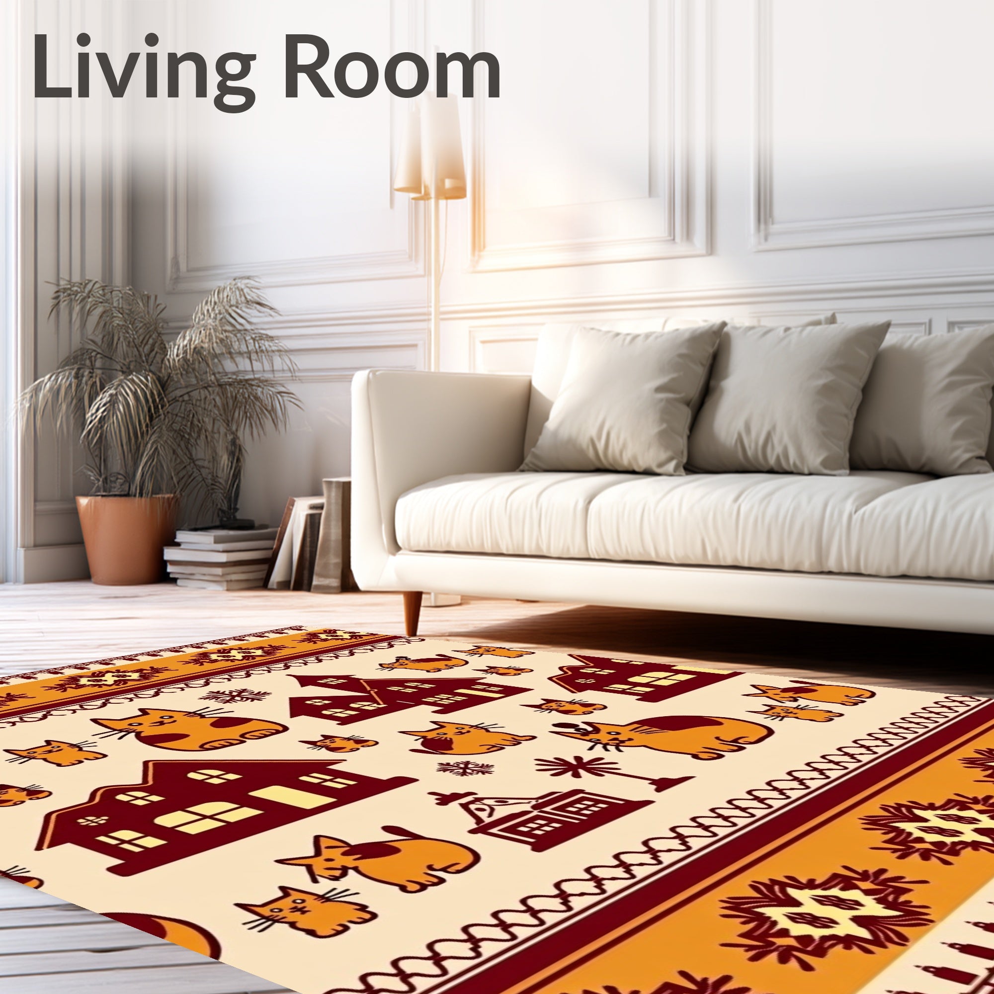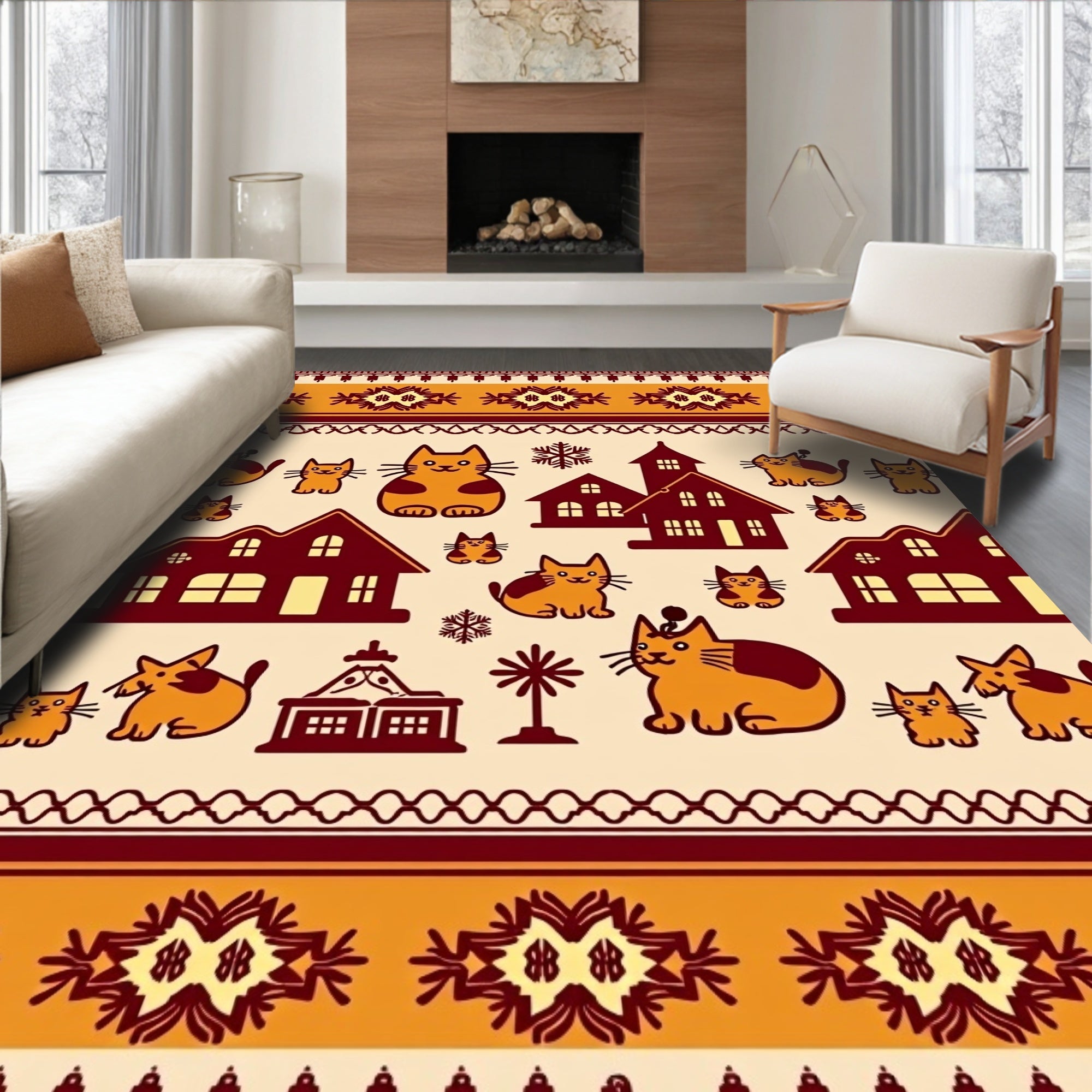 Ultra Soft Area Rug, Non Slip, Stain Resistant, Washable Area Rugs for Living Room, Bedroom, Glowing Kitty Christmas Village Scene Decorative Floor with Lights(Cream) Overview: