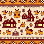 Glowing Kitty Christmas Village Scene Decorative Floor with Lights(Cream)