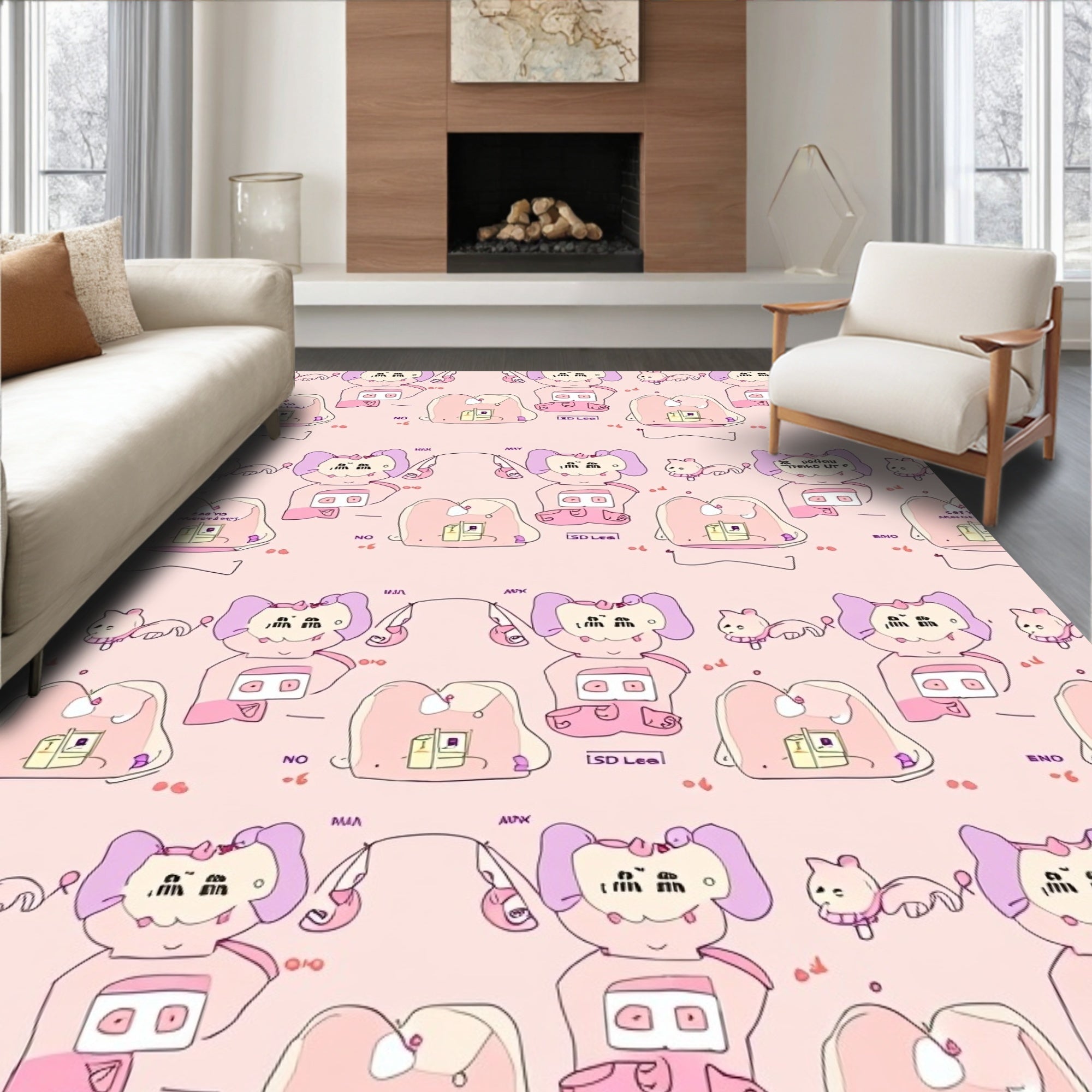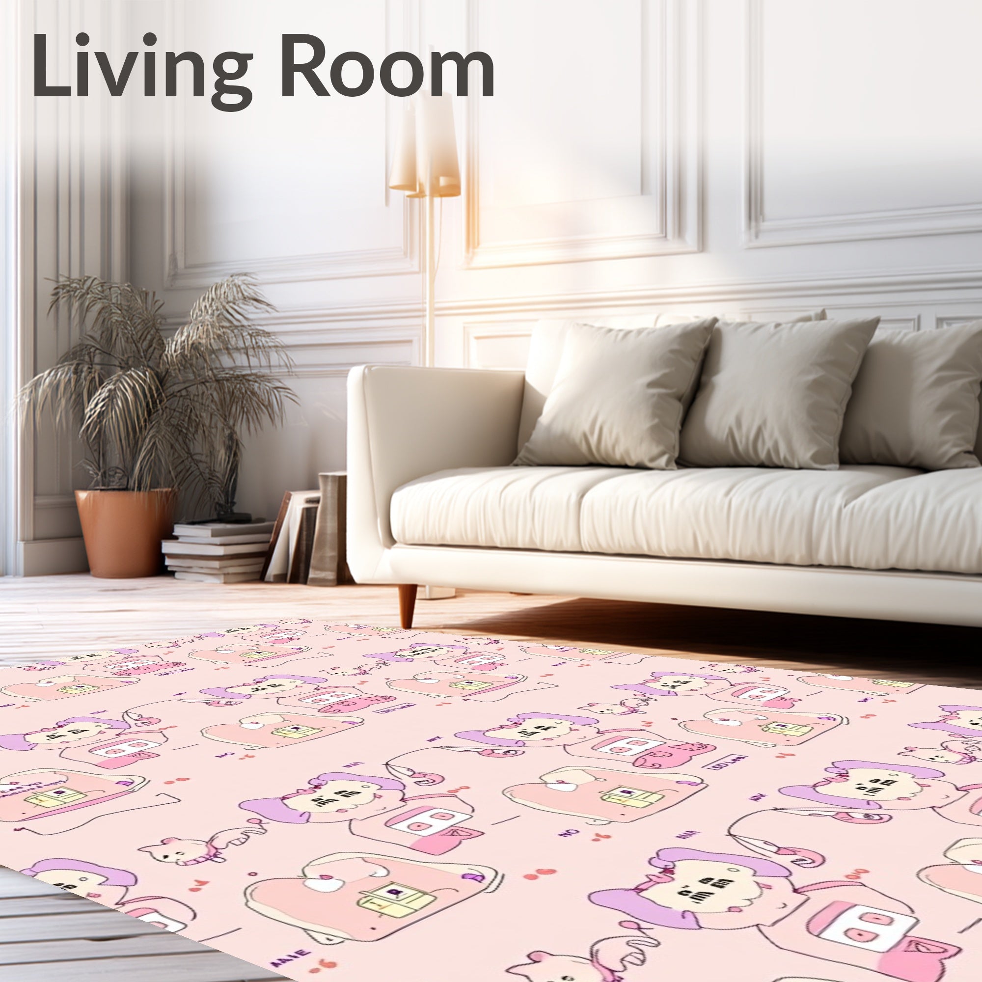 Ultra Soft Area Rug, Non Slip, Stain Resistant, Washable Area Rugs for Living Room, Bedroom, Glowing Tabby Kitten Christmas Village Scene Area Covering(Pink) Overview: