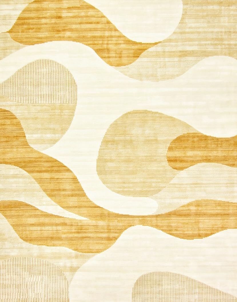 Ultra Soft Area Rug, Non Slip, Stain Resistant, Washable Area Rugs for Living Room, Bedroom, Golden Beige Plush Round with Abstract Art(Beige) Overview: