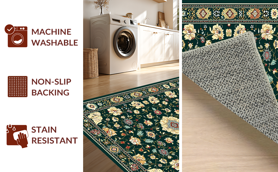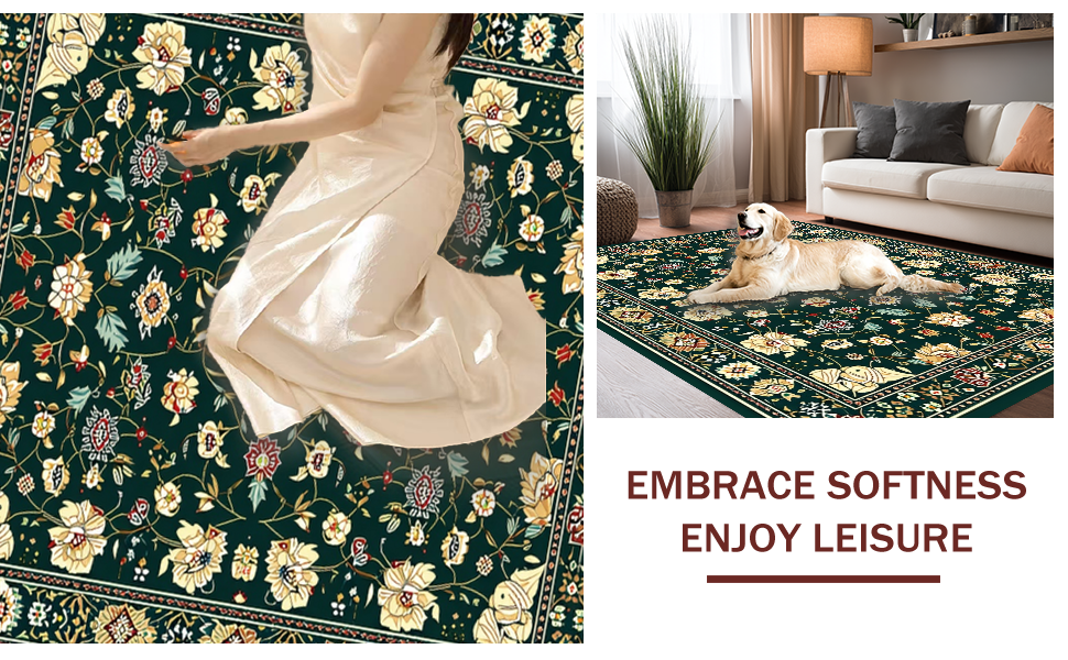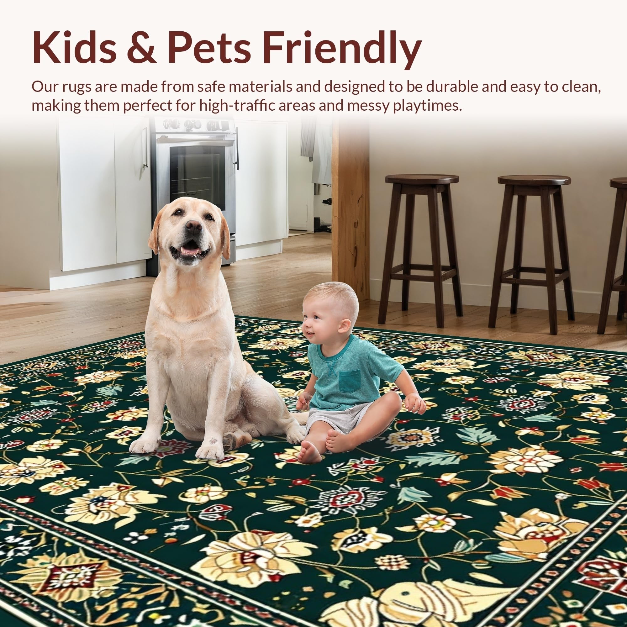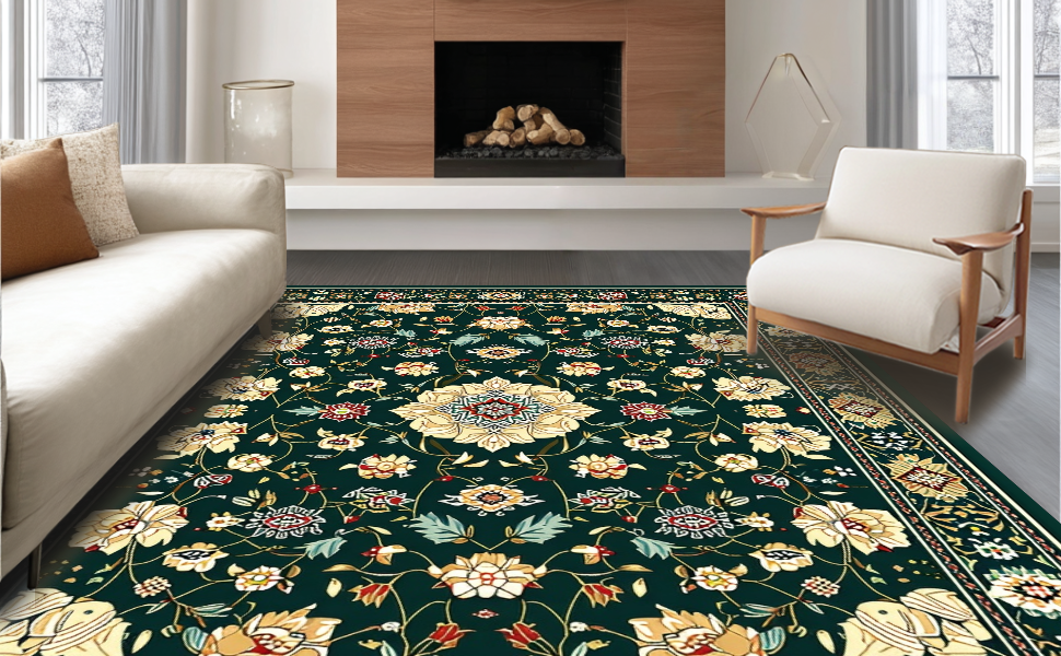 Ultra Soft Area Rug, Non Slip, Stain Resistant, Washable Area Rugs for Living Room, Bedroom, Gorgeous Whimsical Botanical Style(Green) Overview: