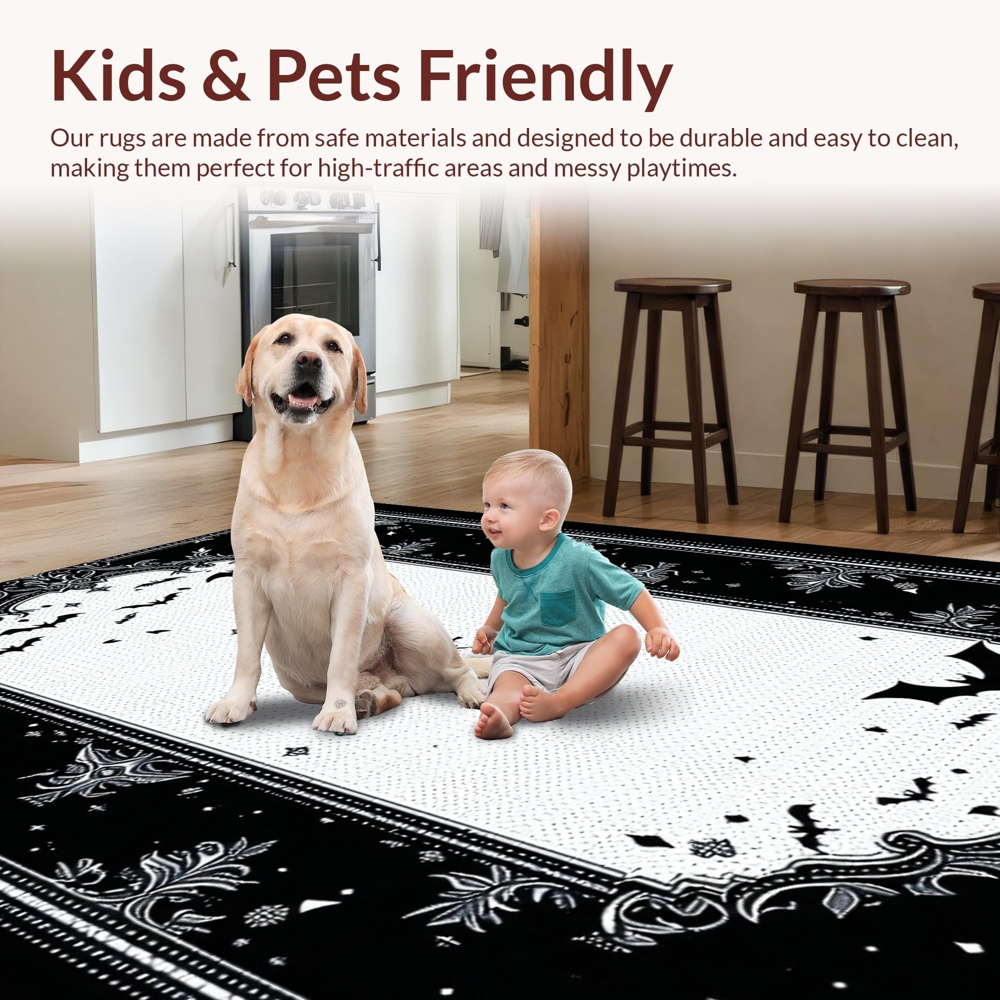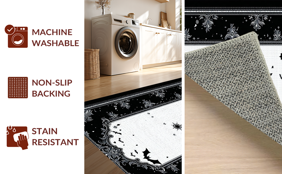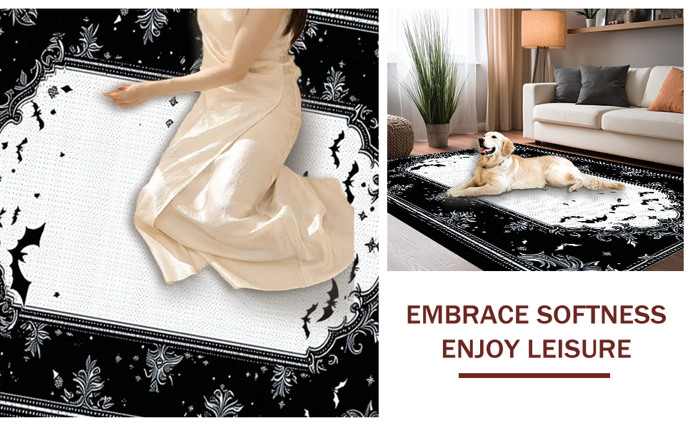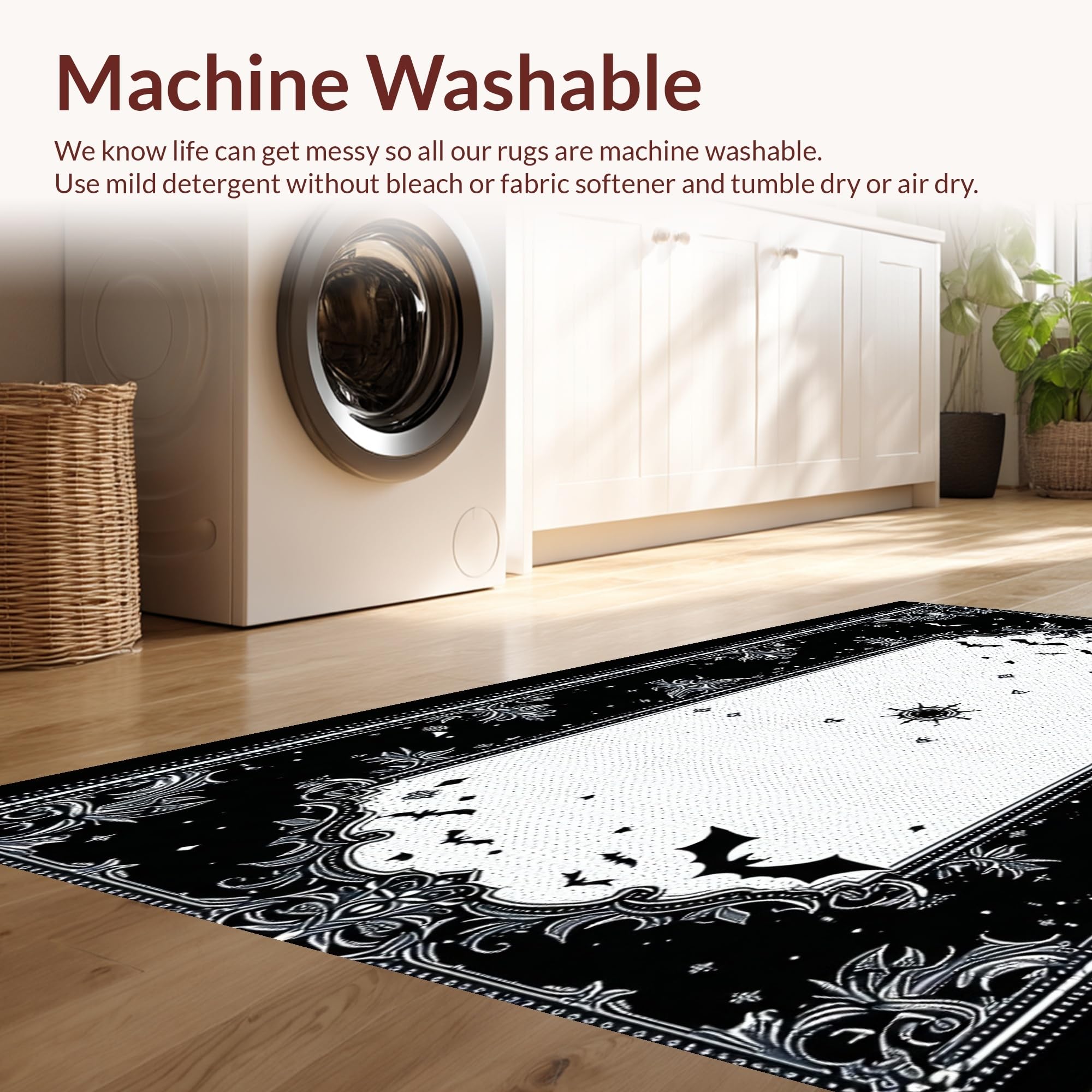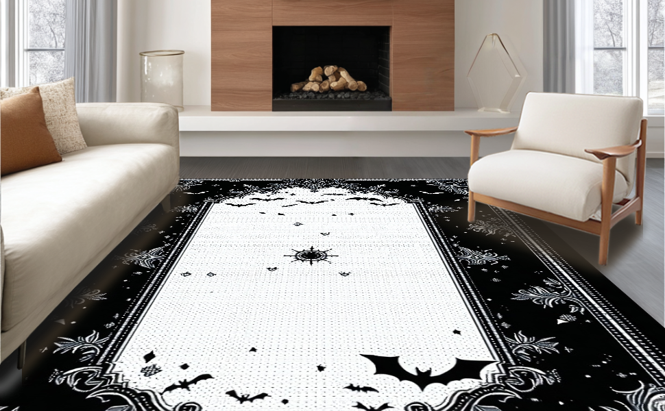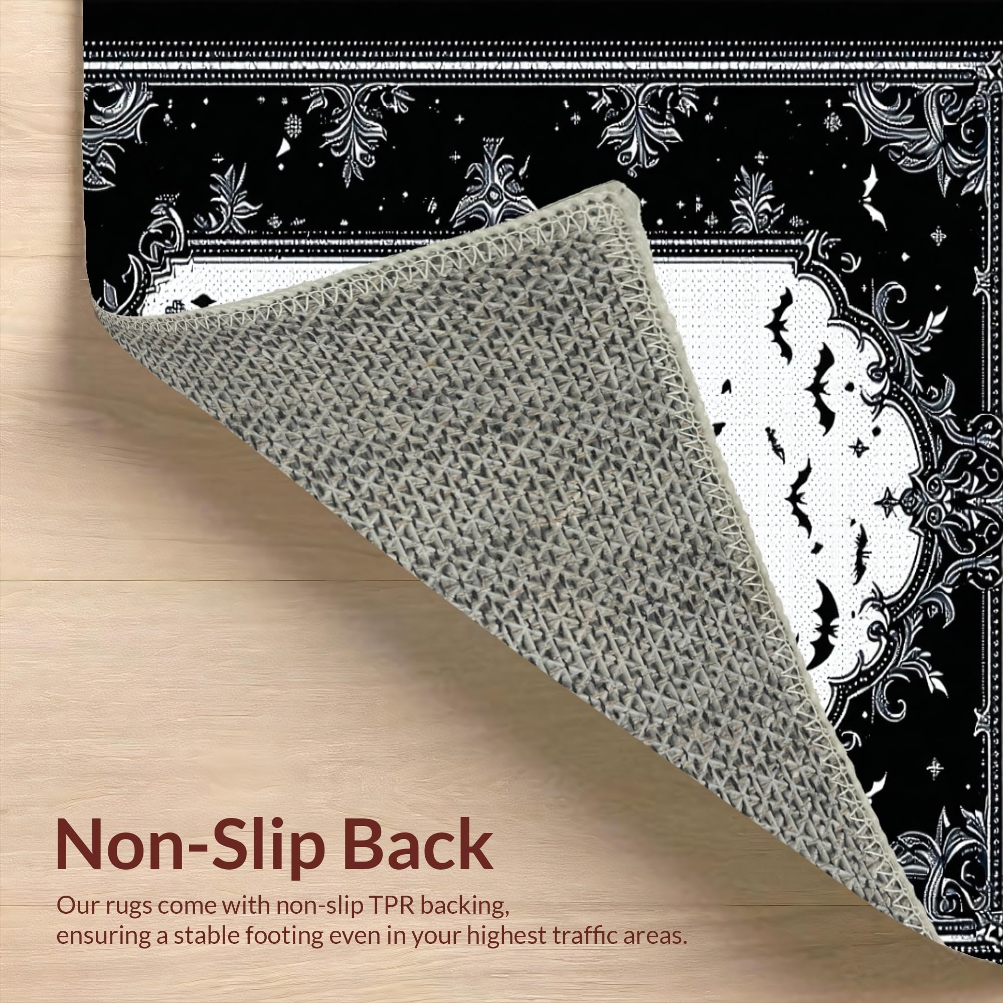 Ultra Soft Area Rug, Non Slip, Stain Resistant, Washable Area Rugs for Living Room, Bedroom, Gothic Black Bat Motif(Black) Overview: