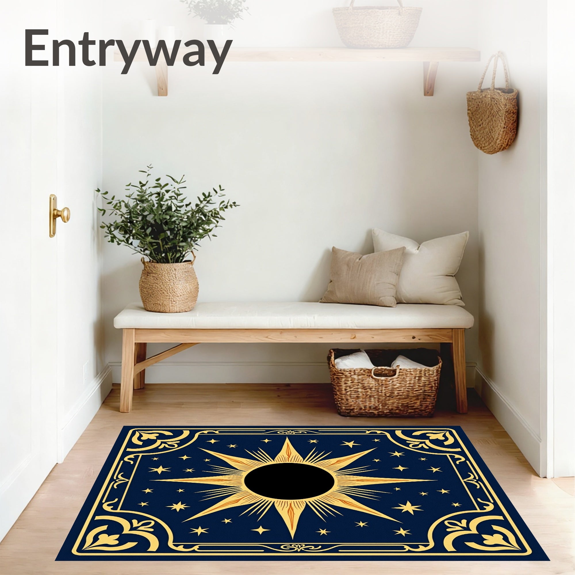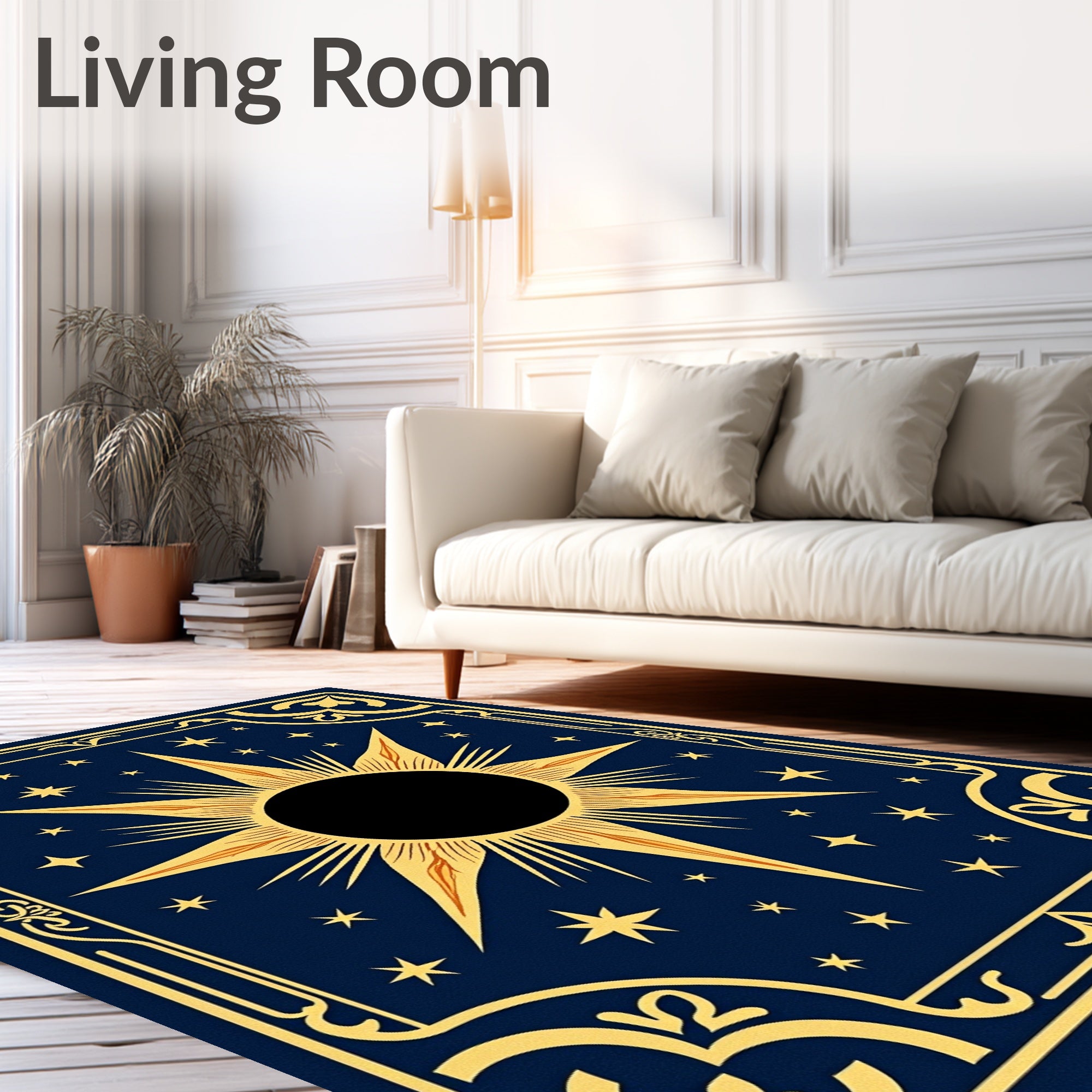 Ultra Soft Area Rug, Non Slip, Stain Resistant, Washable Area Rugs for Living Room, Bedroom, Gothic Celestial Eclipse Ornamental Design(Blue) Overview: