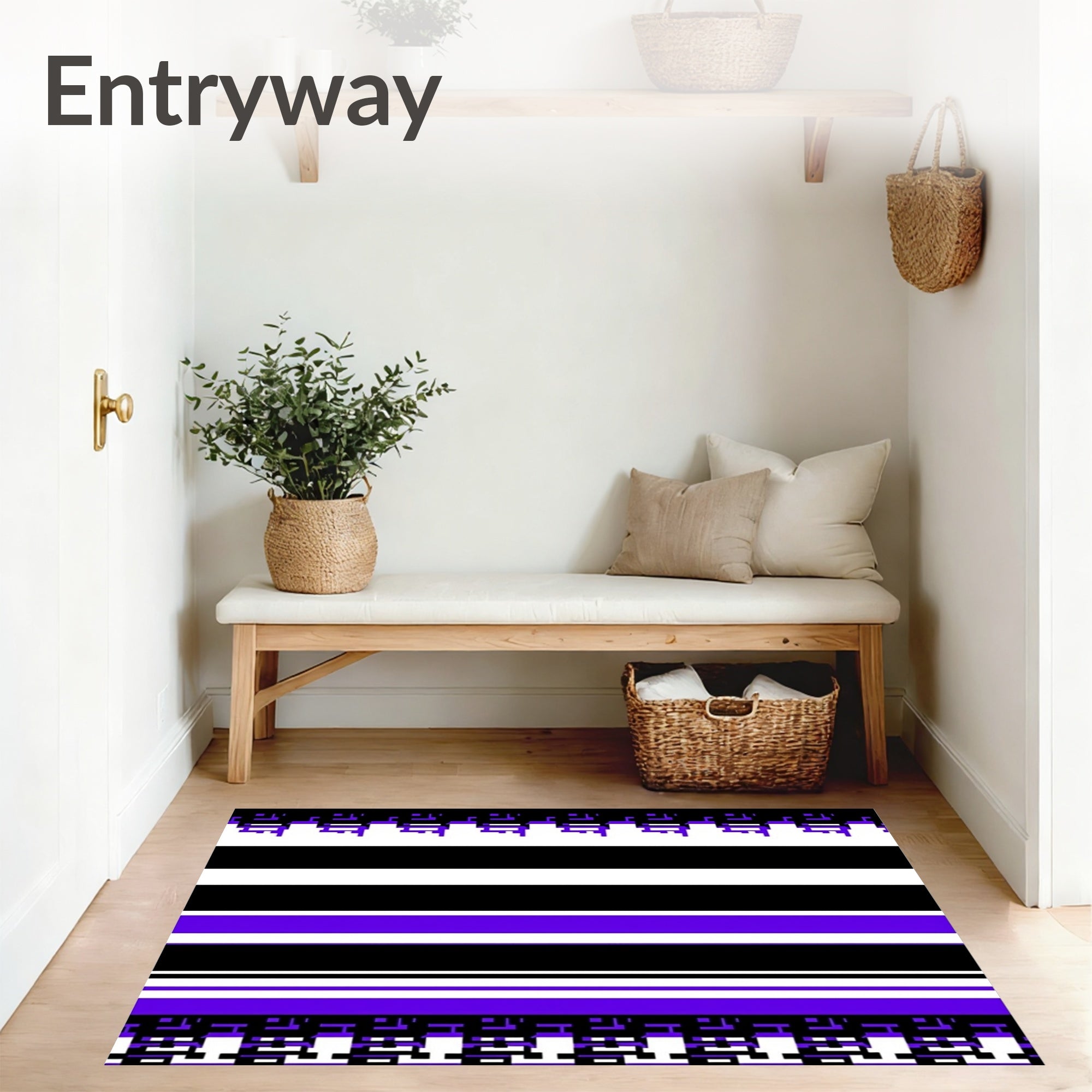 Ultra Soft Area Rug, Non Slip, Stain Resistant, Washable Area Rugs for Living Room, Bedroom, Gothic Contrast Bands Dramatic Interior Statement(Black) Overview: