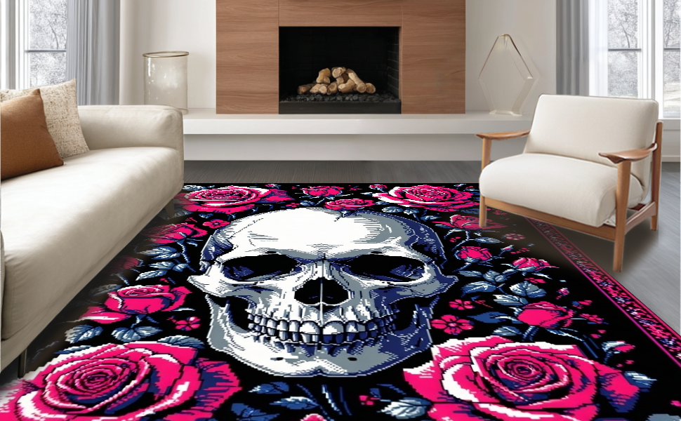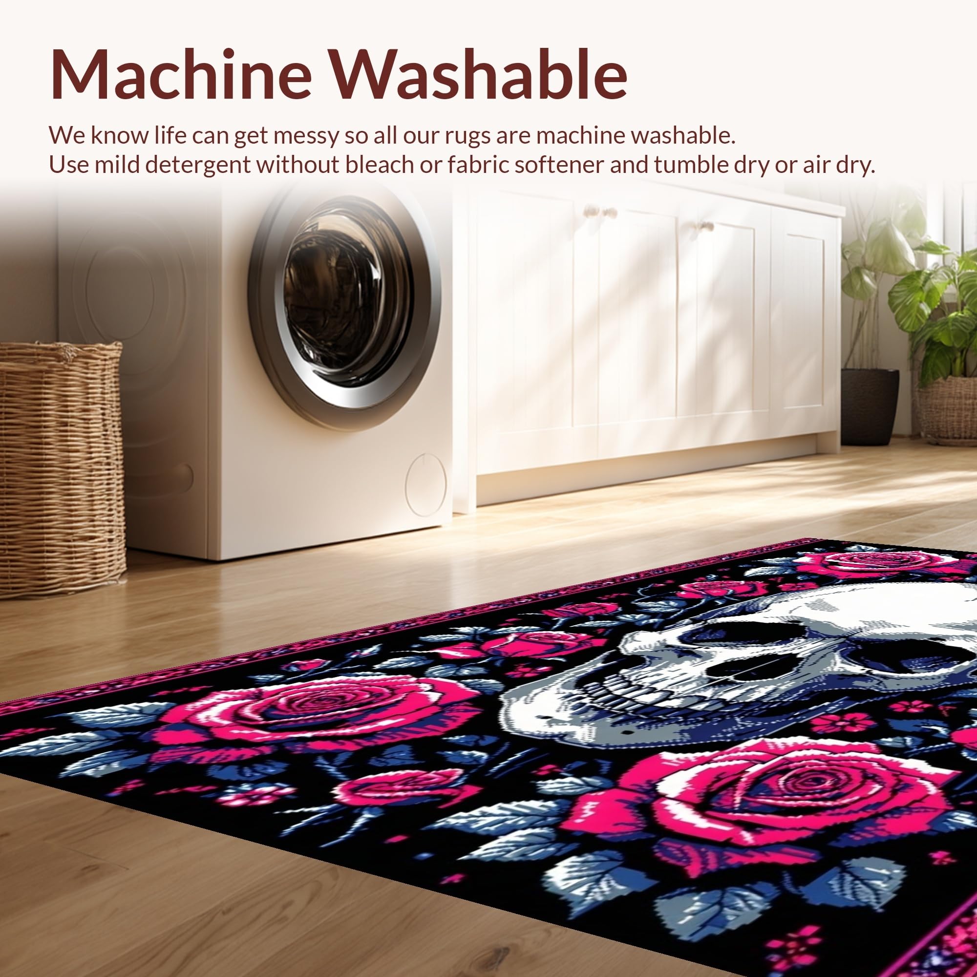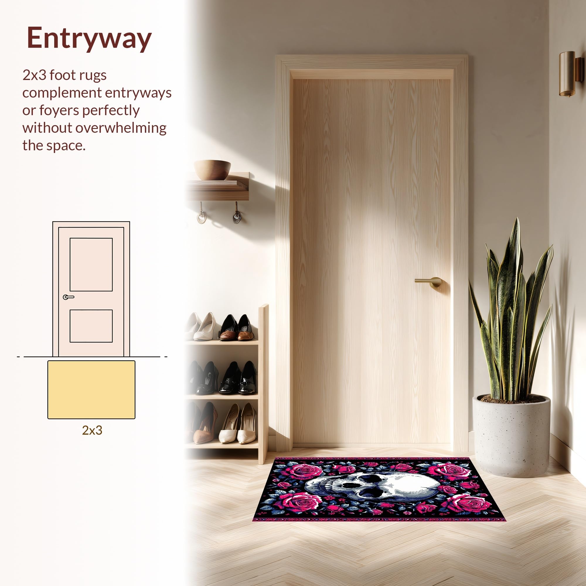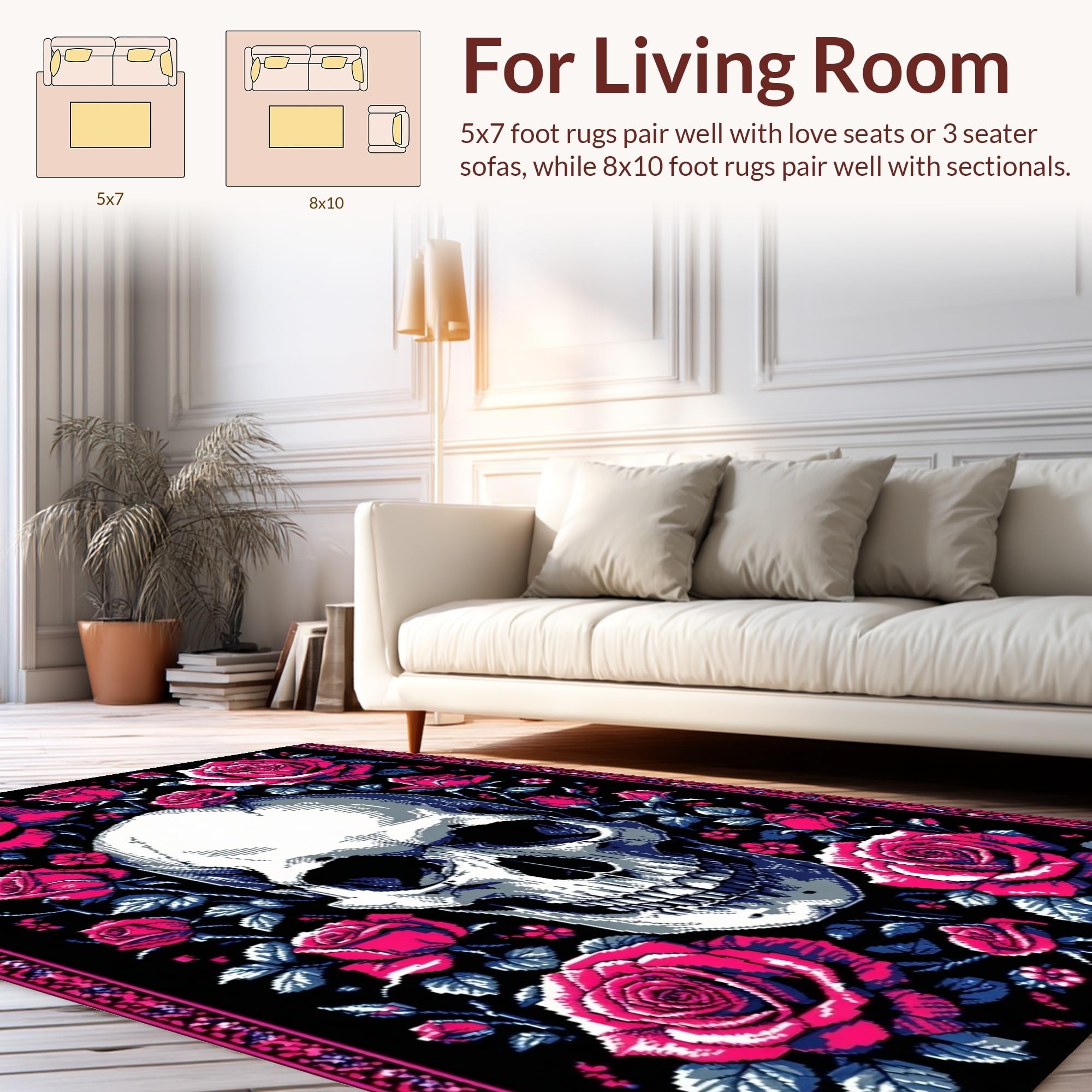Ultra Soft Area Rug, Non Slip, Stain Resistant, Washable Area Rugs for Living Room, Bedroom, Gothic Floral Skull Aesthetic(Red) Overview: